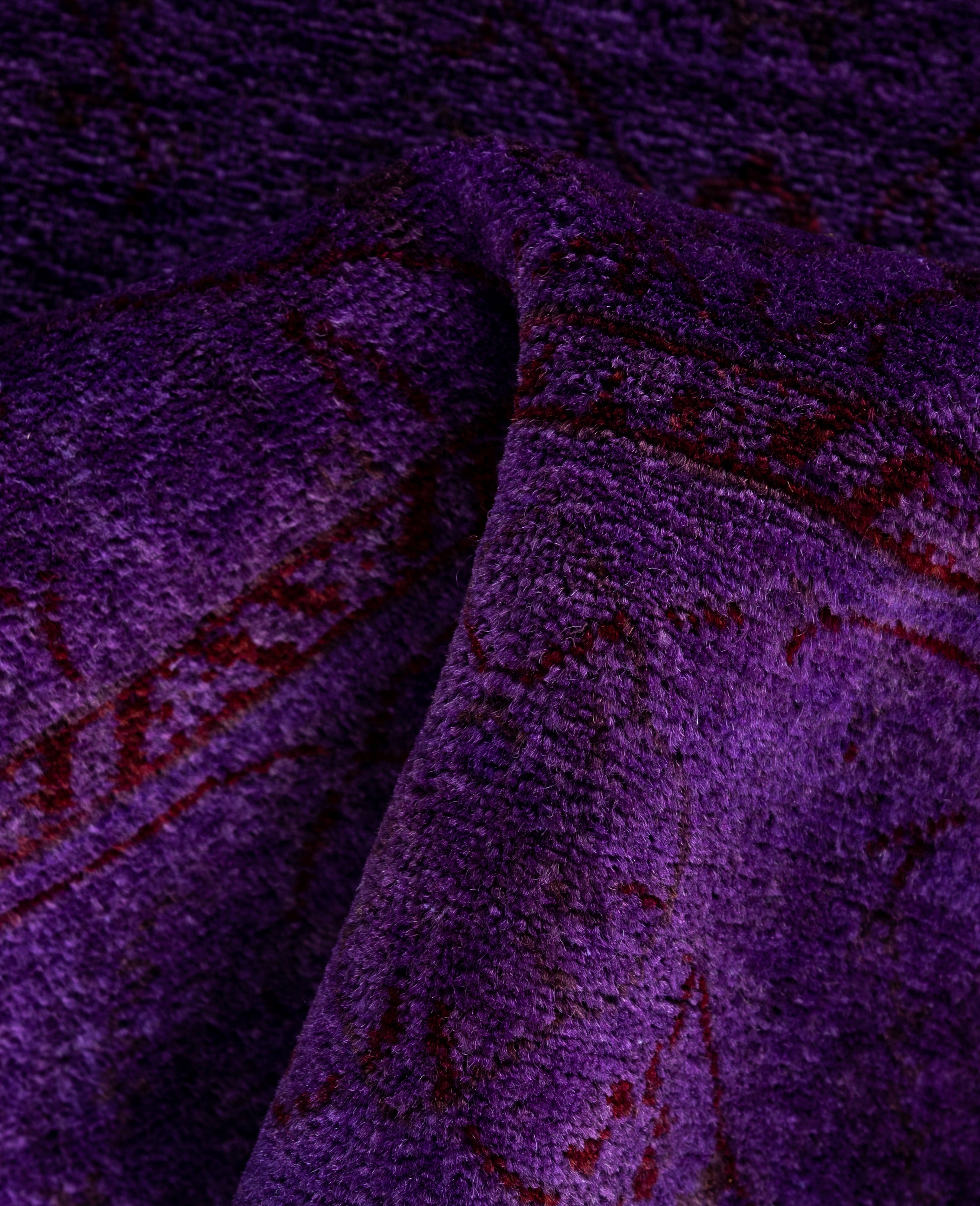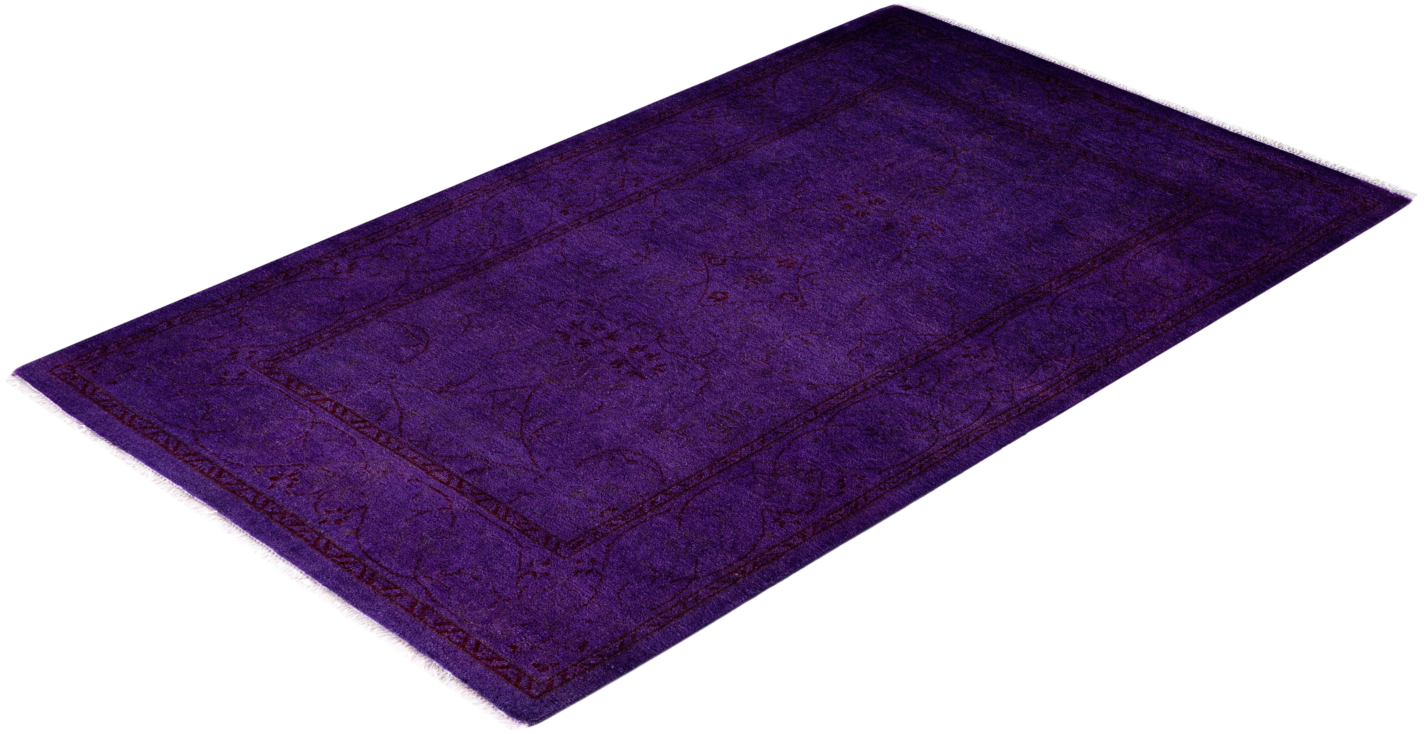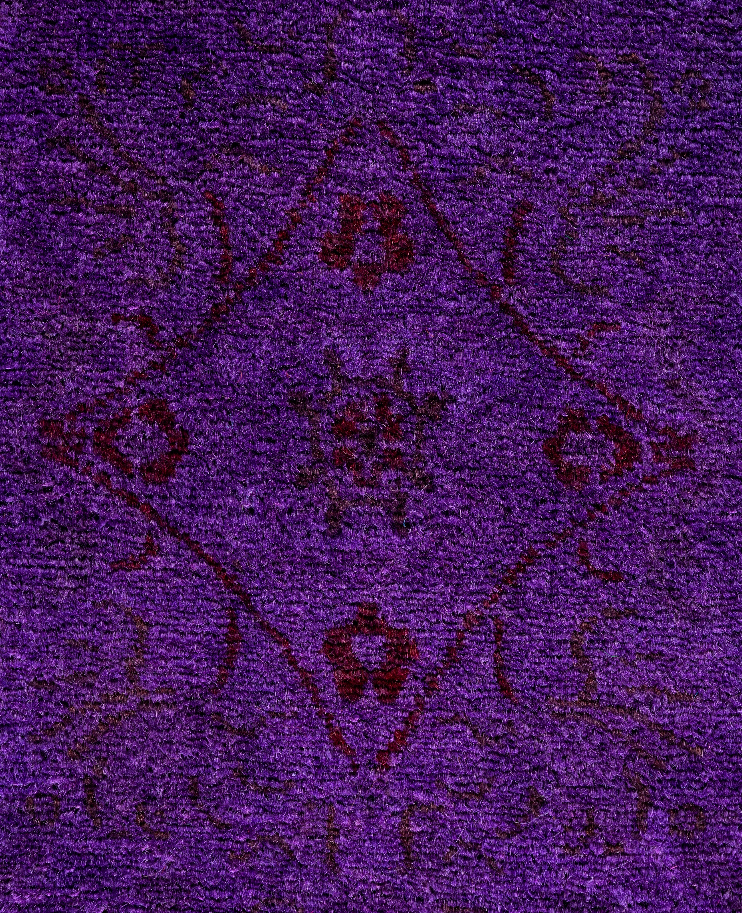 Contemporary Overdyed Wool Hand Knotted Purple Runner 2' 8" x 4' 4"