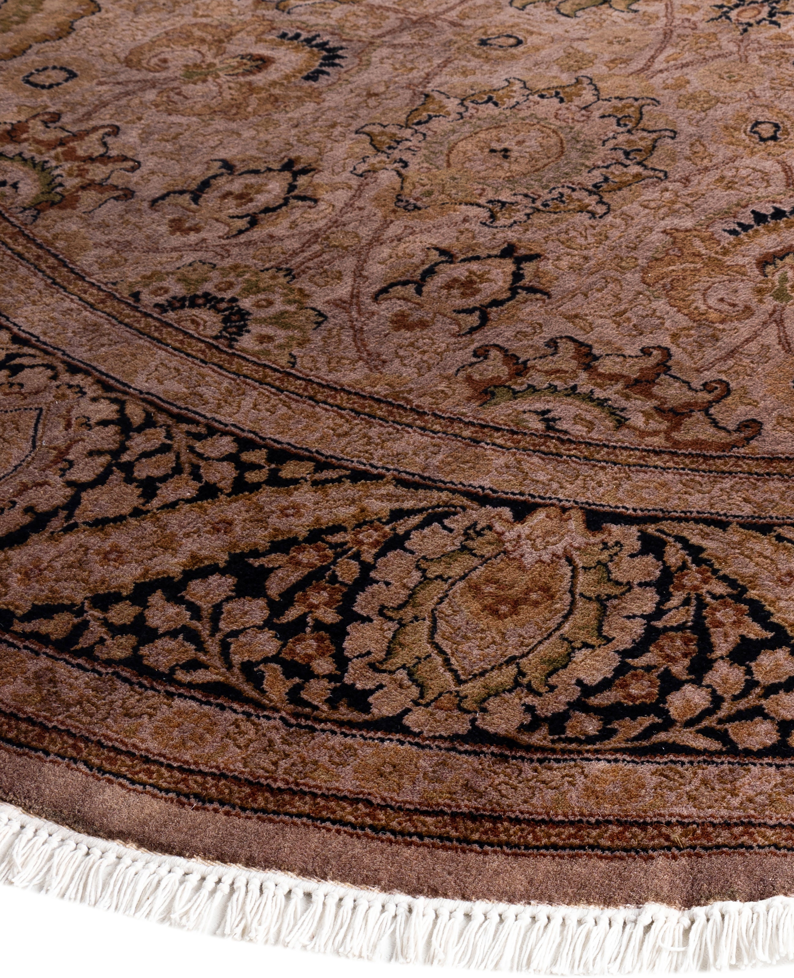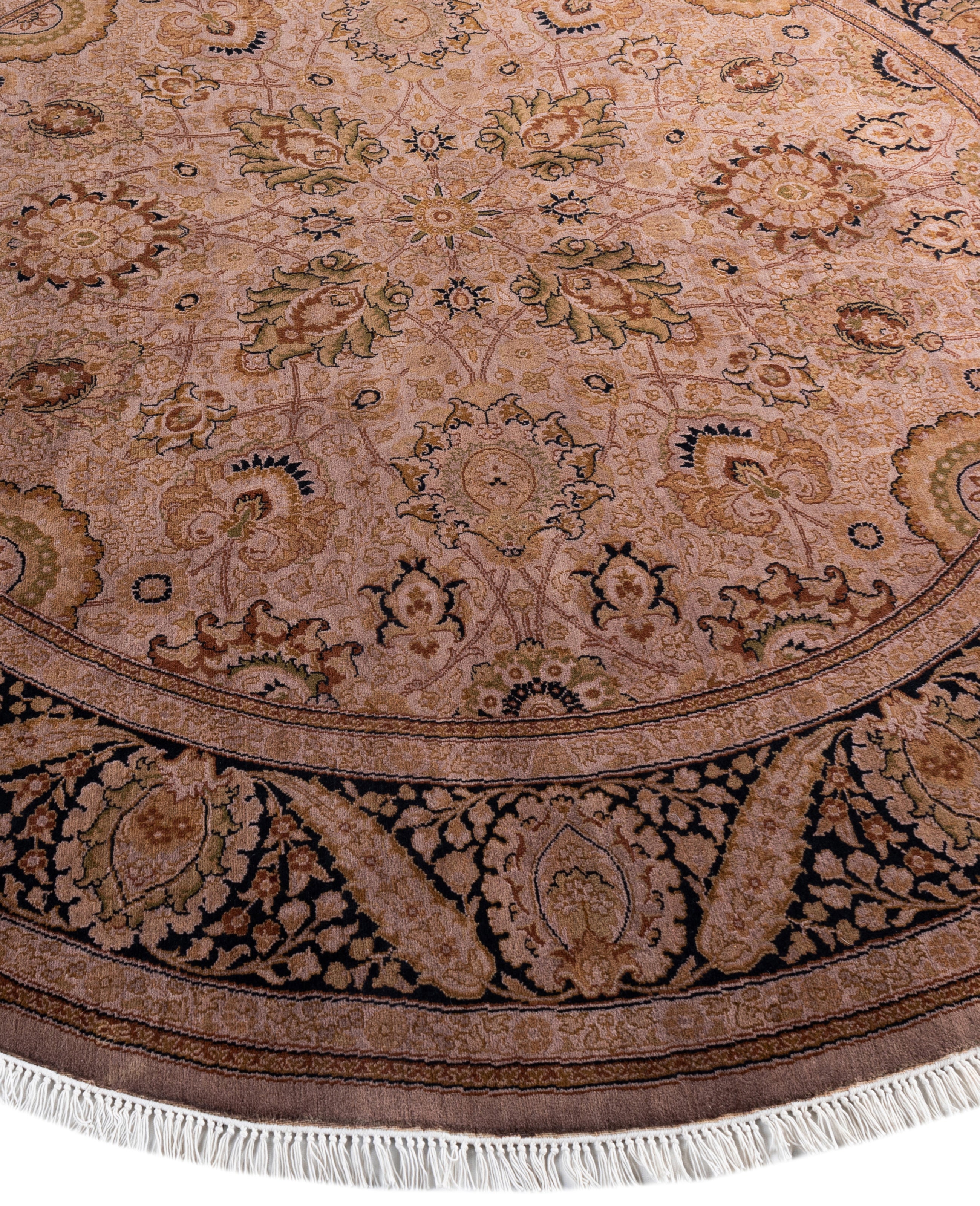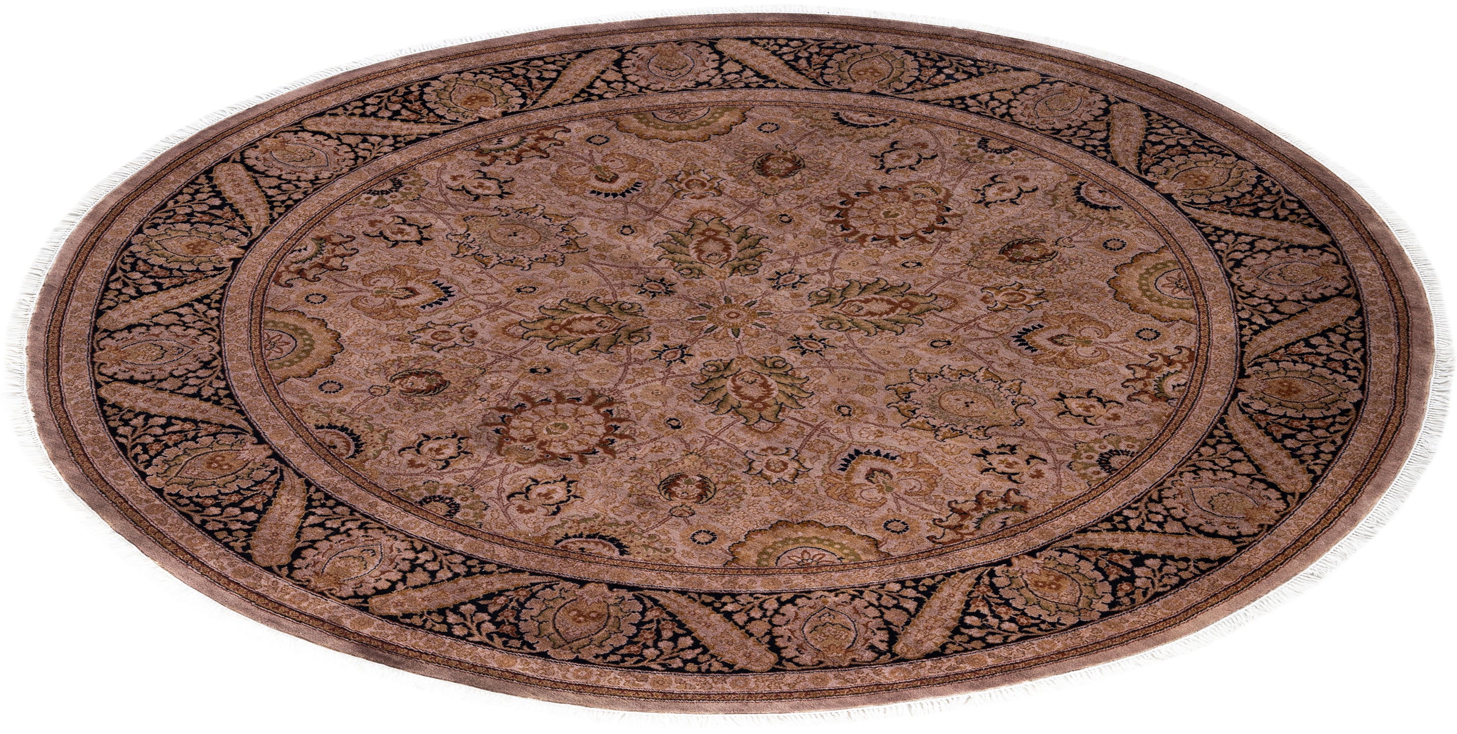 Contemporary Overdyed Wool Hand Knotted Beige Round Area Rug 7' 1" x 7' 1"