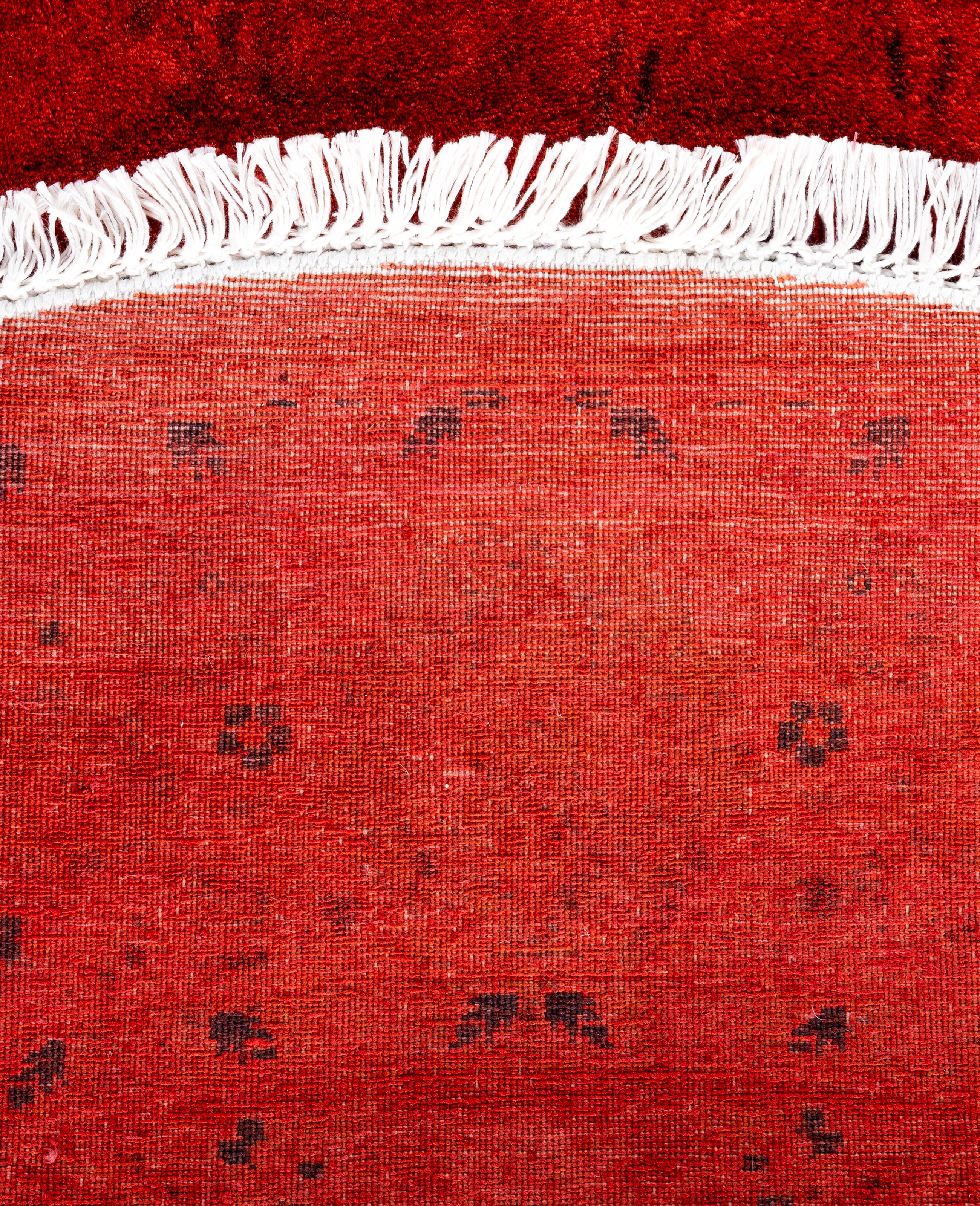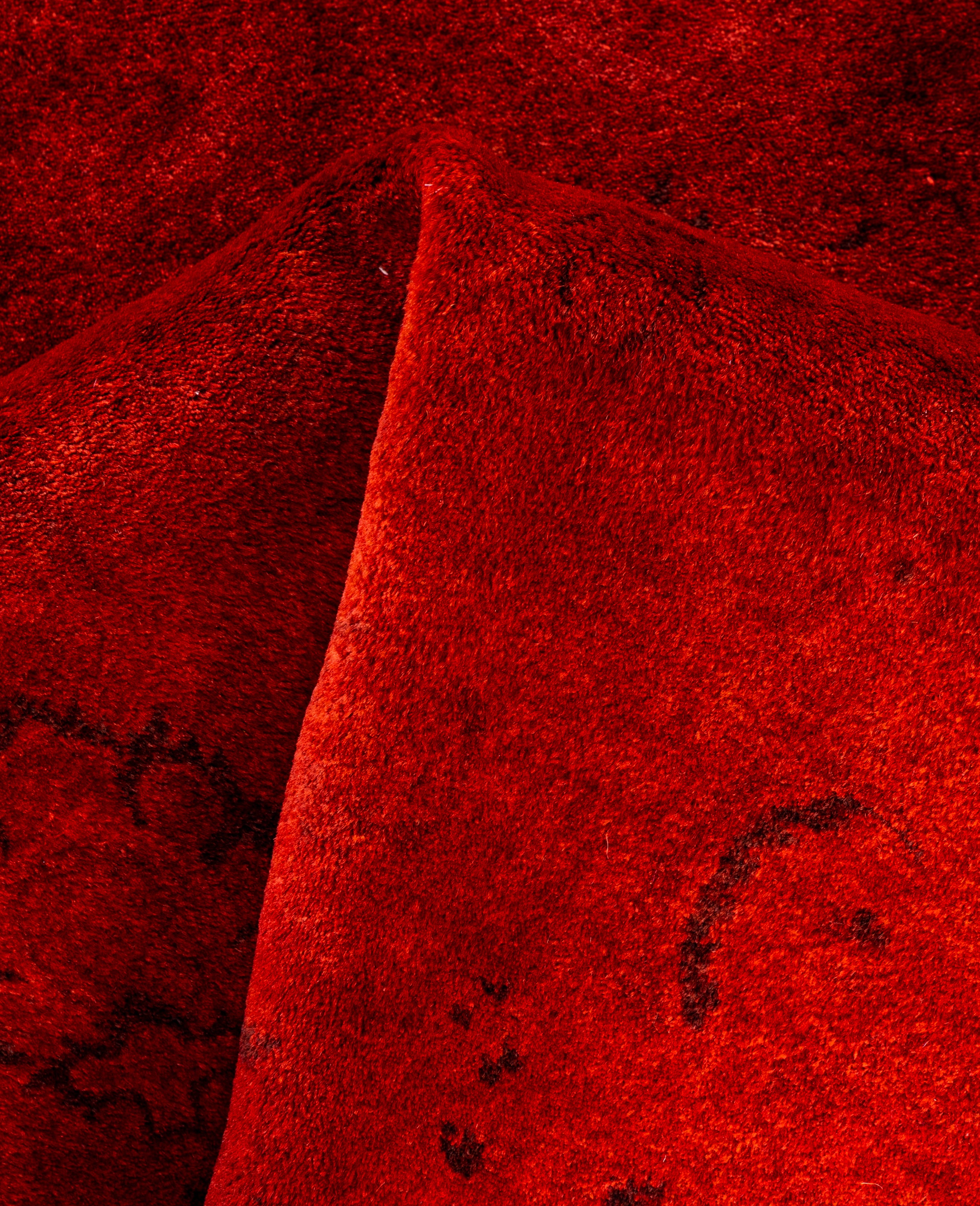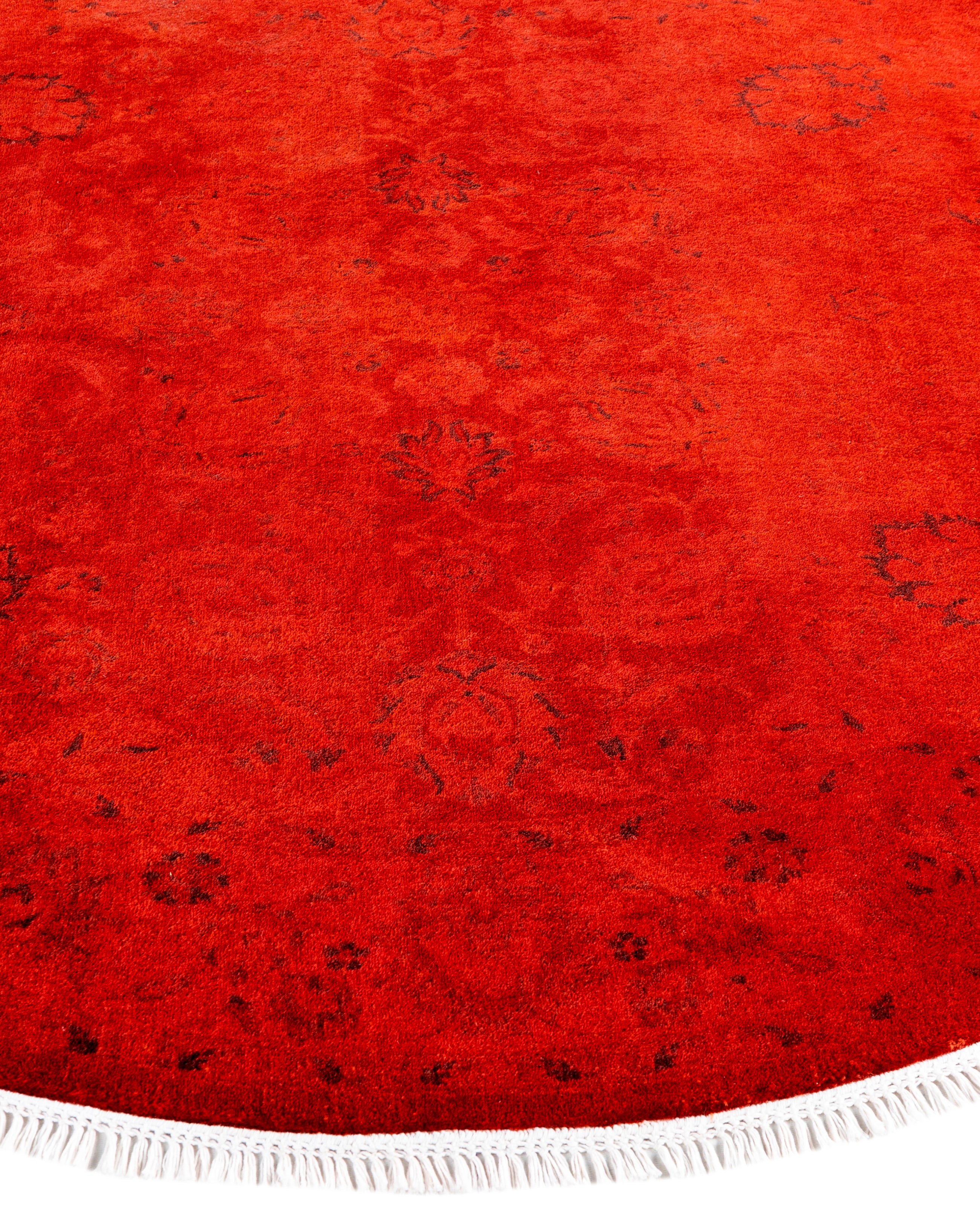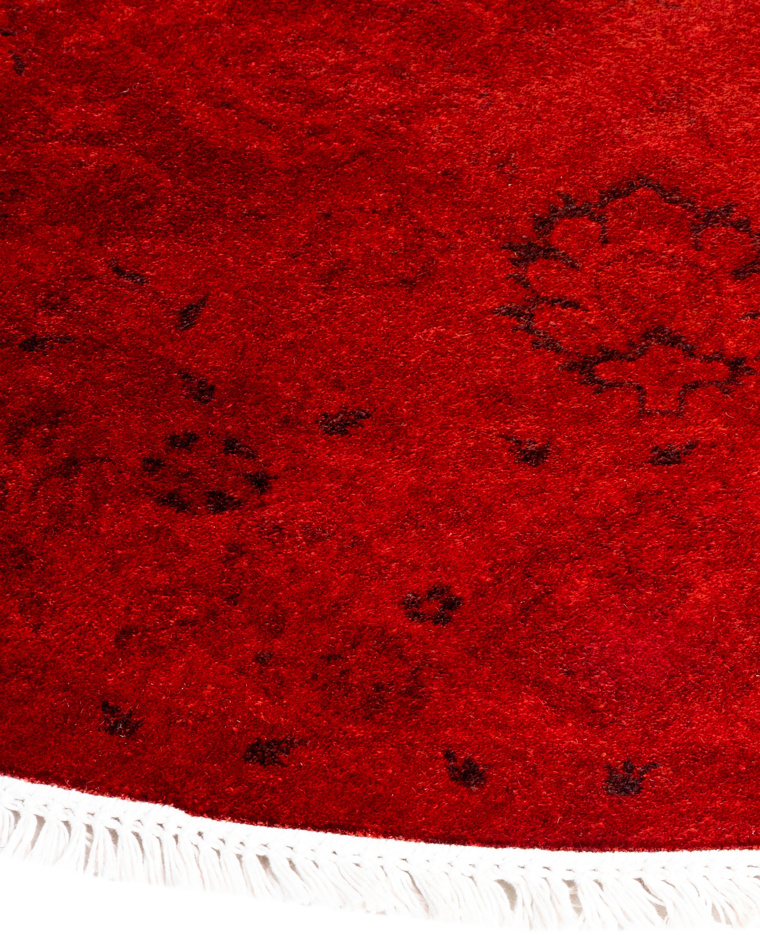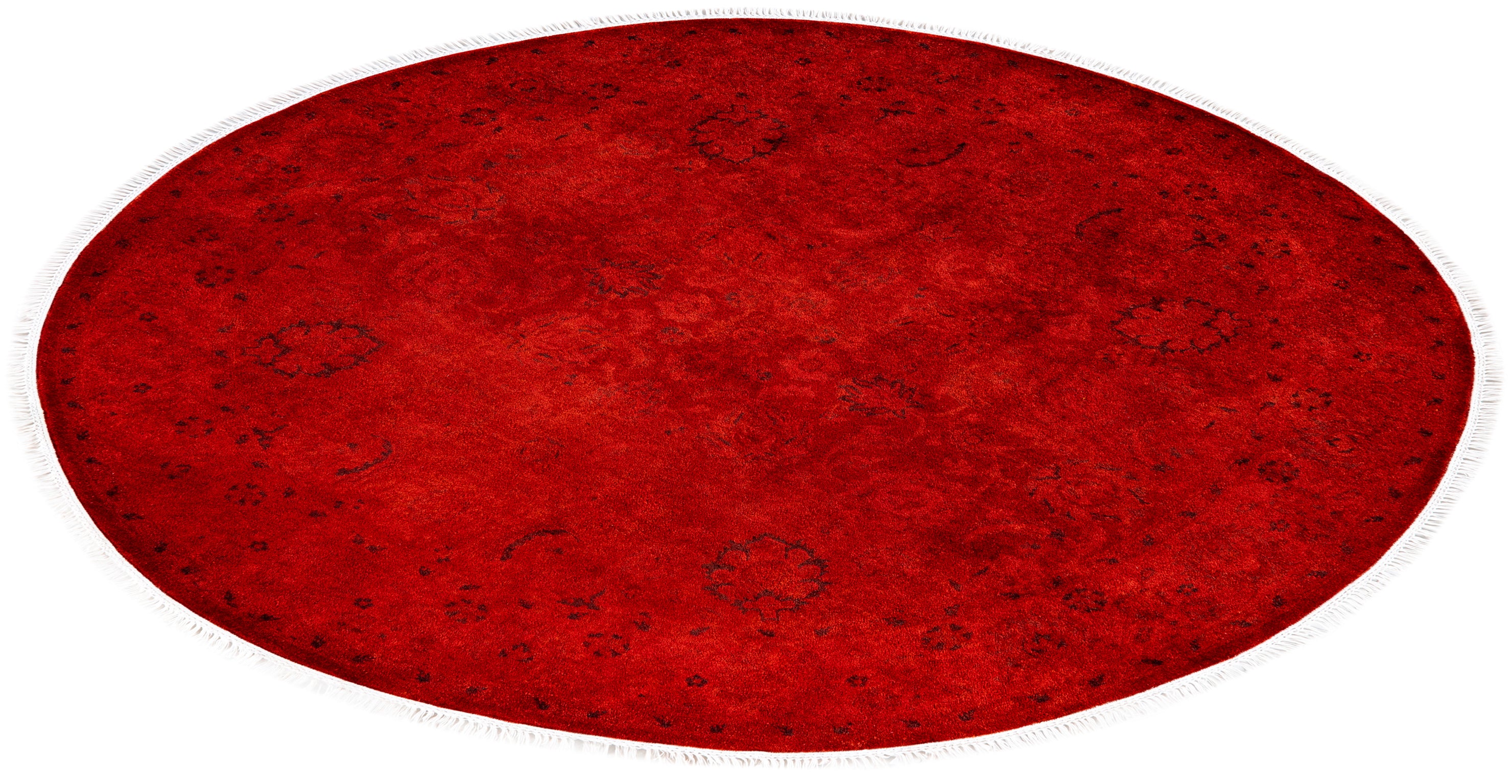 Contemporary Overdyed Wool Hand Knotted Red Round Area Rug 5' 1" x 5' 1"