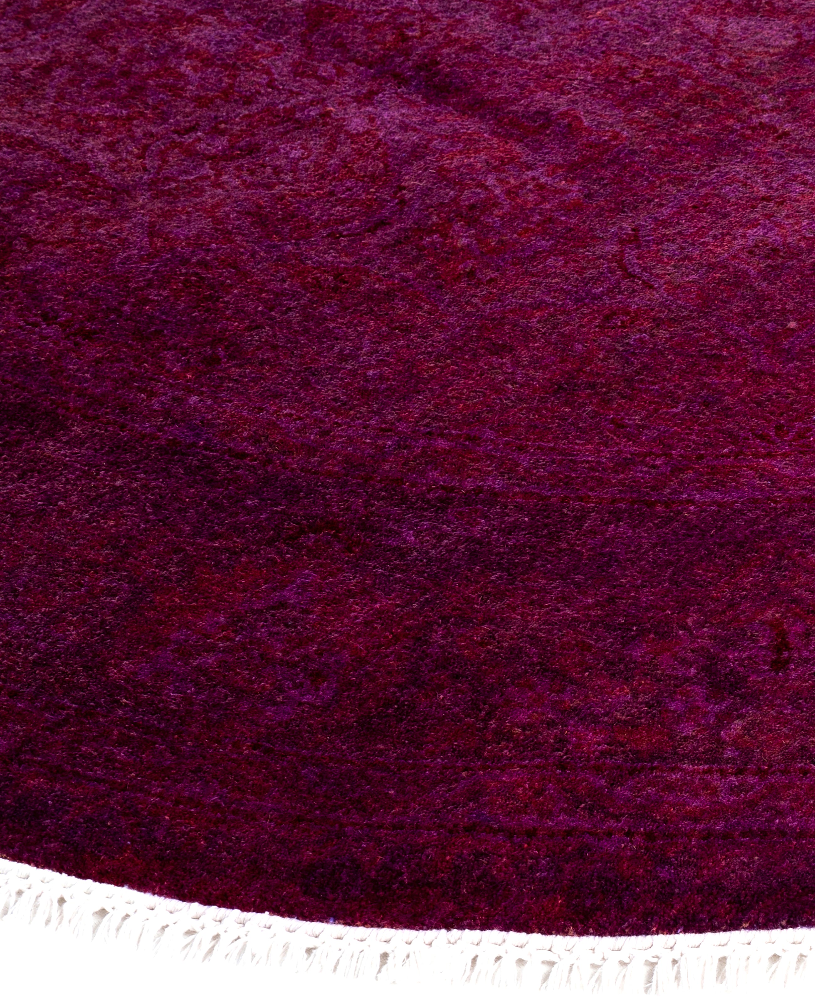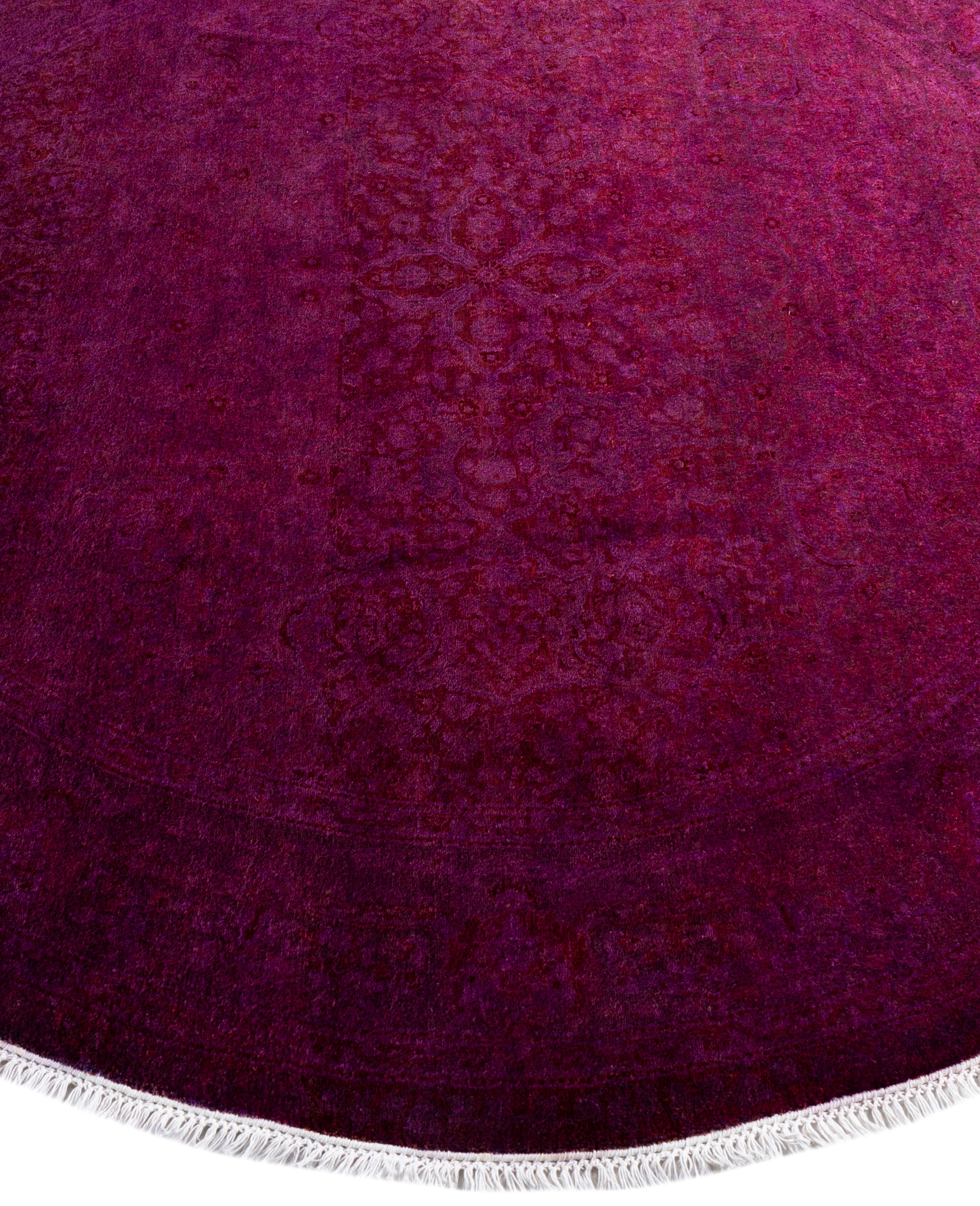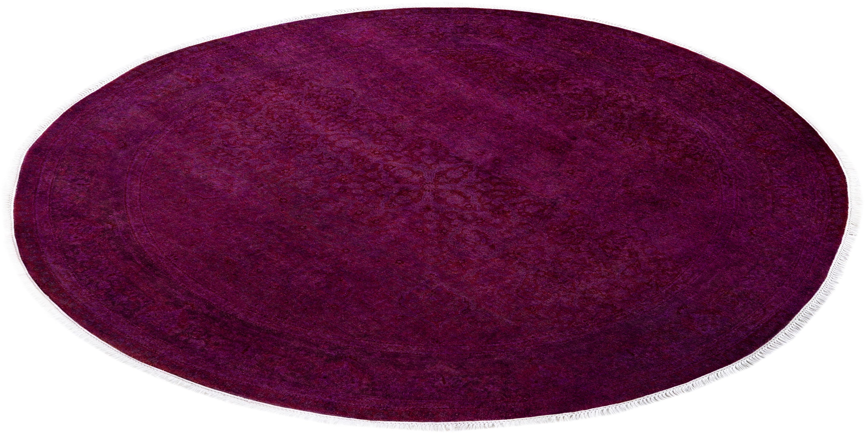 Contemporary Overdyed Wool Hand Knotted Purple Round Area Rug 6' 1" x 6' 1"