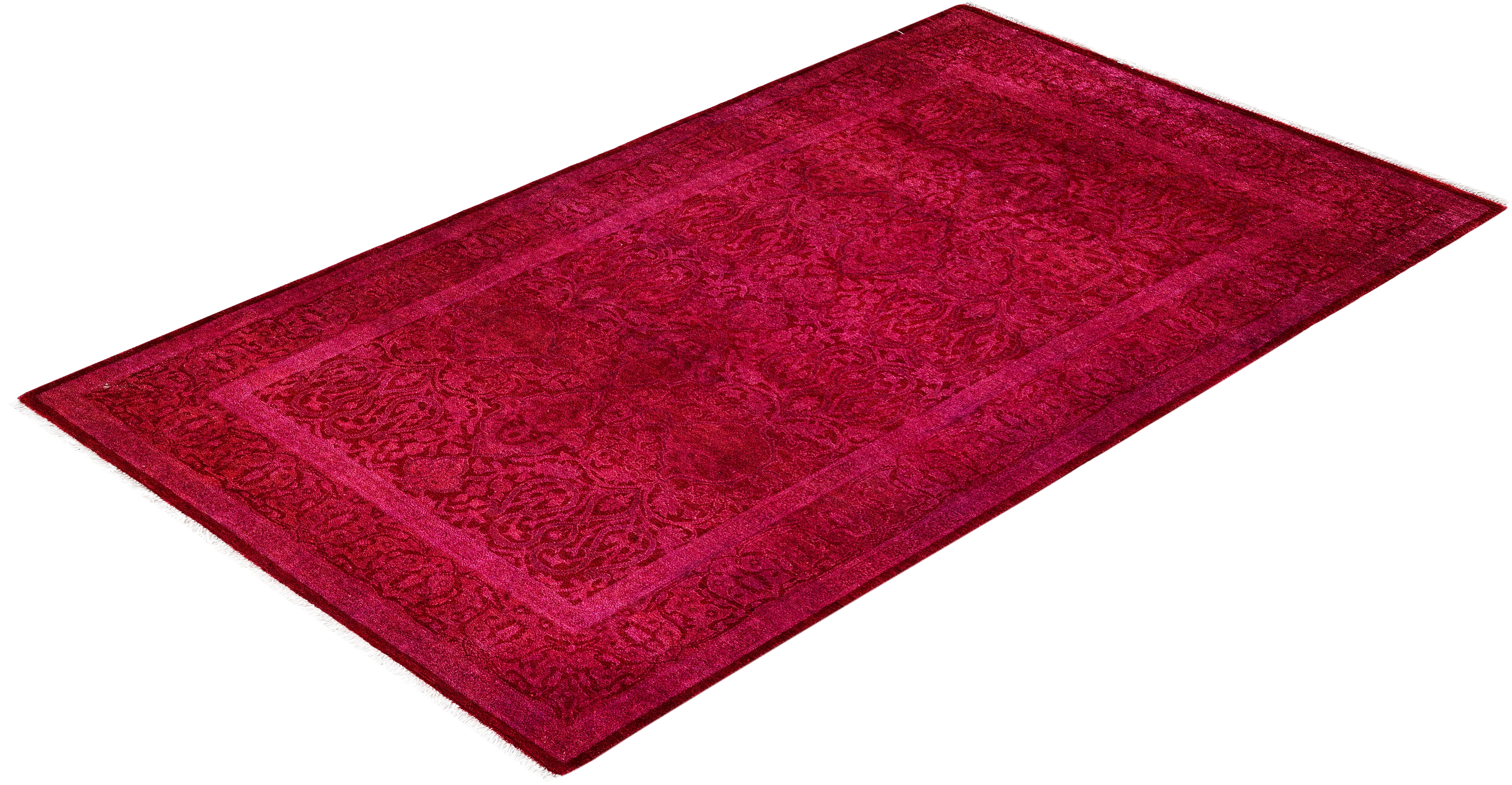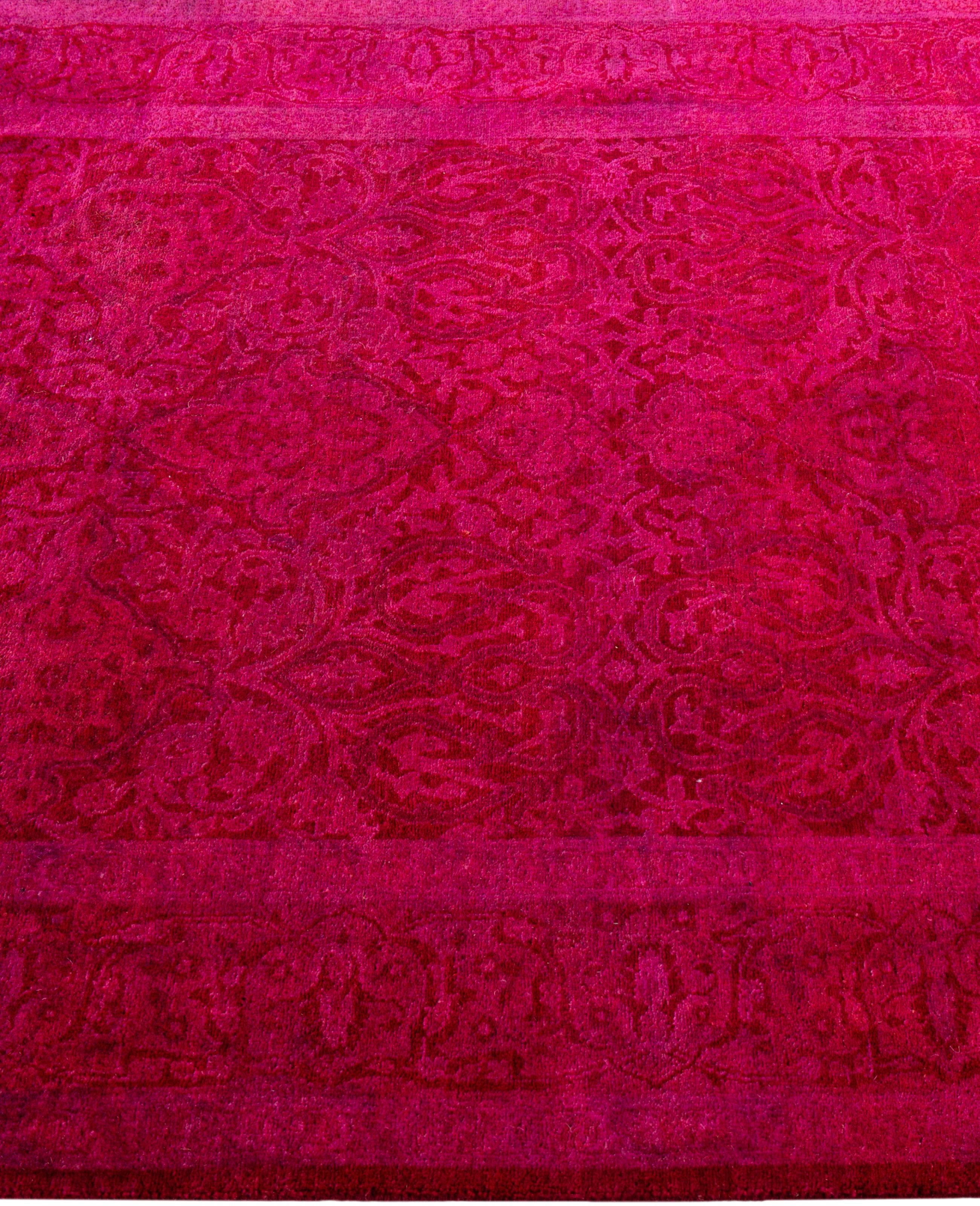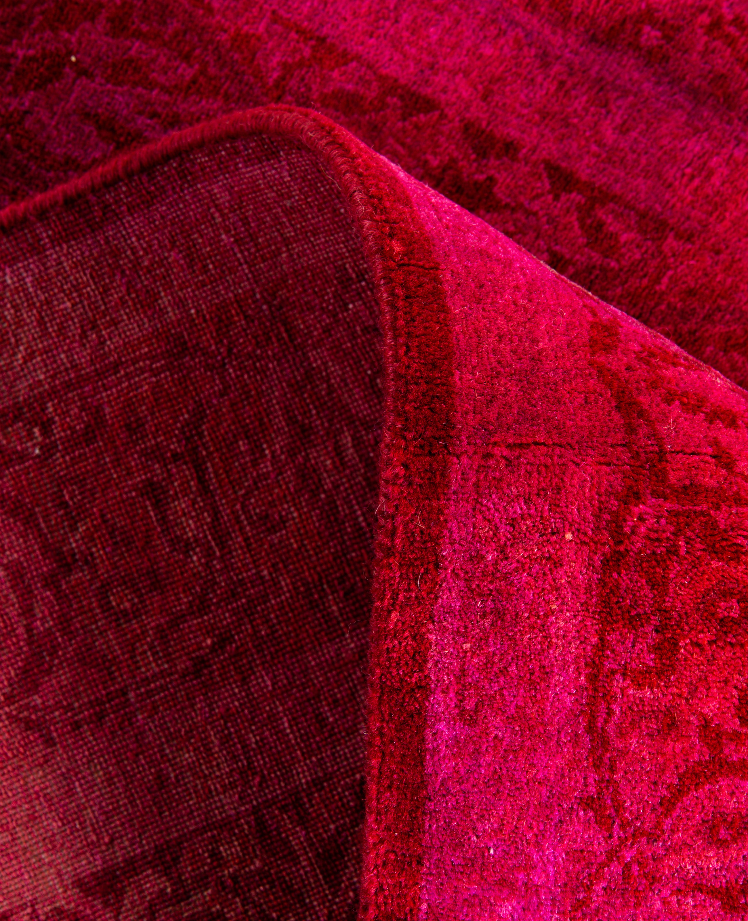 Over-dyed area rugs are created by taking vintage or traditional rugs and applying a vibrant, monochromatic dye over the existing patterns. This technique results in a bold, modern aesthetic while preserving the intricate designs beneath, blending the old with the new. The rugs are often faded and distressed before dyeing, which adds texture and depth to their appearance. The over-dye process breathes new life into worn or antique rugs, giving them a contemporary twist with rich, saturated colors like deep blues, purples, or bright reds. These rugs work well in both eclectic and modern spaces, offering a unique, artistic flair to any room. They provide a dynamic focal point, balancing between traditional craftsmanship and contemporary design trends. Over-dyed rugs are perfect for those looking to add a pop of color and character to their home decor.