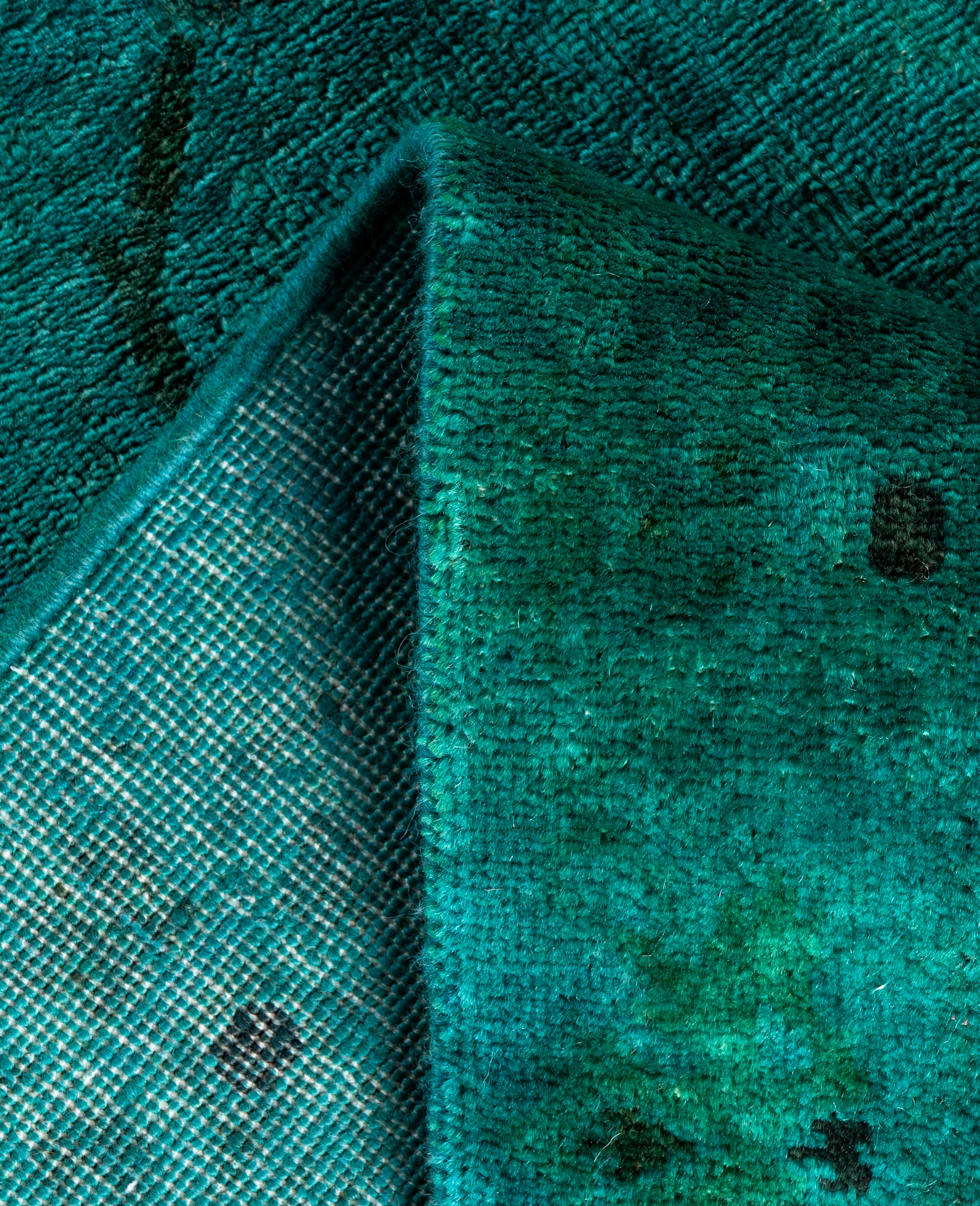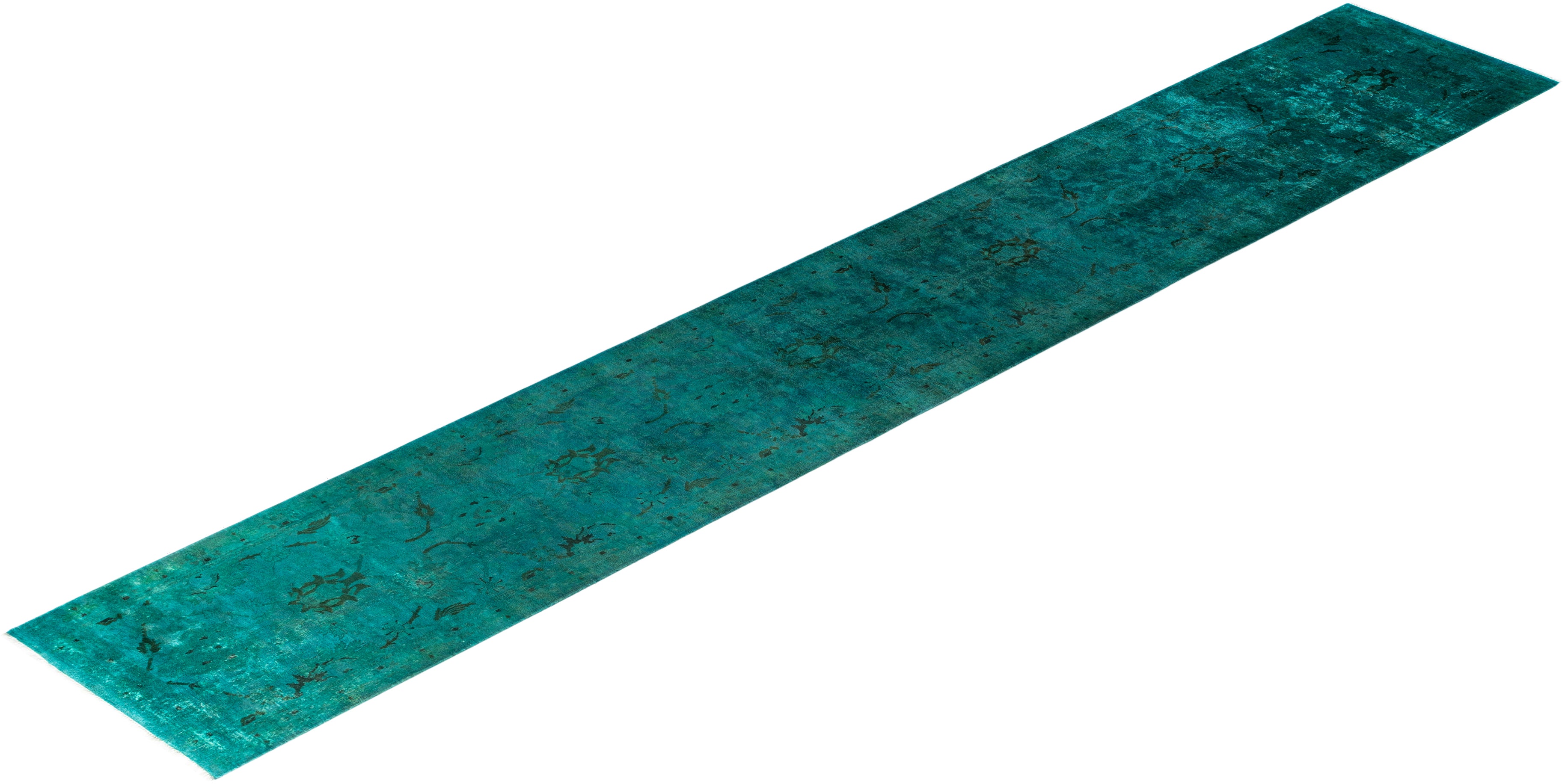 Contemporary Overdyed Wool Hand Knotted Green Runner 2' 7" x 16' 5"
