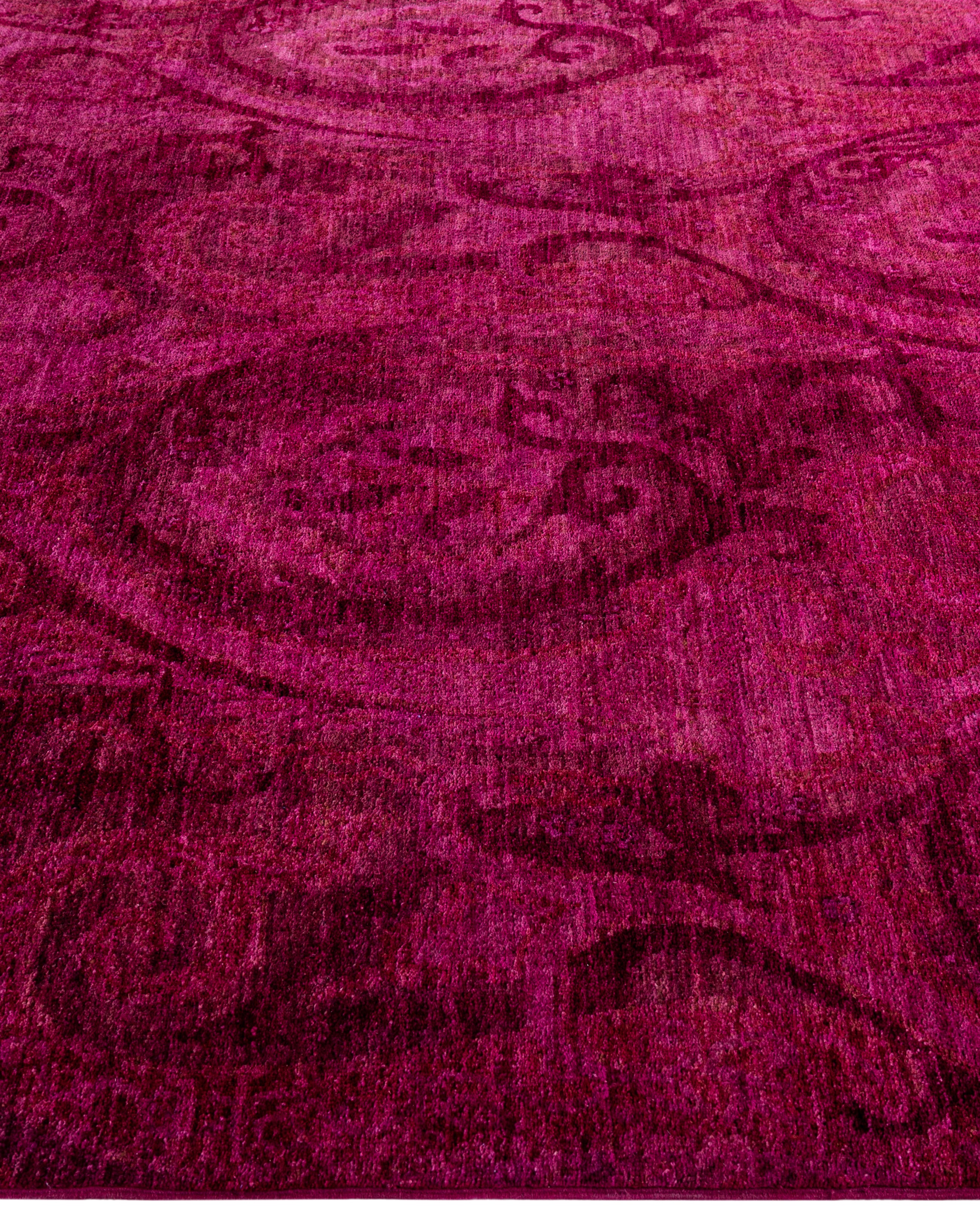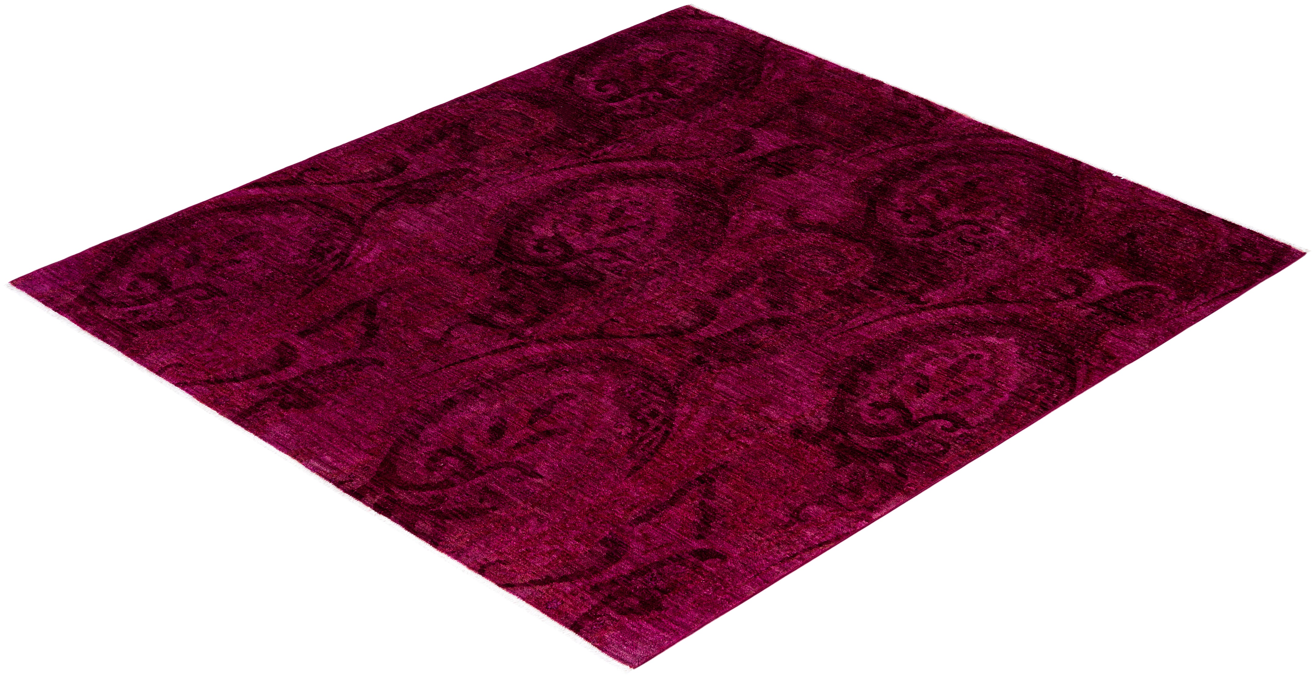 Contemporary Overdyed Wool Hand Knotted Pink Round Area Rug 6' 0" x 6' 6"