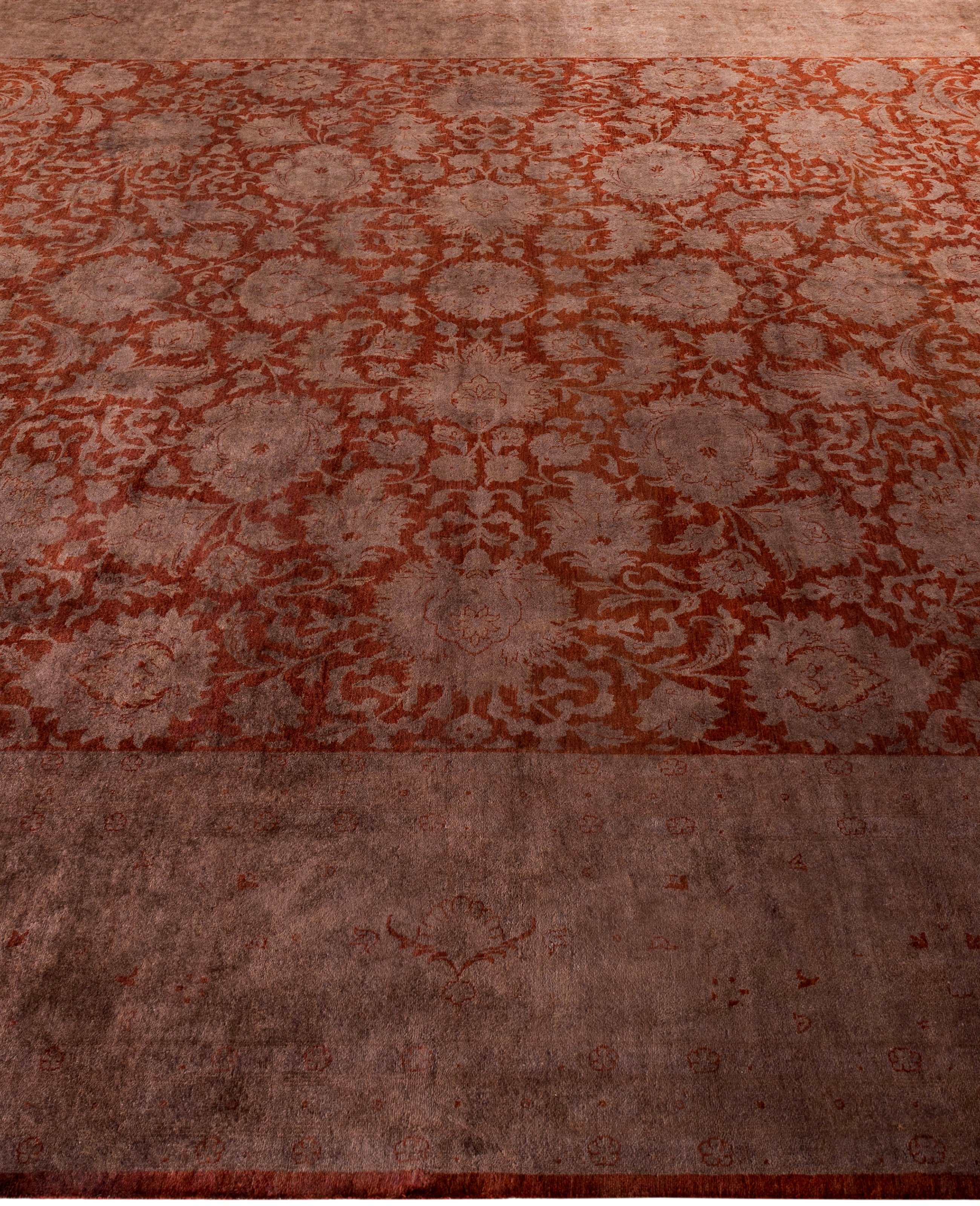 Contemporary Overdyed Wool Hand Knotted Red Area Rug 10' 1" x 14' 1"