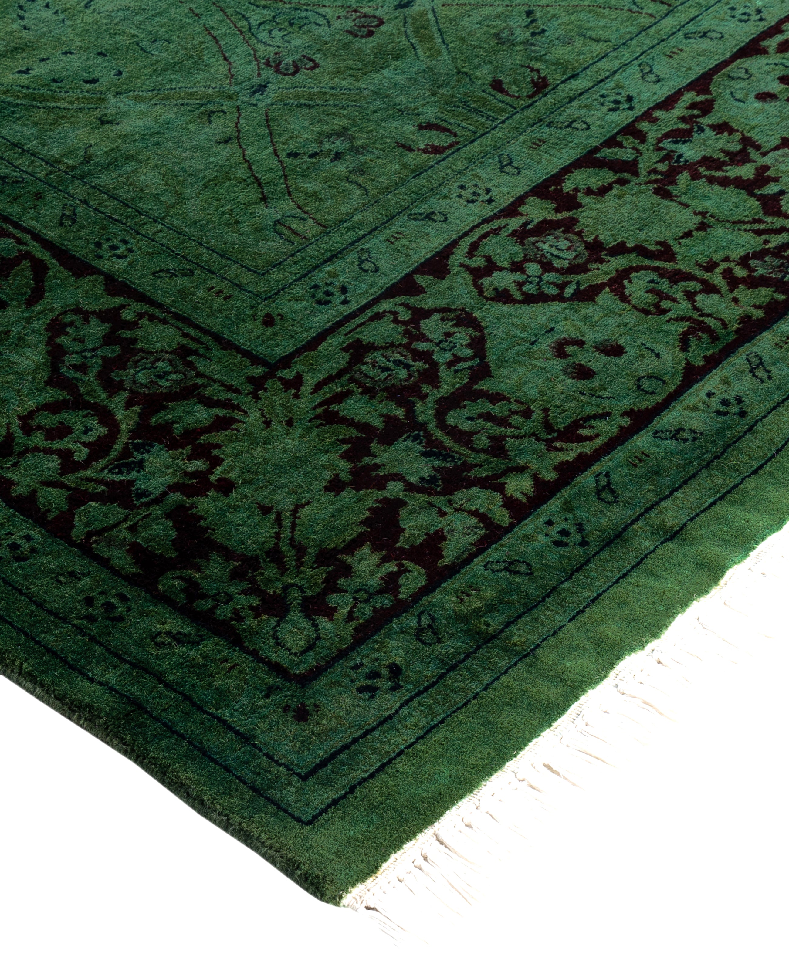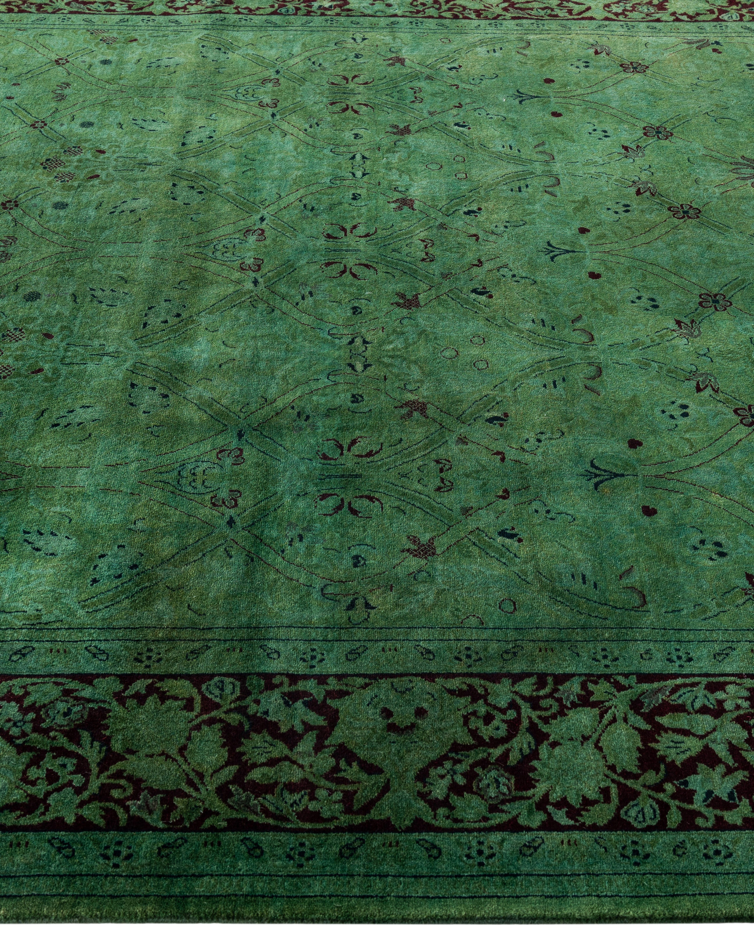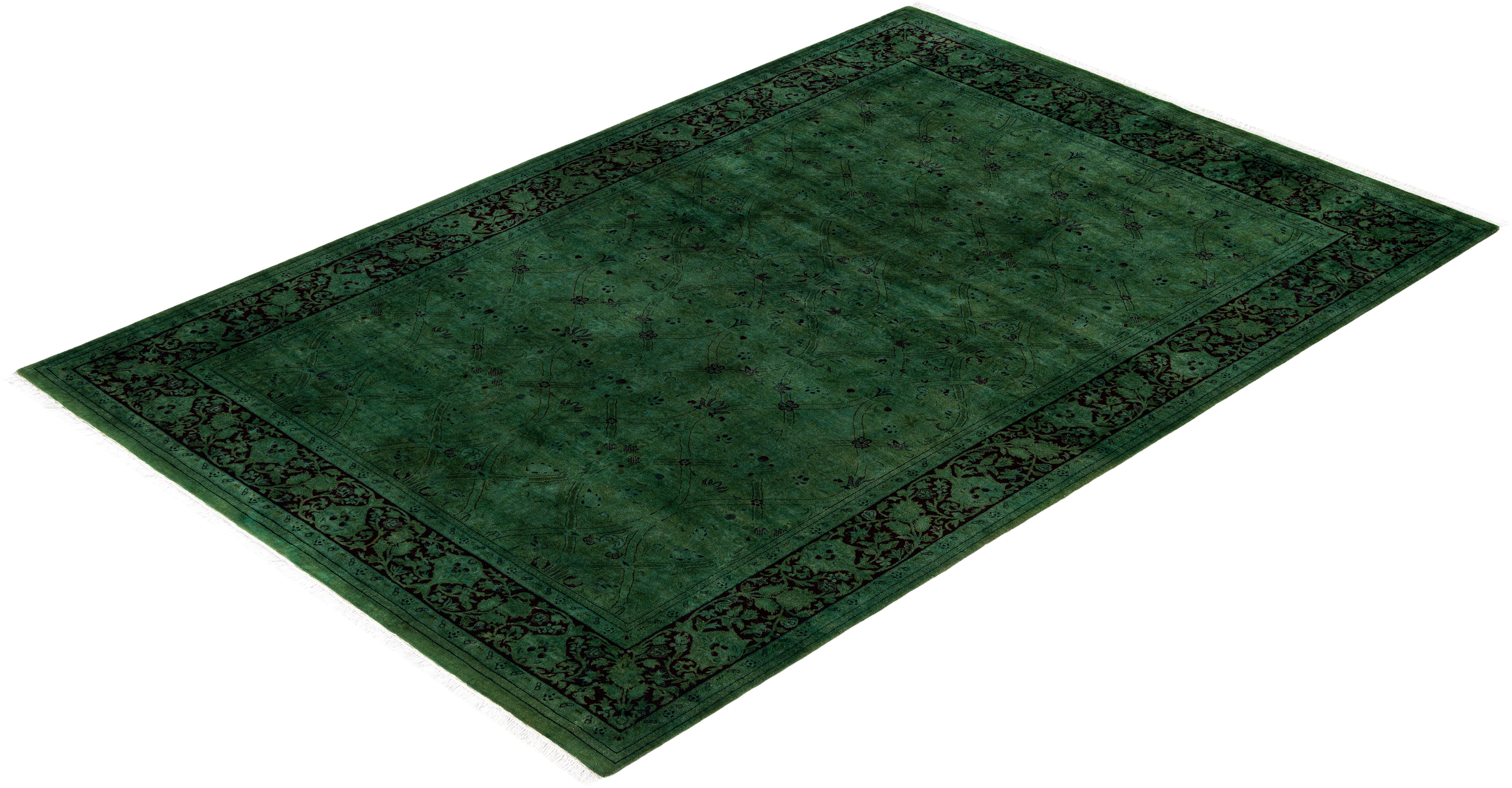 Contemporary Overdyed Wool Hand Knotted Green Area Rug 6' 0" x 8' 10"