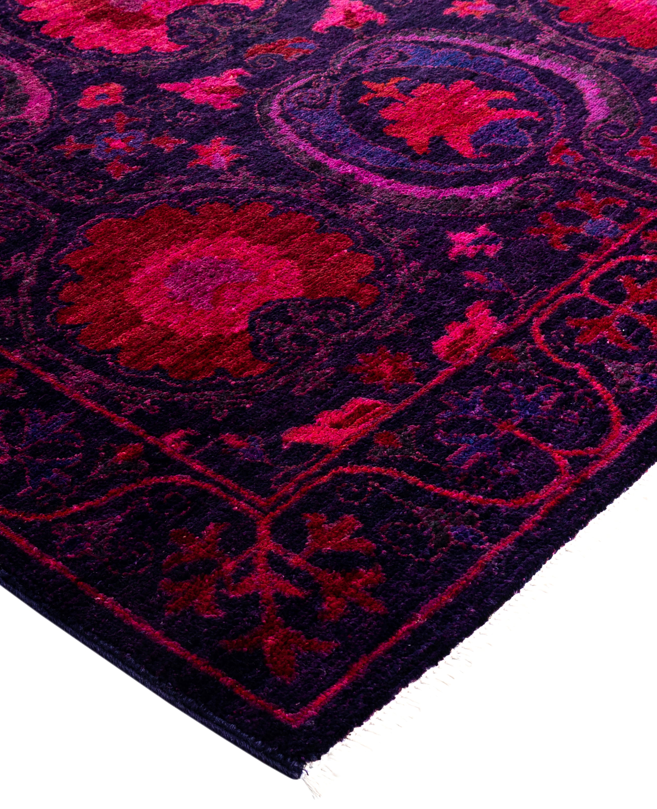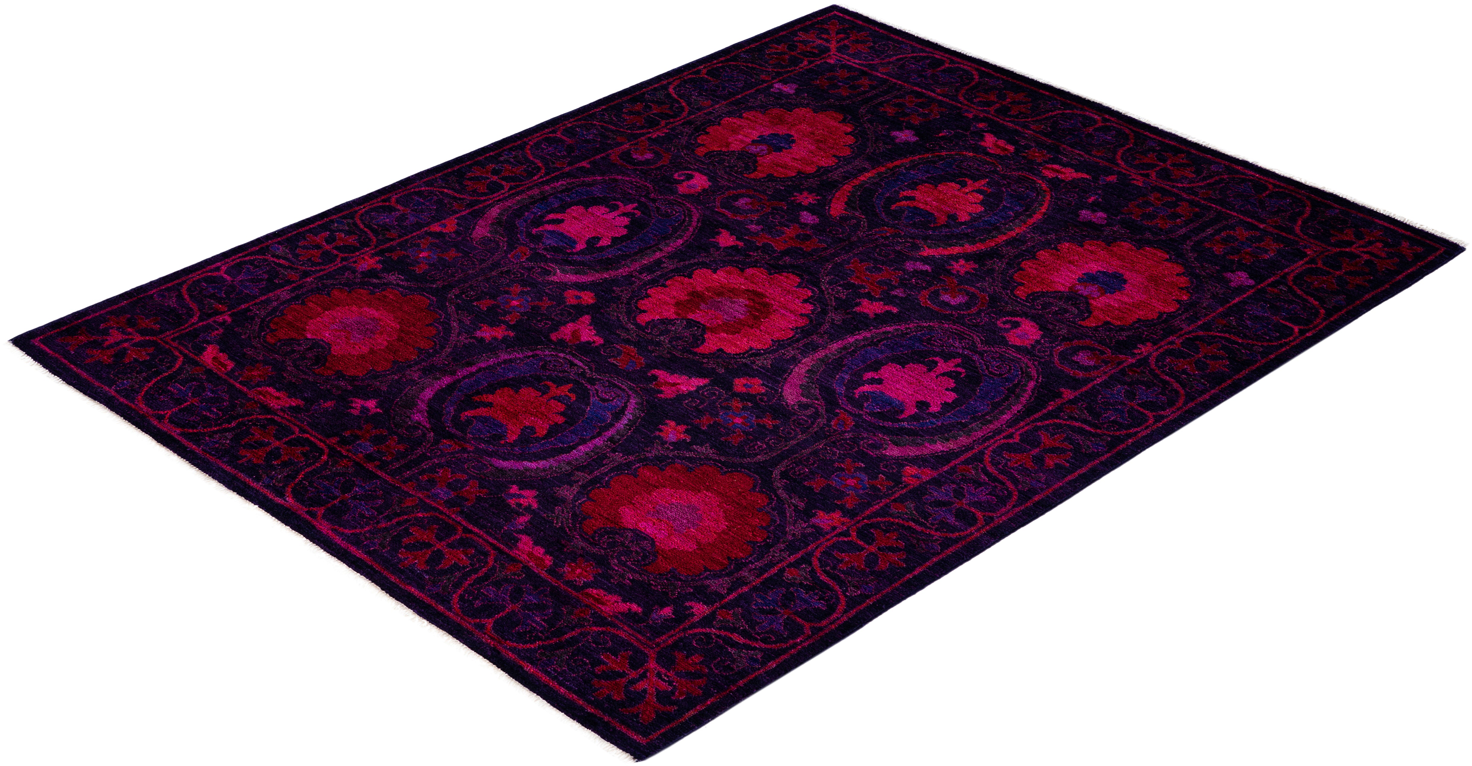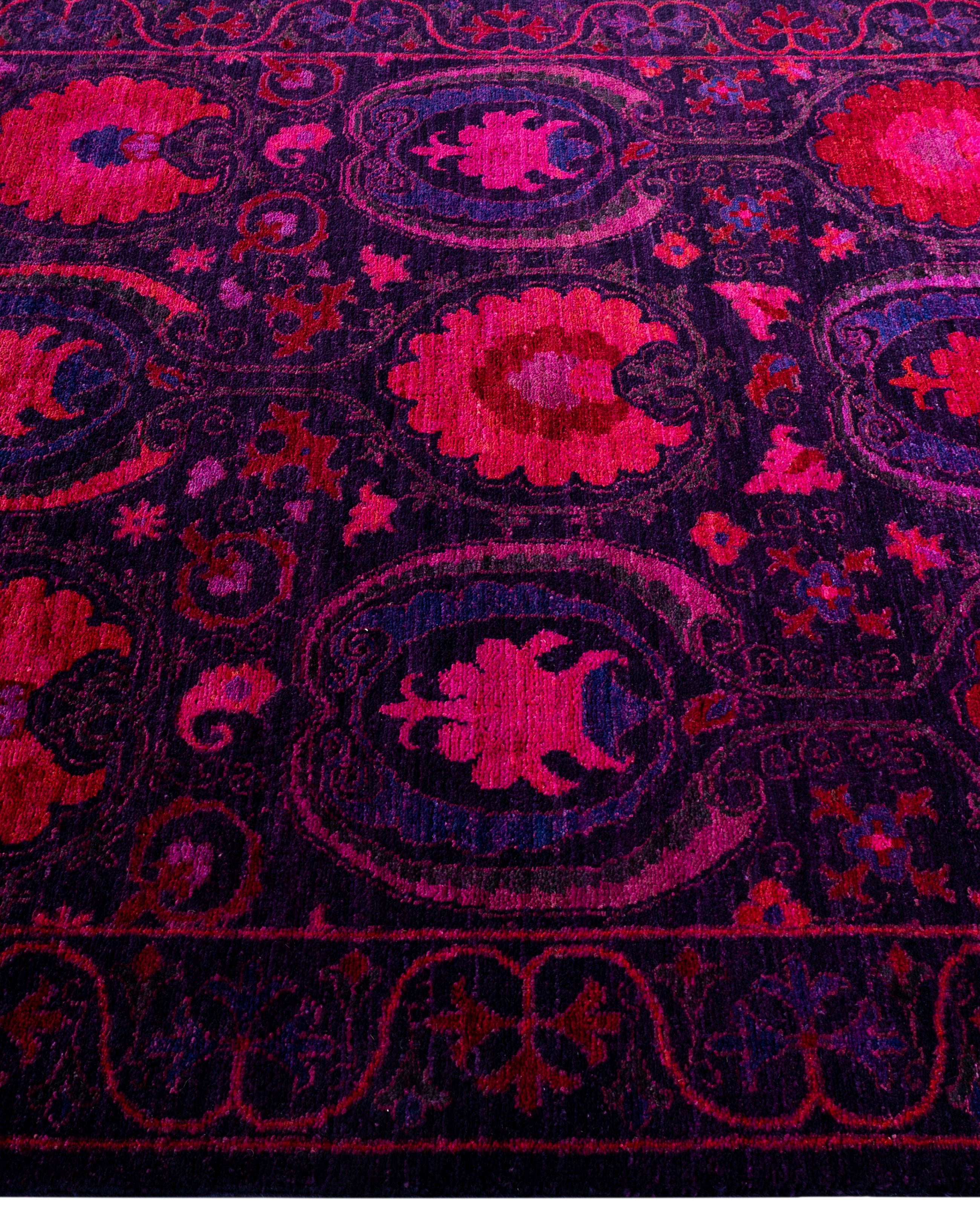 Contemporary Overdyed Wool Hand Knotted Purple Area Rug 4' 3" x 5' 6"