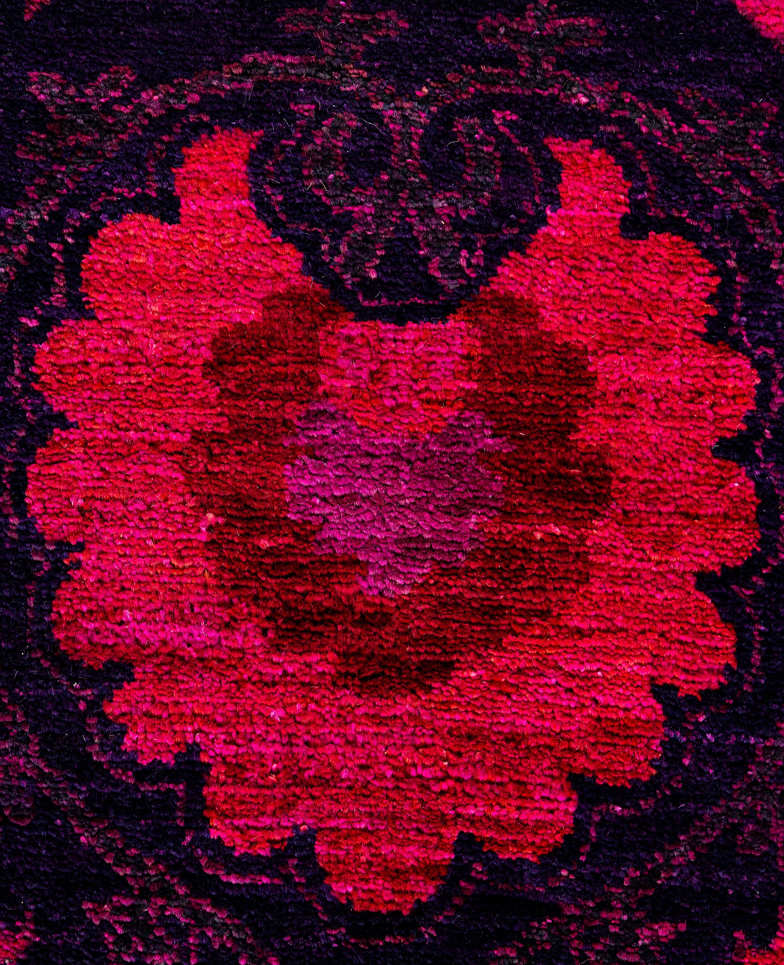 Over-dyed area rugs are created by taking vintage or traditional rugs and applying a vibrant, monochromatic dye over the existing patterns. This technique results in a bold, modern aesthetic while preserving the intricate designs beneath, blending the old with the new. The rugs are often faded and distressed before dyeing, which adds texture and depth to their appearance. The over-dye process breathes new life into worn or antique rugs, giving them a contemporary twist with rich, saturated colors like deep blues, purples, or bright reds. These rugs work well in both eclectic and modern spaces, offering a unique, artistic flair to any room. They provide a dynamic focal point, balancing between traditional craftsmanship and contemporary design trends. Over-dyed rugs are perfect for those looking to add a pop of color and character to their home decor.