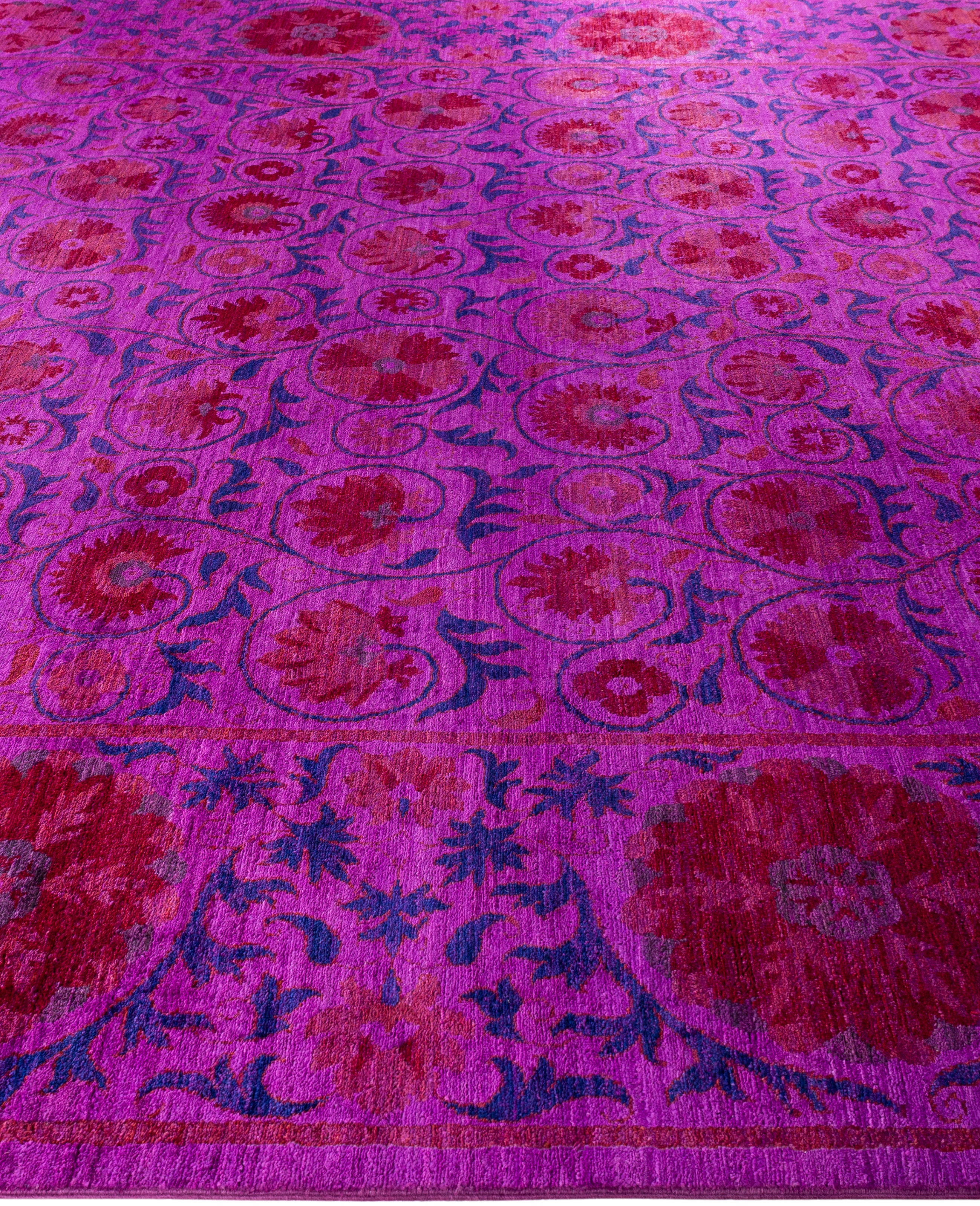 Contemporary Overdyed Wool Hand Knotted Purple Area Rug 10' 2" x 14' 6"