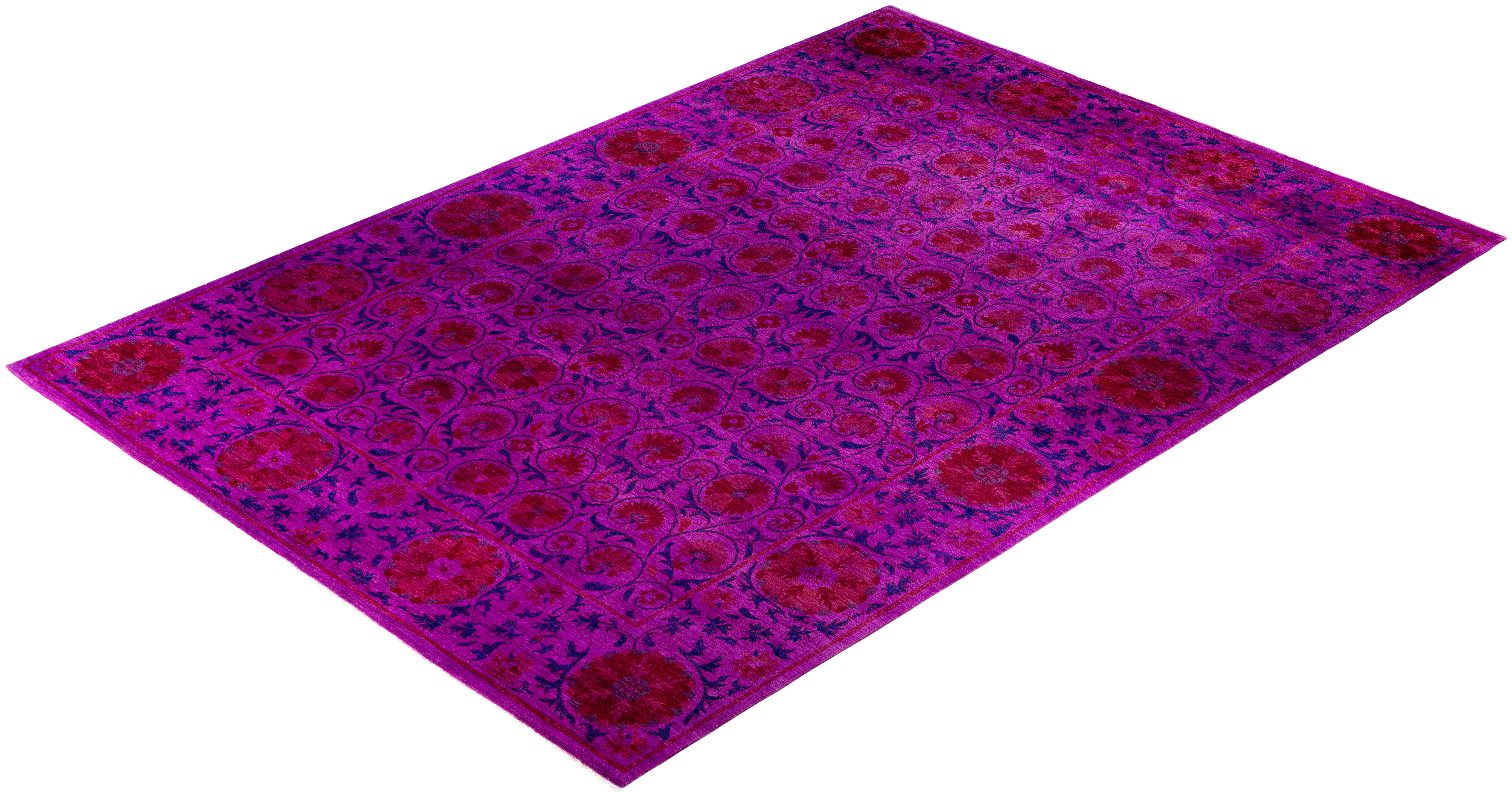 Over-dyed area rugs are created by taking vintage or traditional rugs and applying a vibrant, monochromatic dye over the existing patterns. This technique results in a bold, modern aesthetic while preserving the intricate designs beneath, blending the old with the new. The rugs are often faded and distressed before dyeing, which adds texture and depth to their appearance. The over-dye process breathes new life into worn or antique rugs, giving them a contemporary twist with rich, saturated colors like deep blues, purples, or bright reds. These rugs work well in both eclectic and modern spaces, offering a unique, artistic flair to any room. They provide a dynamic focal point, balancing between traditional craftsmanship and contemporary design trends. Over-dyed rugs are perfect for those looking to add a pop of color and character to their home decor.