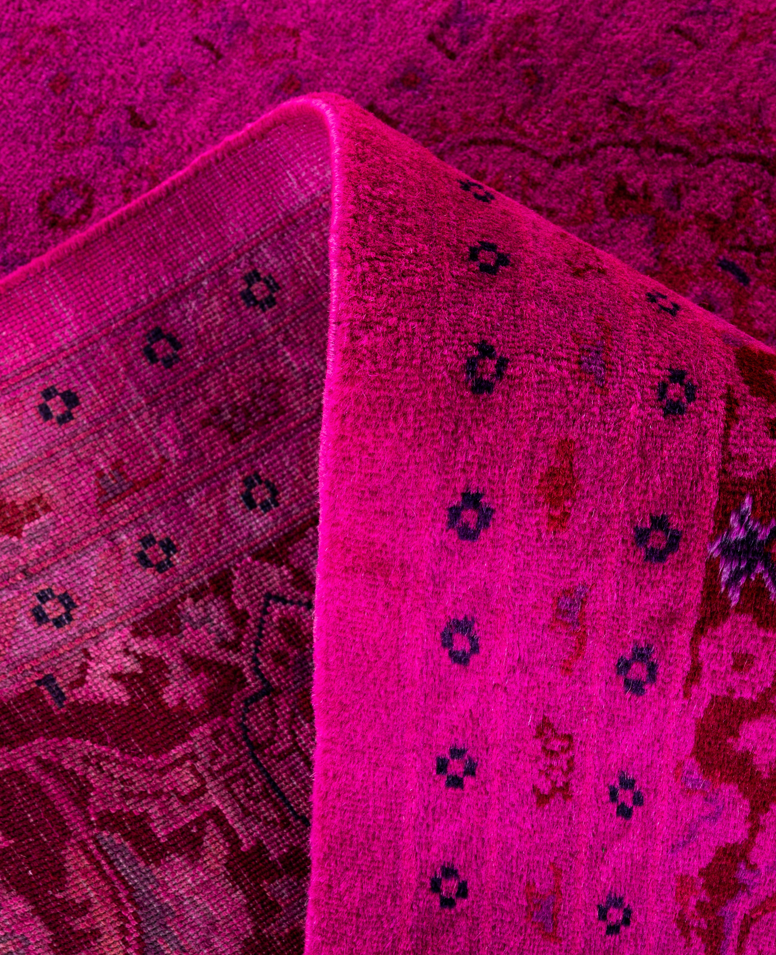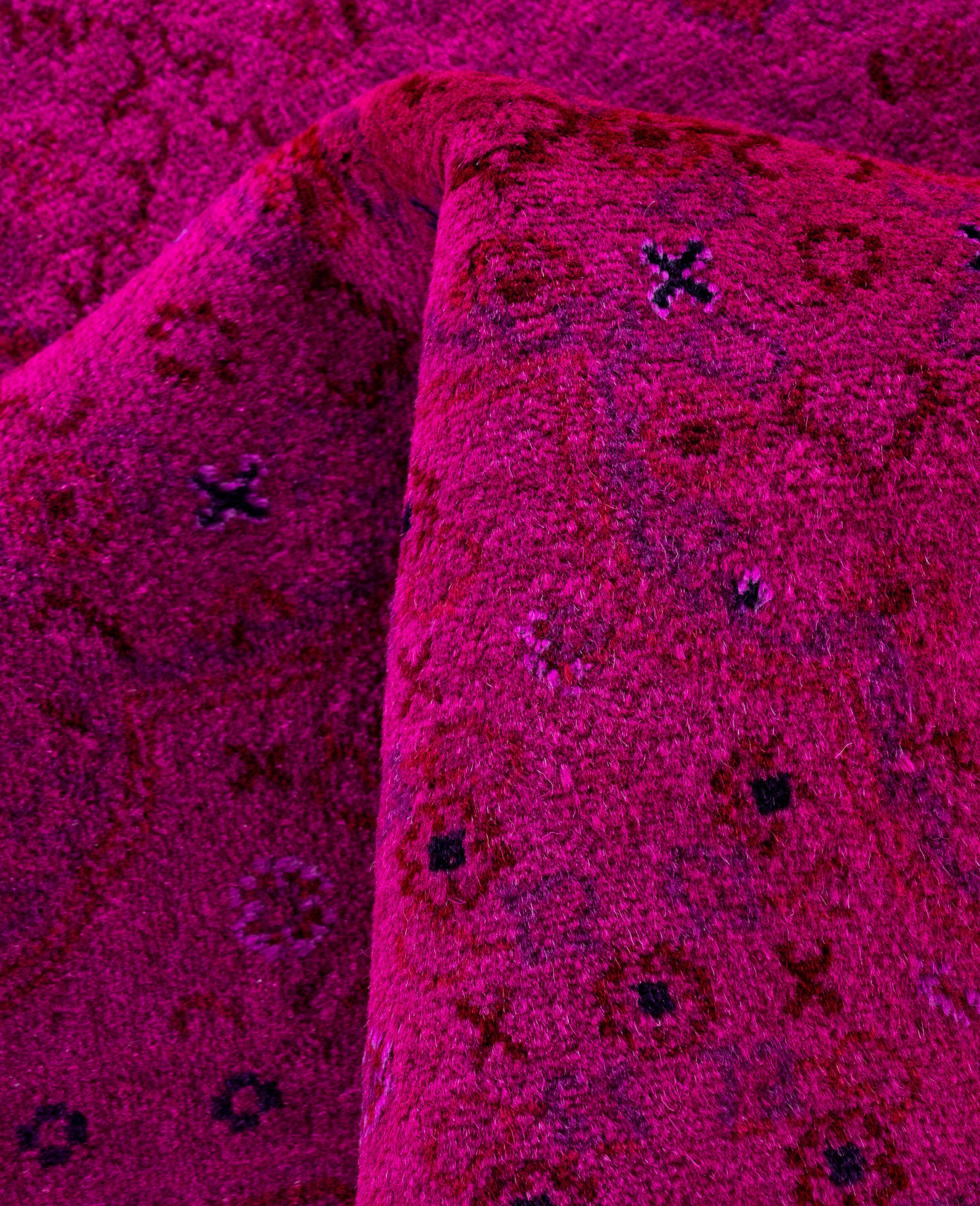 Over-dyed area rugs are created by taking vintage or traditional rugs and applying a vibrant, monochromatic dye over the existing patterns. This technique results in a bold, modern aesthetic while preserving the intricate designs beneath, blending the old with the new. The rugs are often faded and distressed before dyeing, which adds texture and depth to their appearance. The over-dye process breathes new life into worn or antique rugs, giving them a contemporary twist with rich, saturated colors like deep blues, purples, or bright reds. These rugs work well in both eclectic and modern spaces, offering a unique, artistic flair to any room. They provide a dynamic focal point, balancing between traditional craftsmanship and contemporary design trends. Over-dyed rugs are perfect for those looking to add a pop of color and character to their home decor.