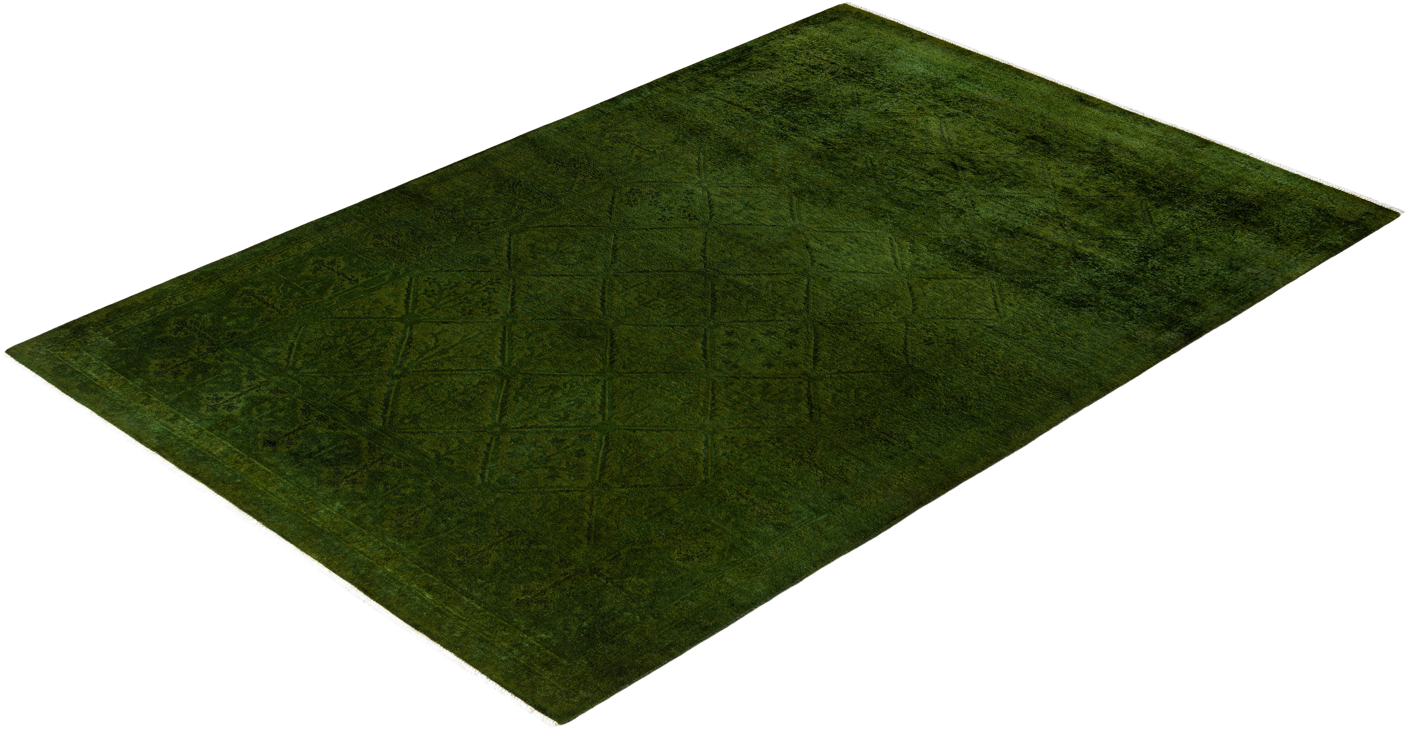 Contemporary Overdyed Wool Hand Knotted Green Area Rug 5' 3" x 7' 8"