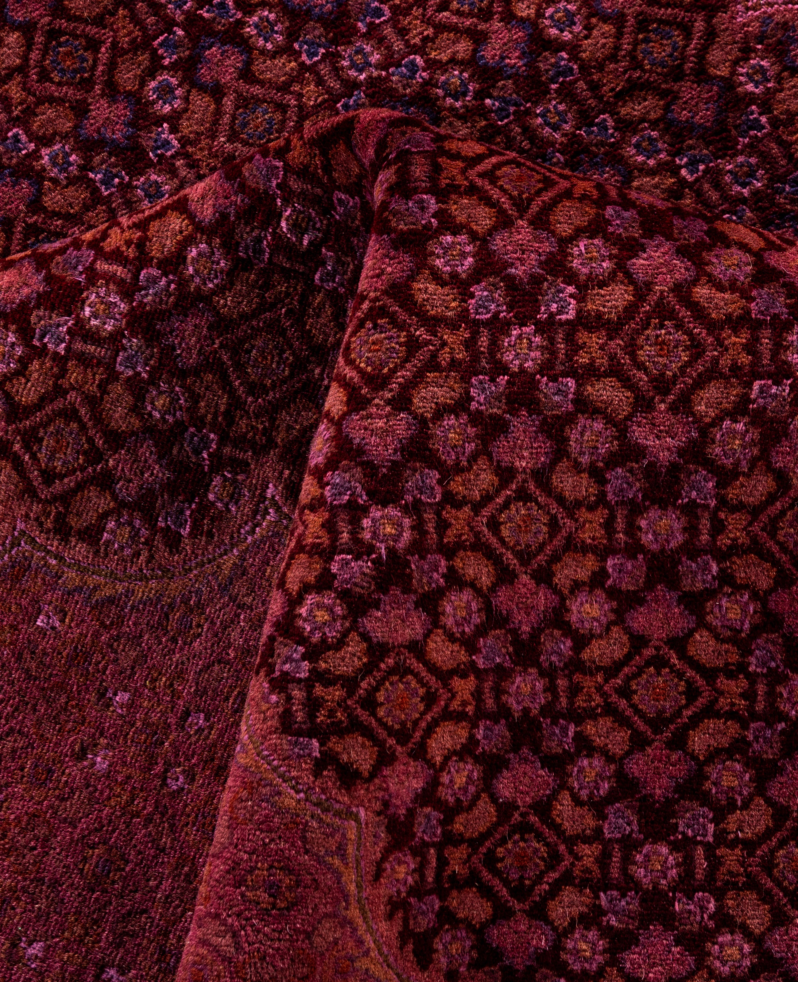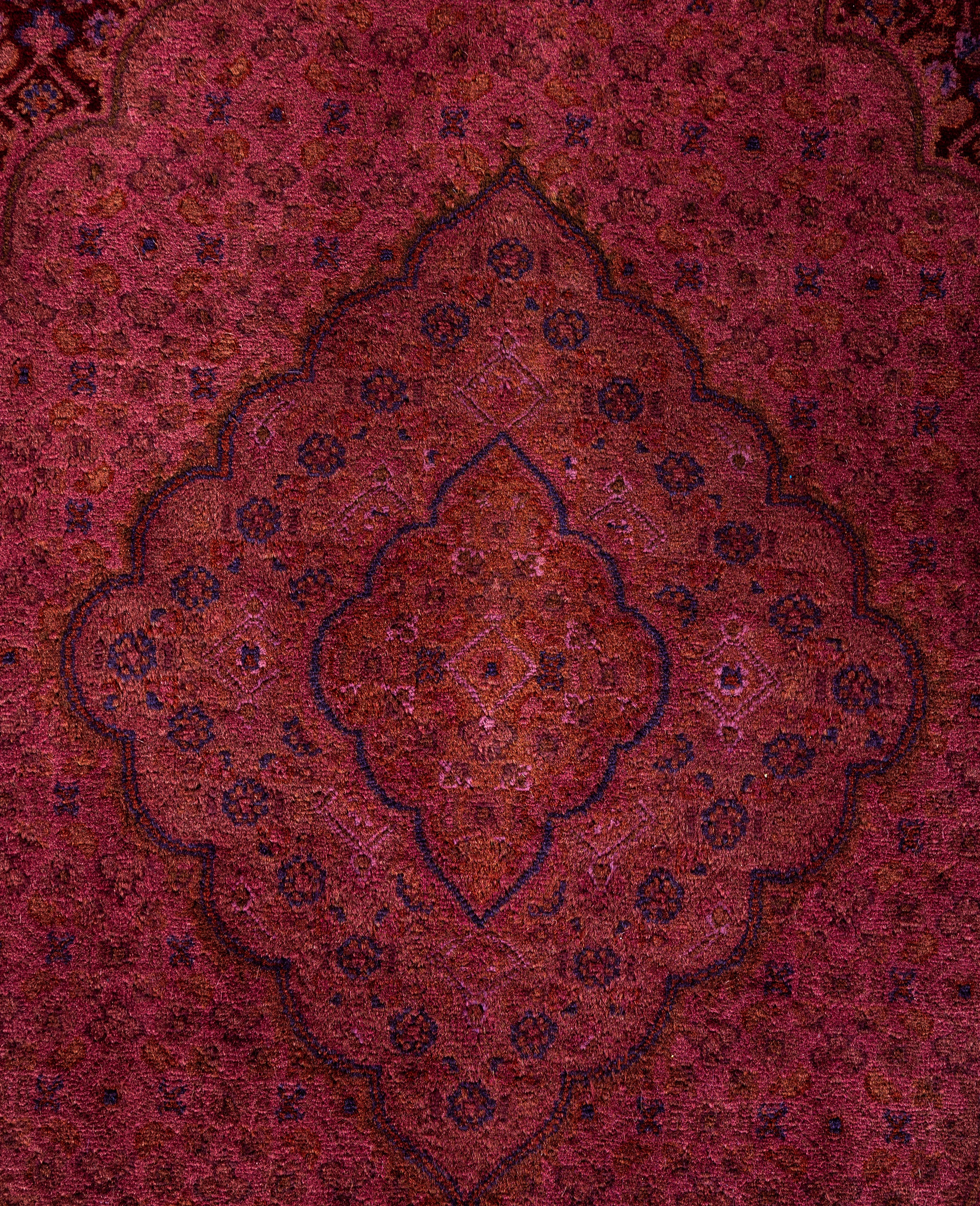 Over-dyed area rugs are created by taking vintage or traditional rugs and applying a vibrant, monochromatic dye over the existing patterns. This technique results in a bold, modern aesthetic while preserving the intricate designs beneath, blending the old with the new. The rugs are often faded and distressed before dyeing, which adds texture and depth to their appearance. The over-dye process breathes new life into worn or antique rugs, giving them a contemporary twist with rich, saturated colors like deep blues, purples, or bright reds. These rugs work well in both eclectic and modern spaces, offering a unique, artistic flair to any room. They provide a dynamic focal point, balancing between traditional craftsmanship and contemporary design trends. Over-dyed rugs are perfect for those looking to add a pop of color and character to their home decor.