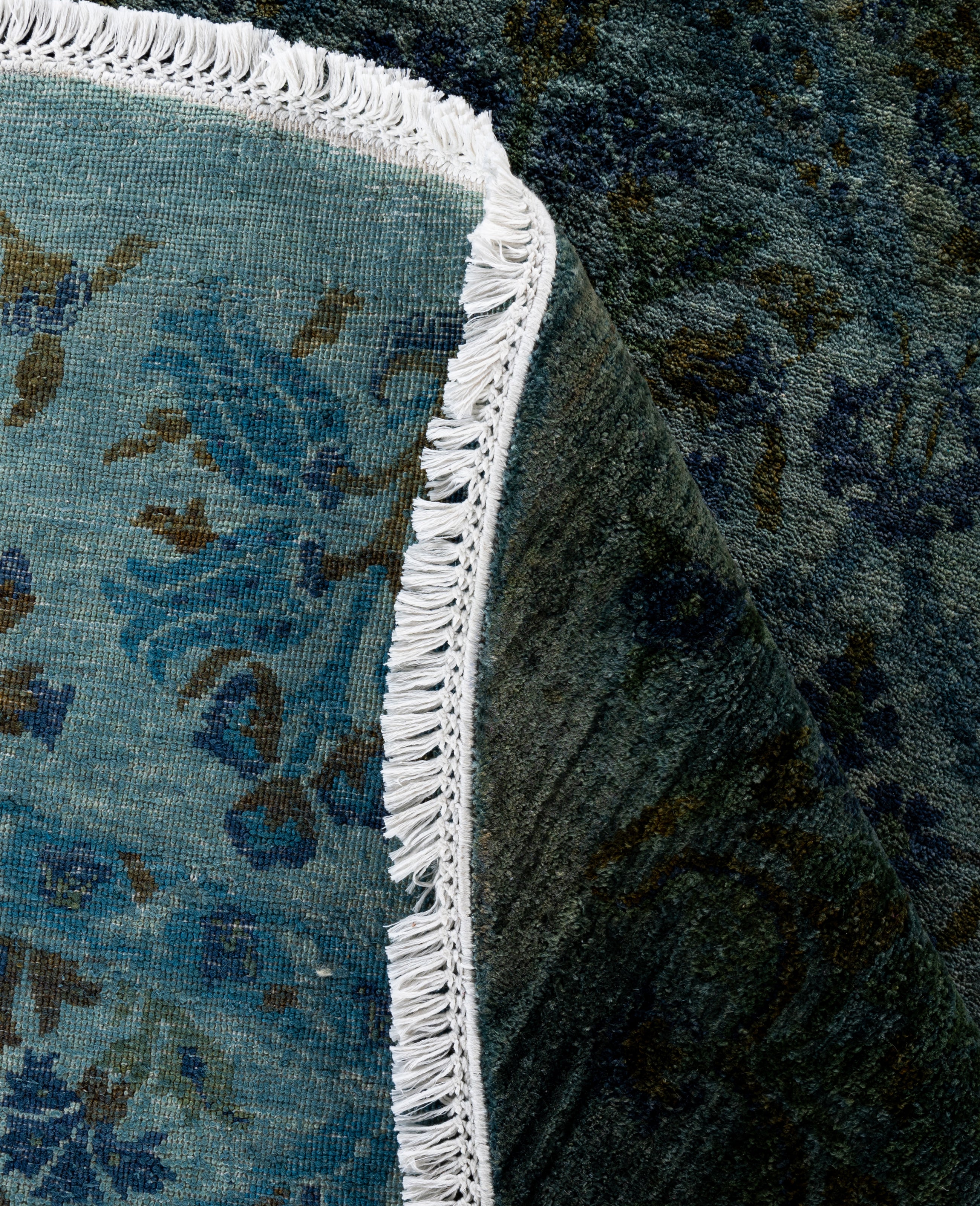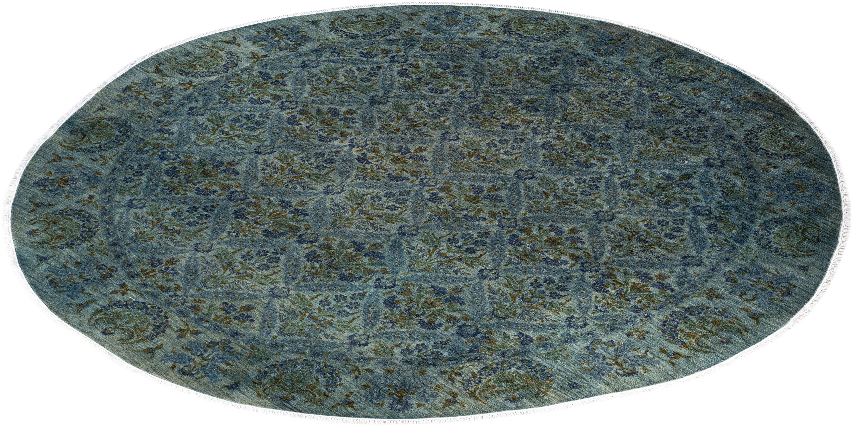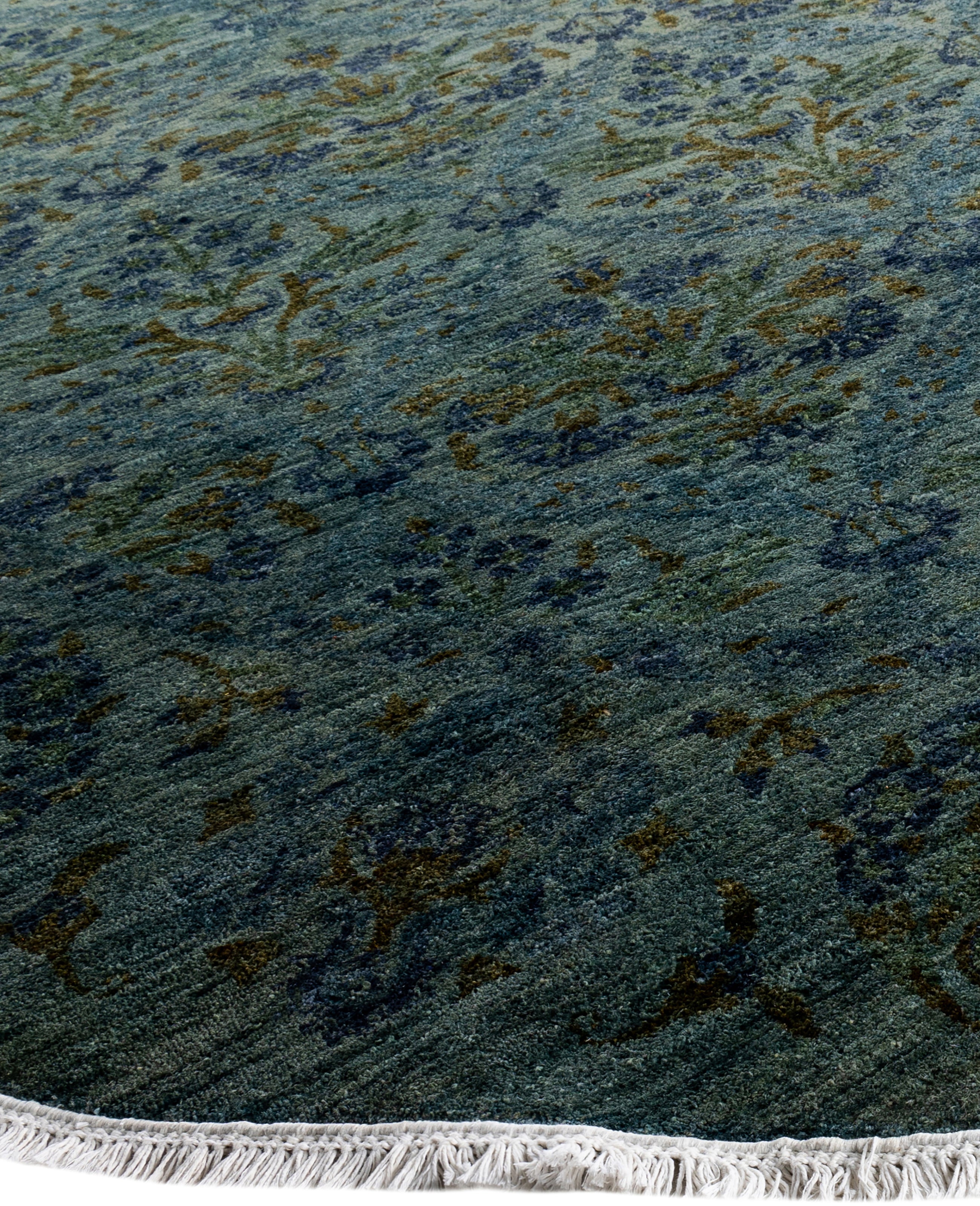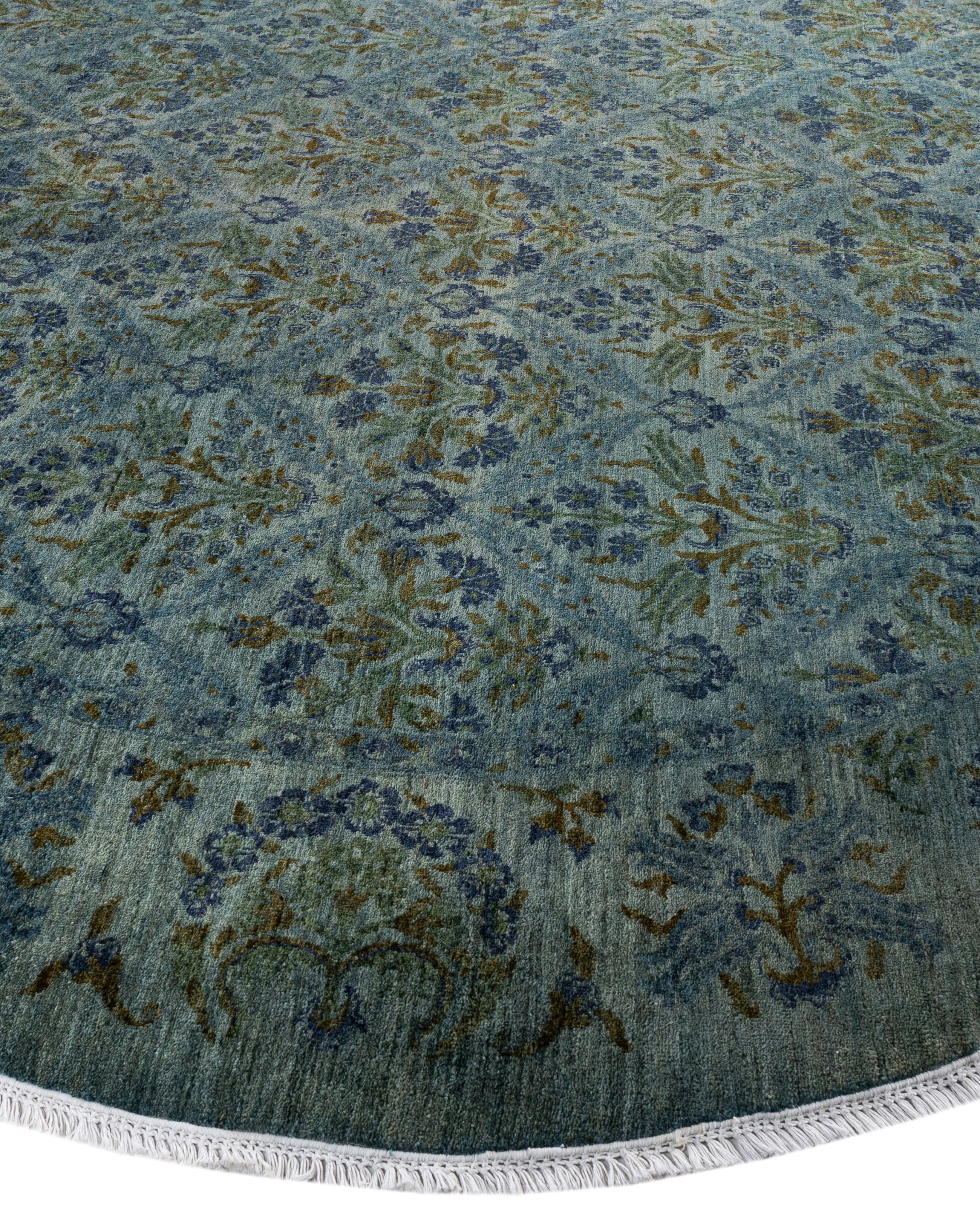 Contemporary Overdyed Wool Hand Knotted Green Round Area Rug 10' 1" x 10' 1"