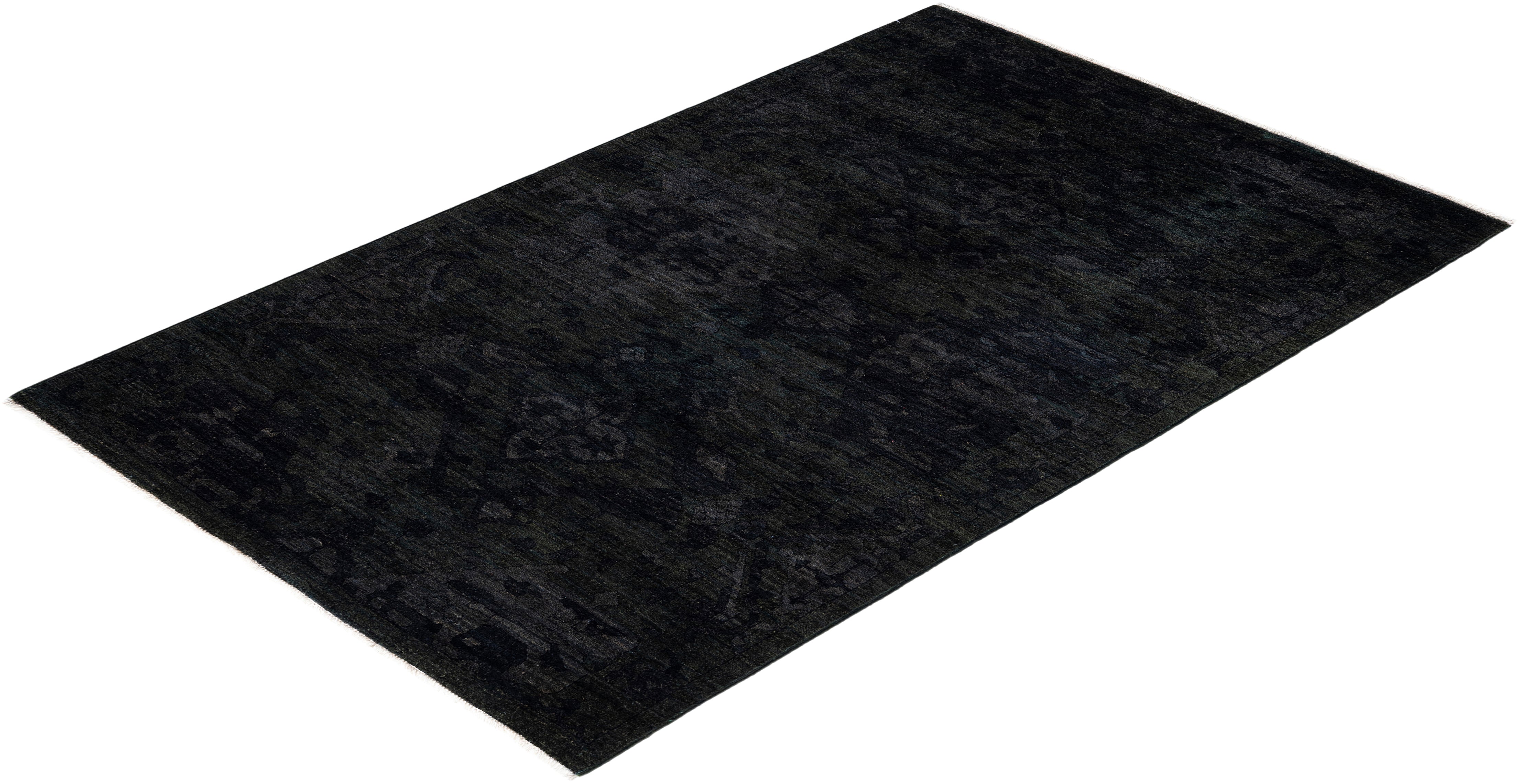 Contemporary Overdyed Wool Hand Knotted Black Area Rug 4' 1" x 6' 3"