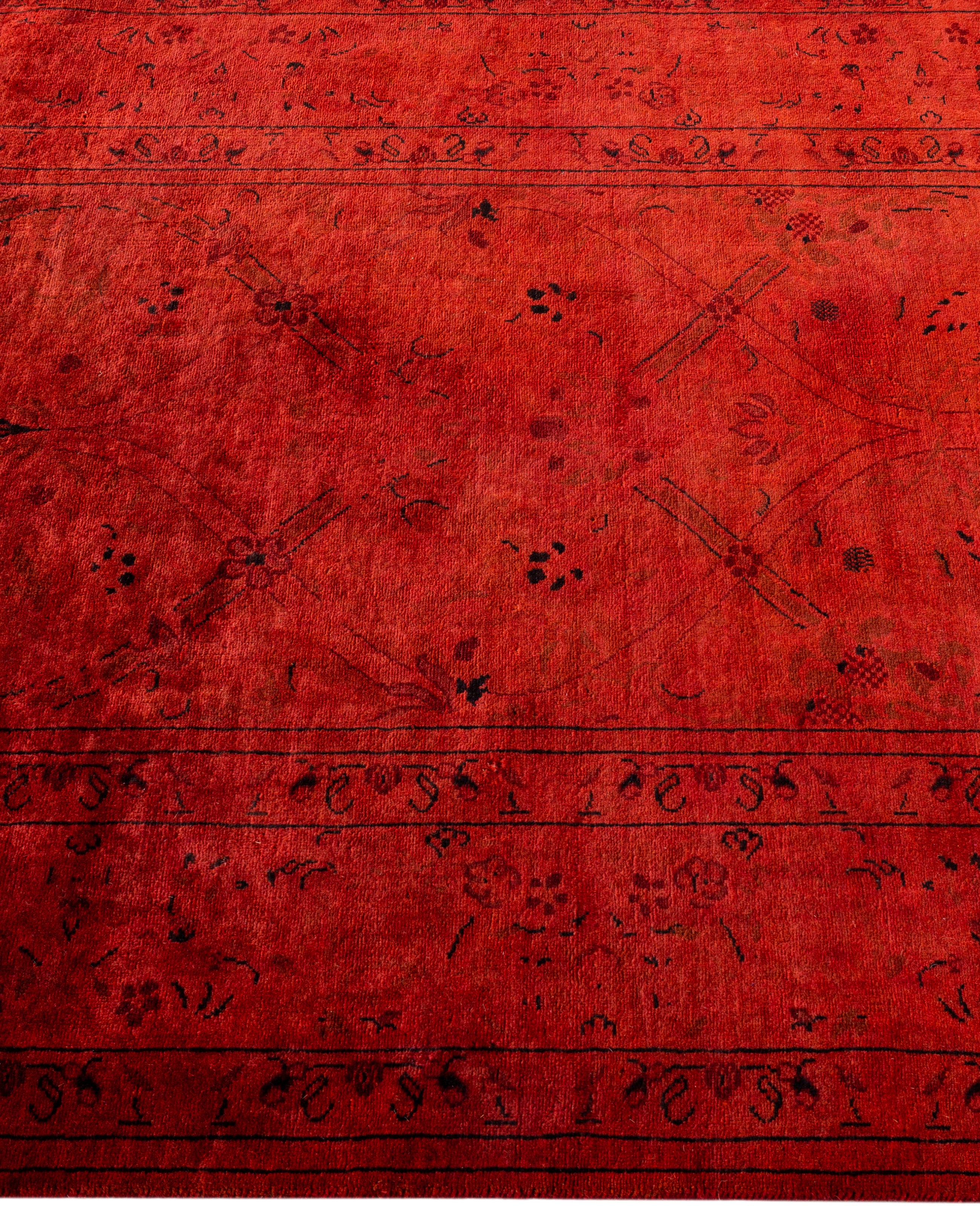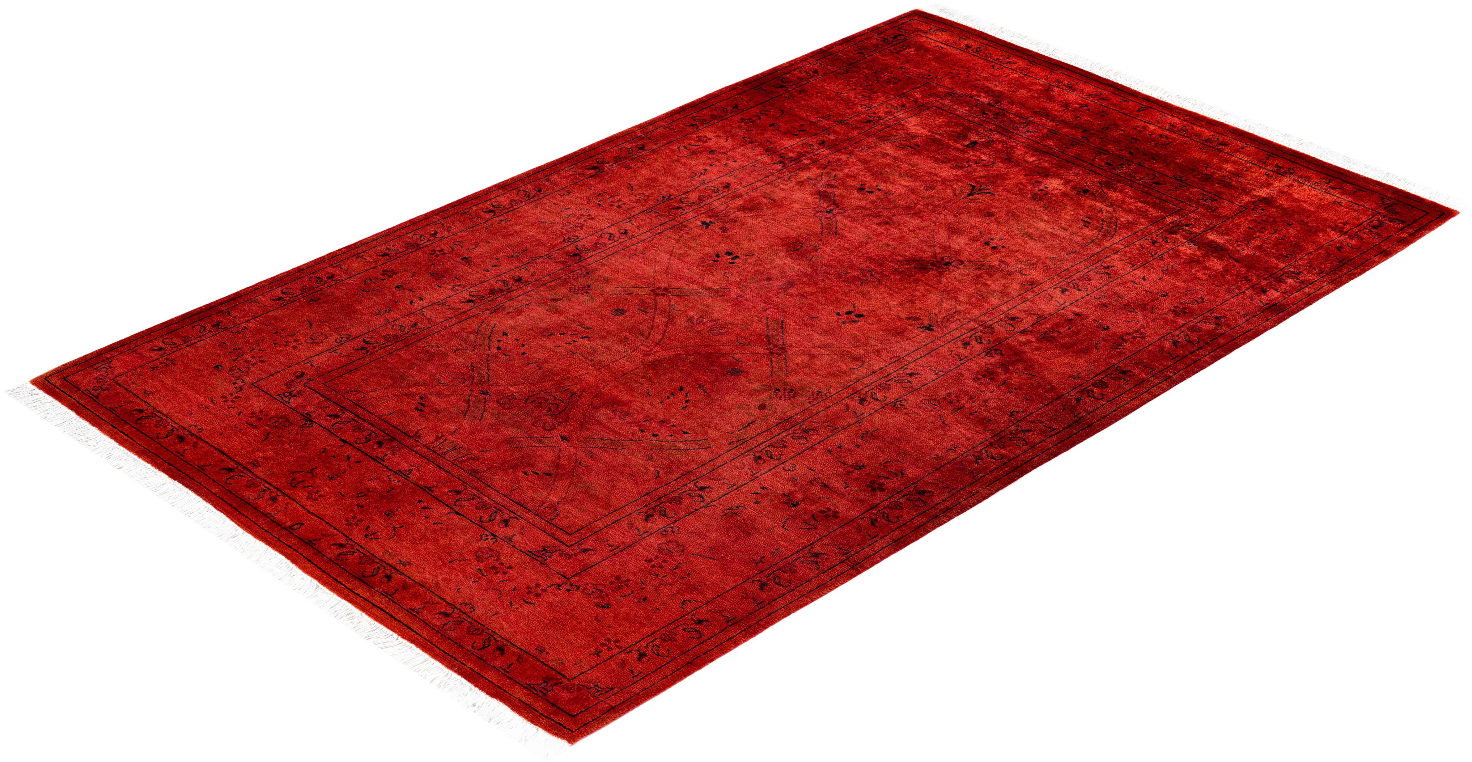 Contemporary Overdyed Wool Hand Knotted Orange Area Rug 3' 3" x 5' 4"