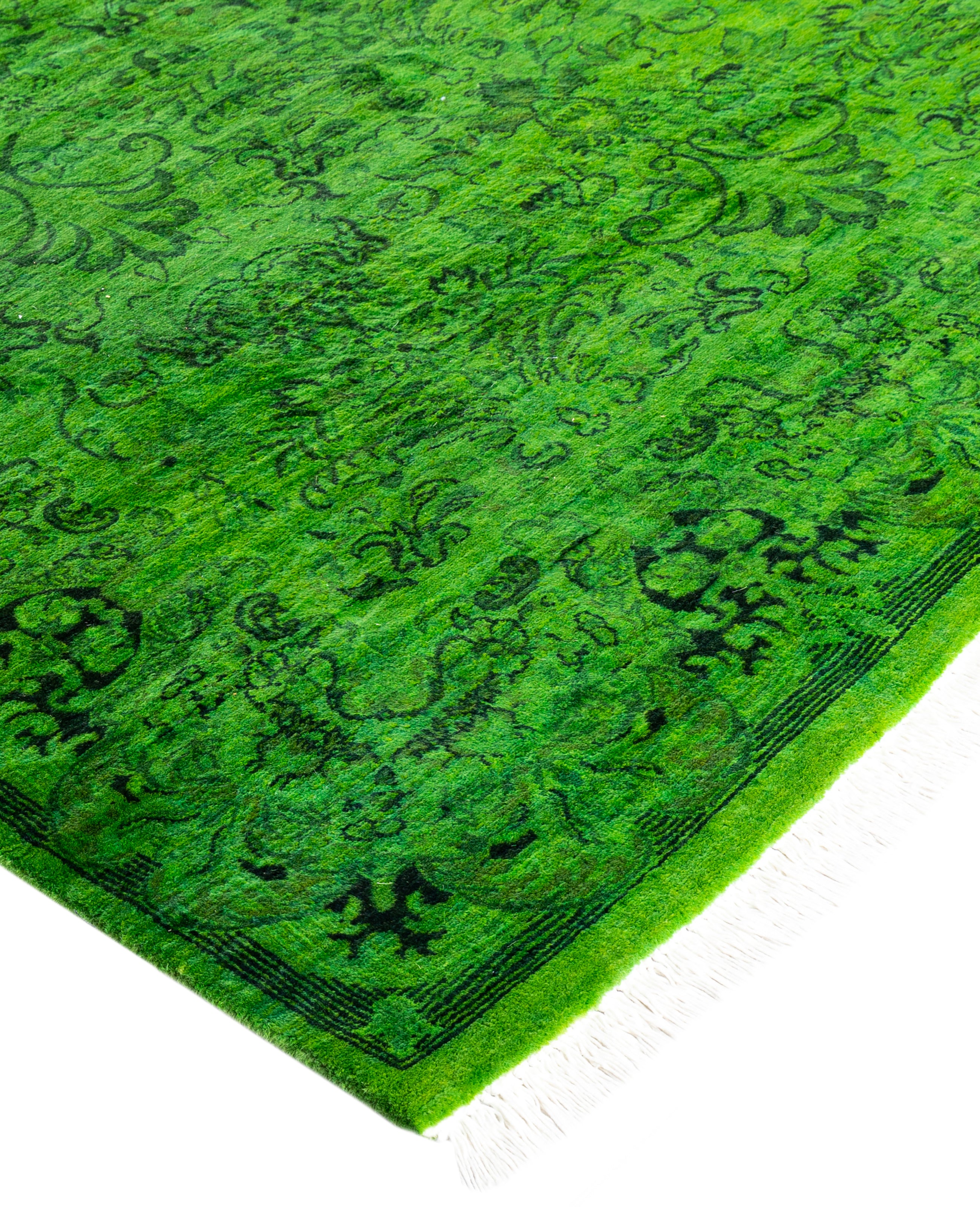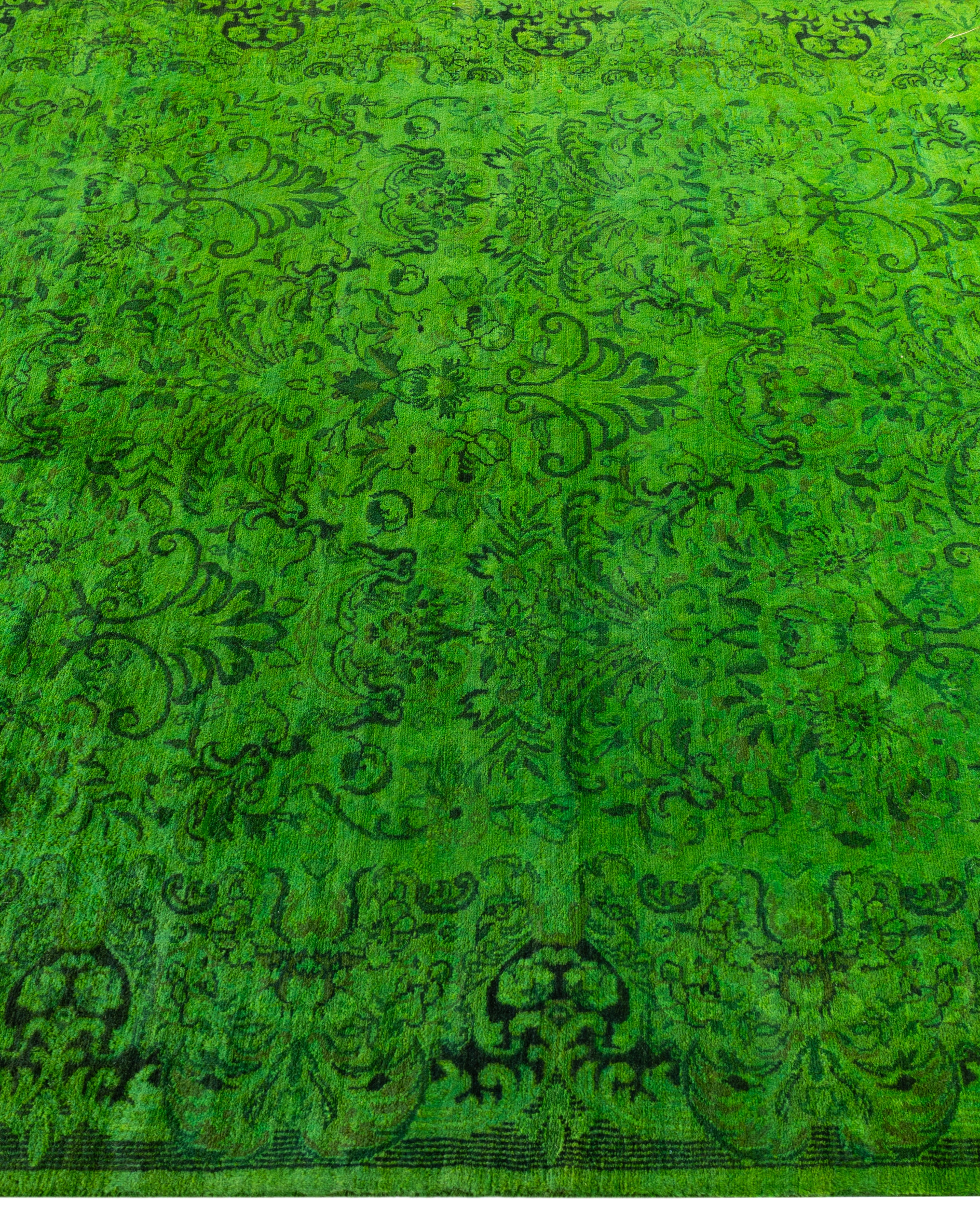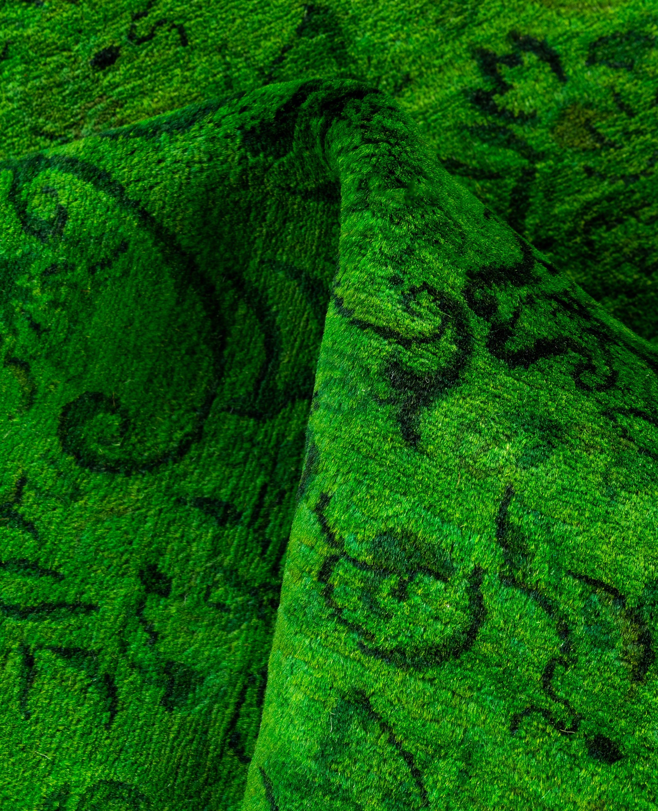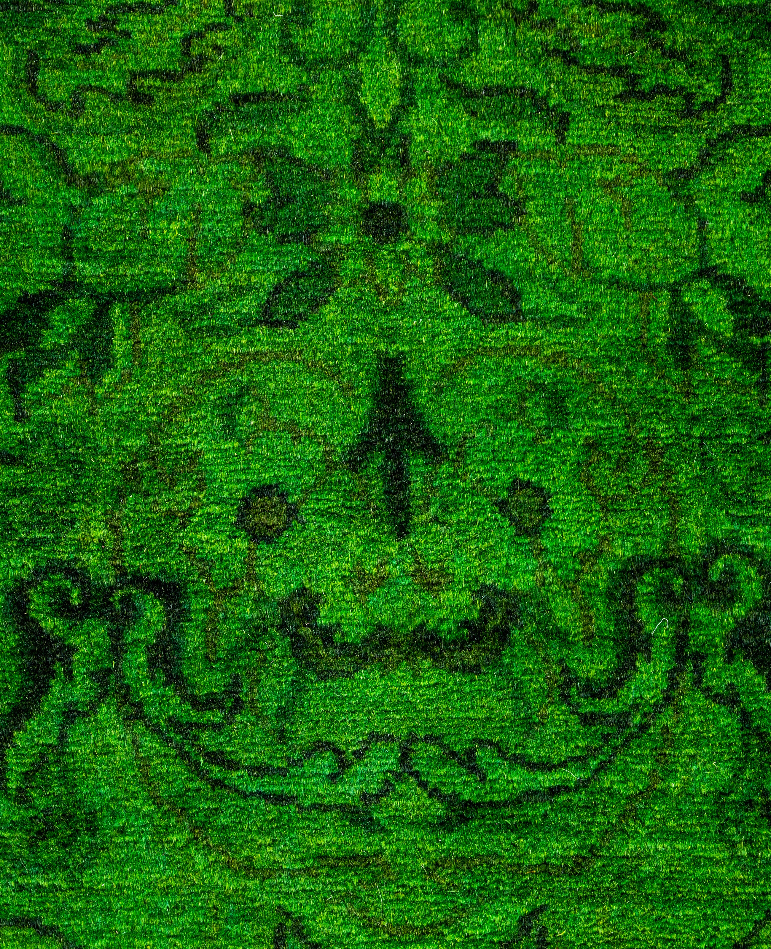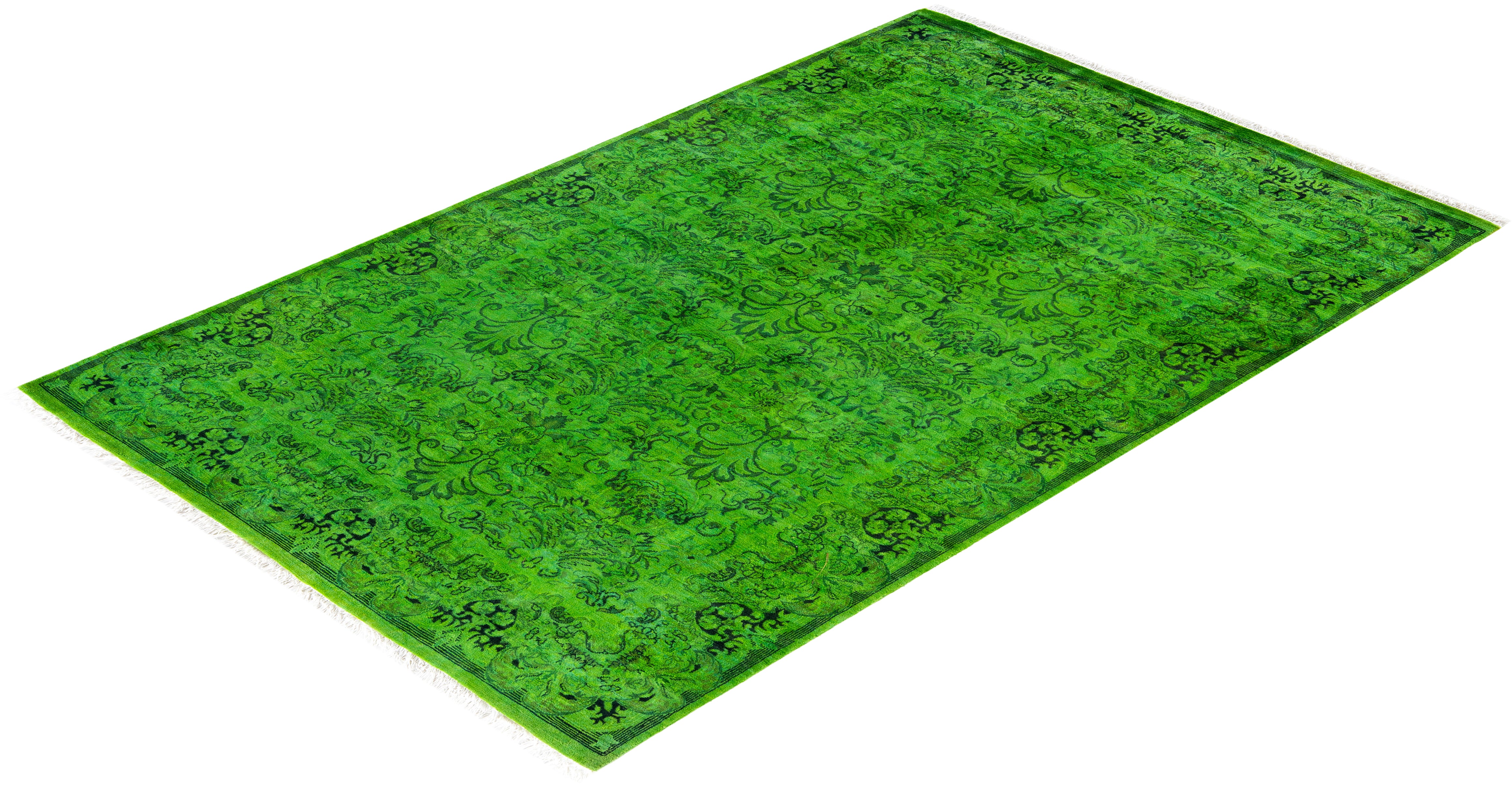 Contemporary Overdyed Wool Hand Knotted Green Area Rug 4' 2" x 6' 3"