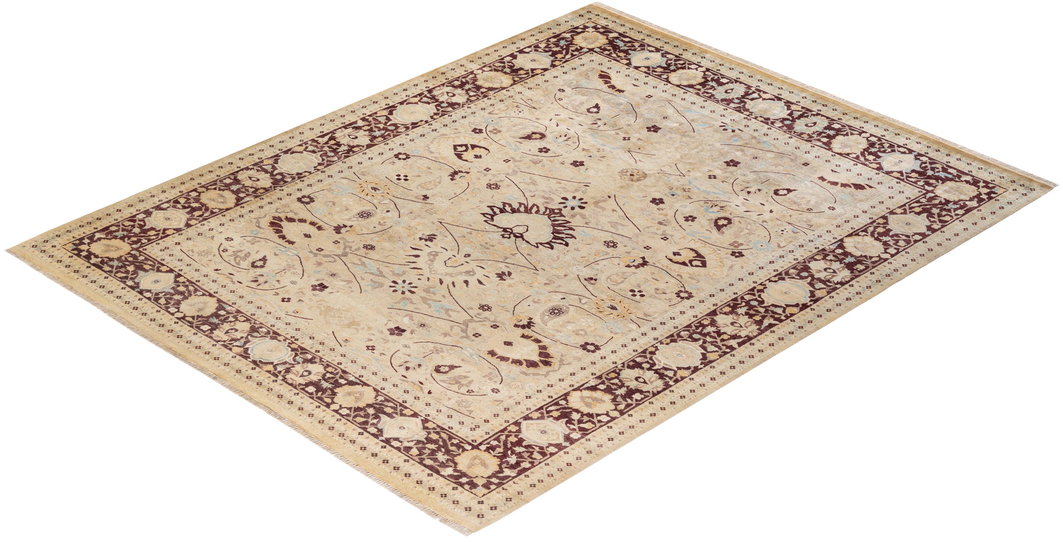Traditional Hand Knotted Mogul Floral Ivory Area Rug 8' 2" x 10' 2"