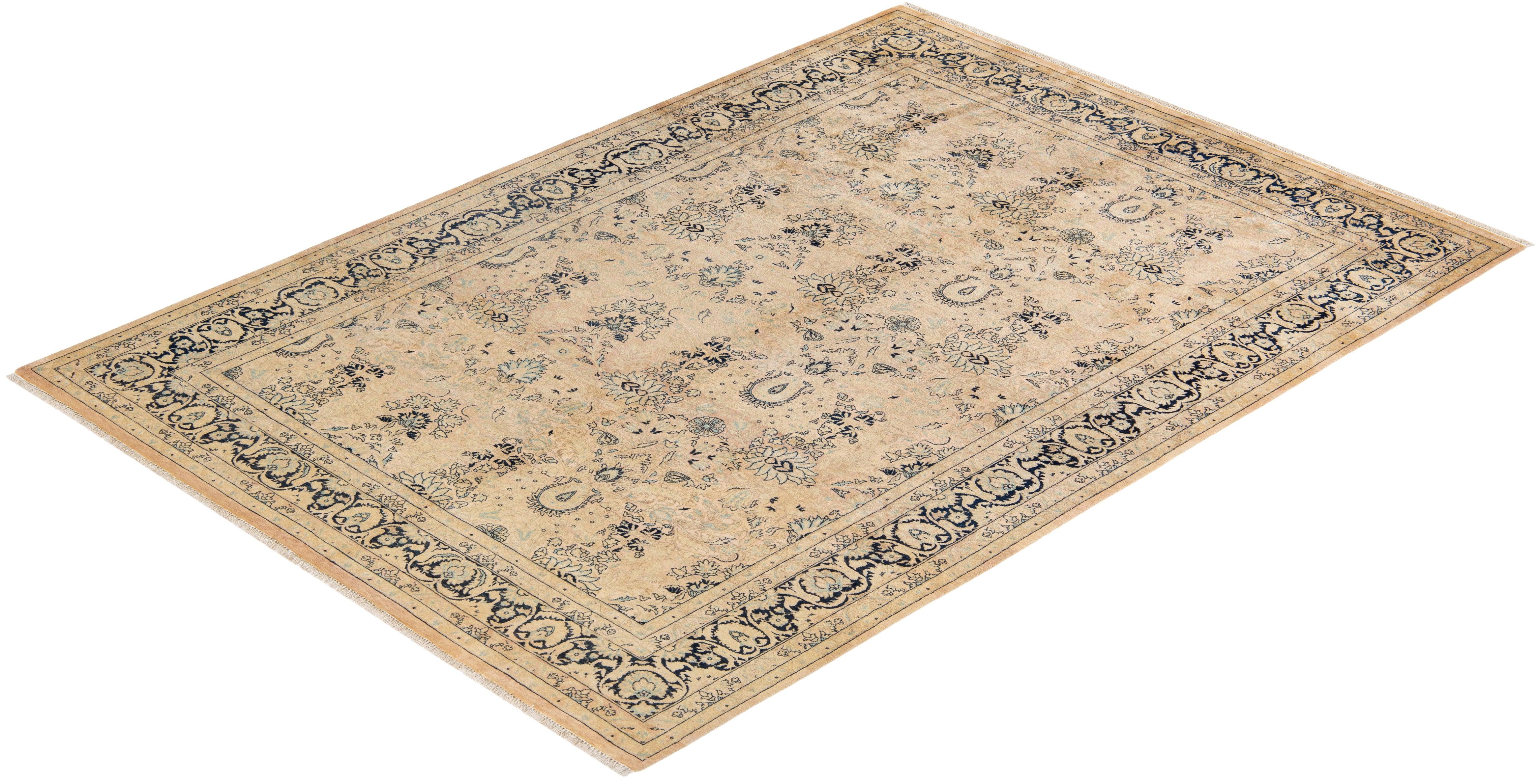 Traditional Hand Knotted Mogul Beige Area Rug 6' 3" x 8' 9"