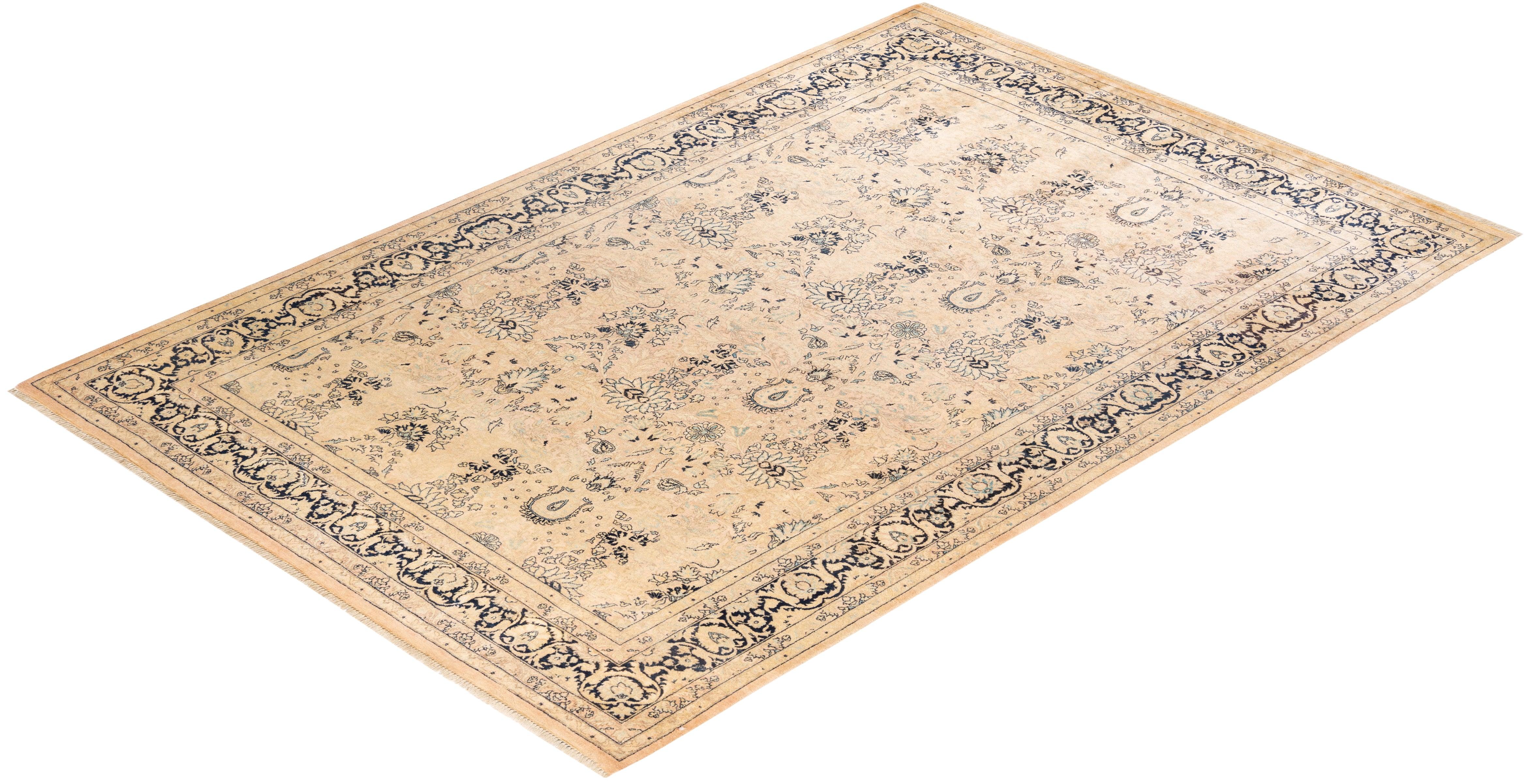 Traditional Hand Knotted Mogul Oriental Beige Area Rug 6' 2" x 9' 3"