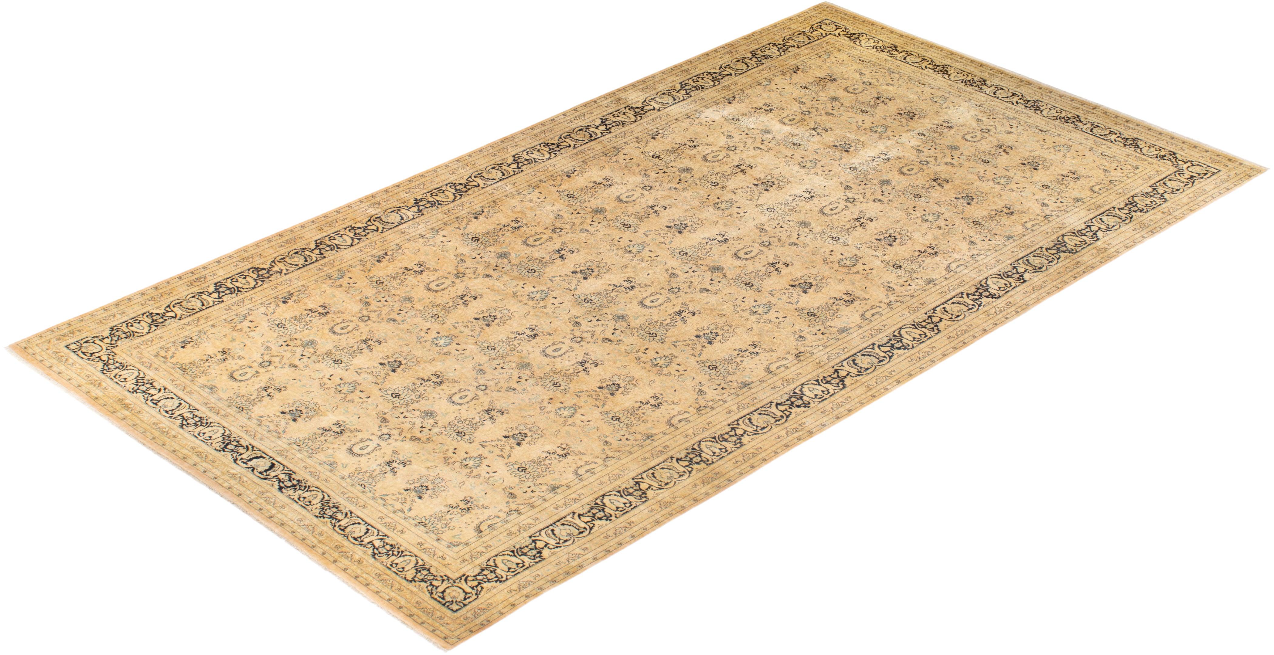 Traditional Hand Knotted Mogul Floral Beige Area Rug 10' 3" x 18' 8"