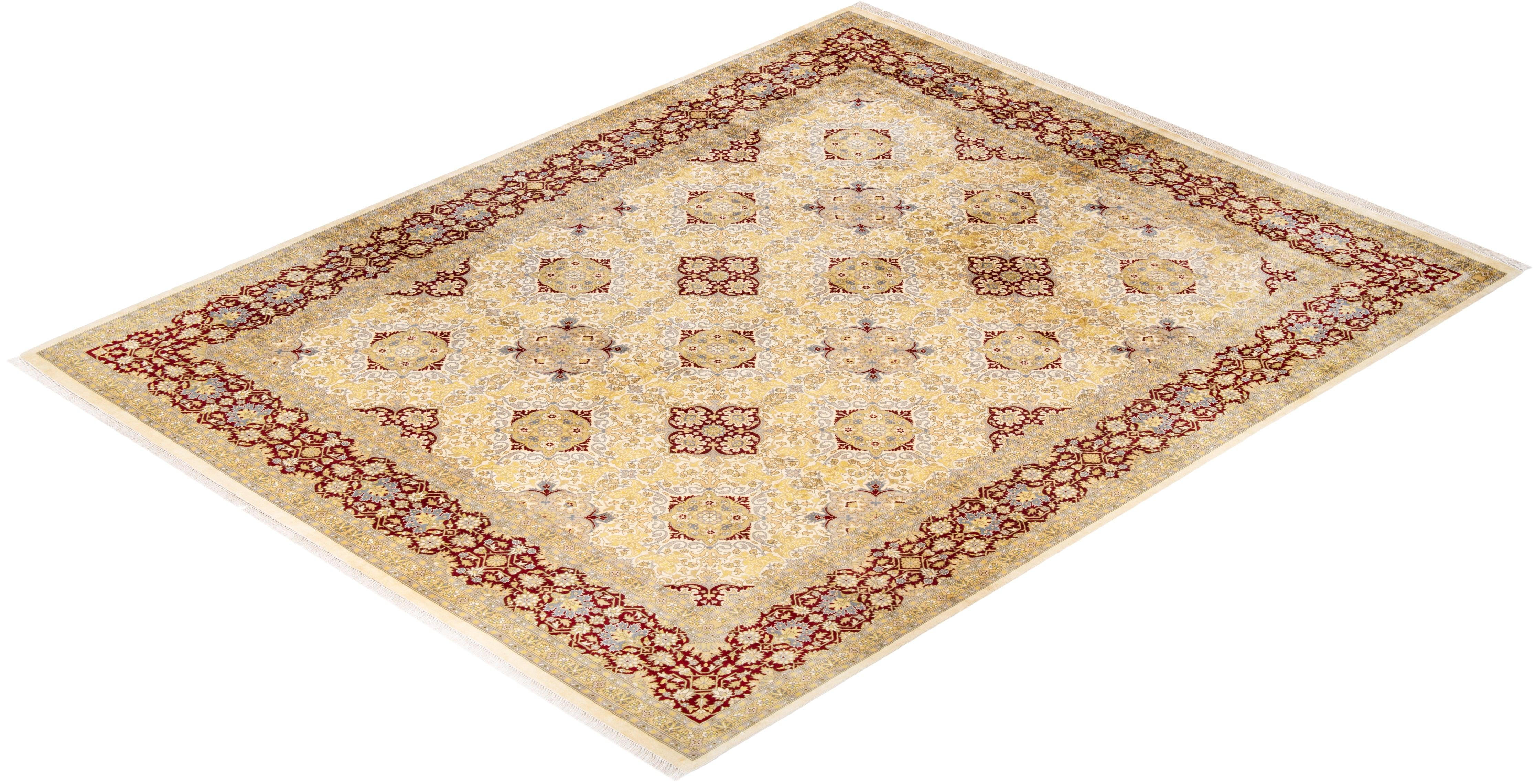 Traditional Hand Knotted Mogul Ivory Area Rug 8' 2" x 10' 3"