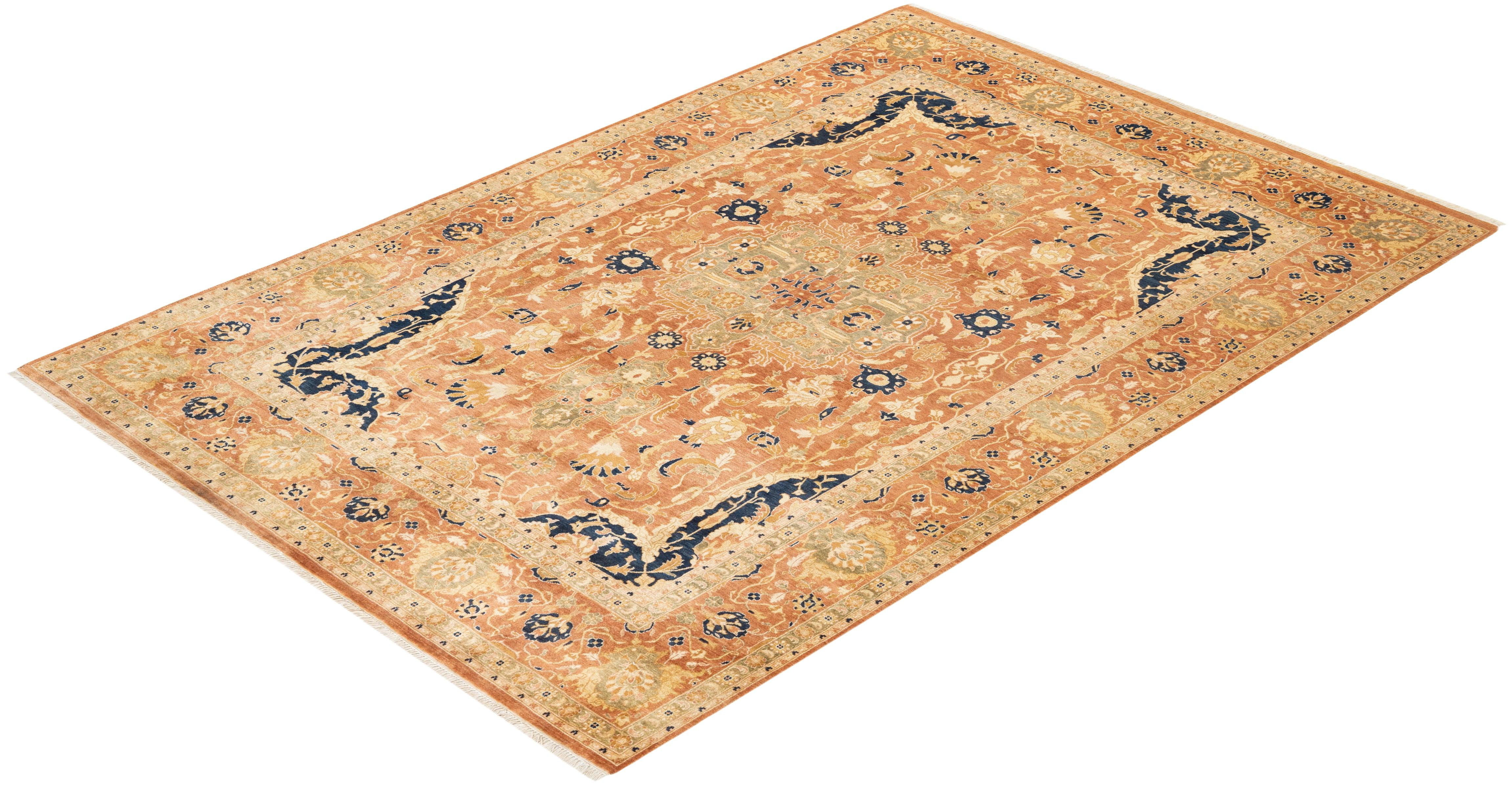 Traditional Hand Knotted Mogul Floral Brown Area Rug 6' 1" x 8' 10"