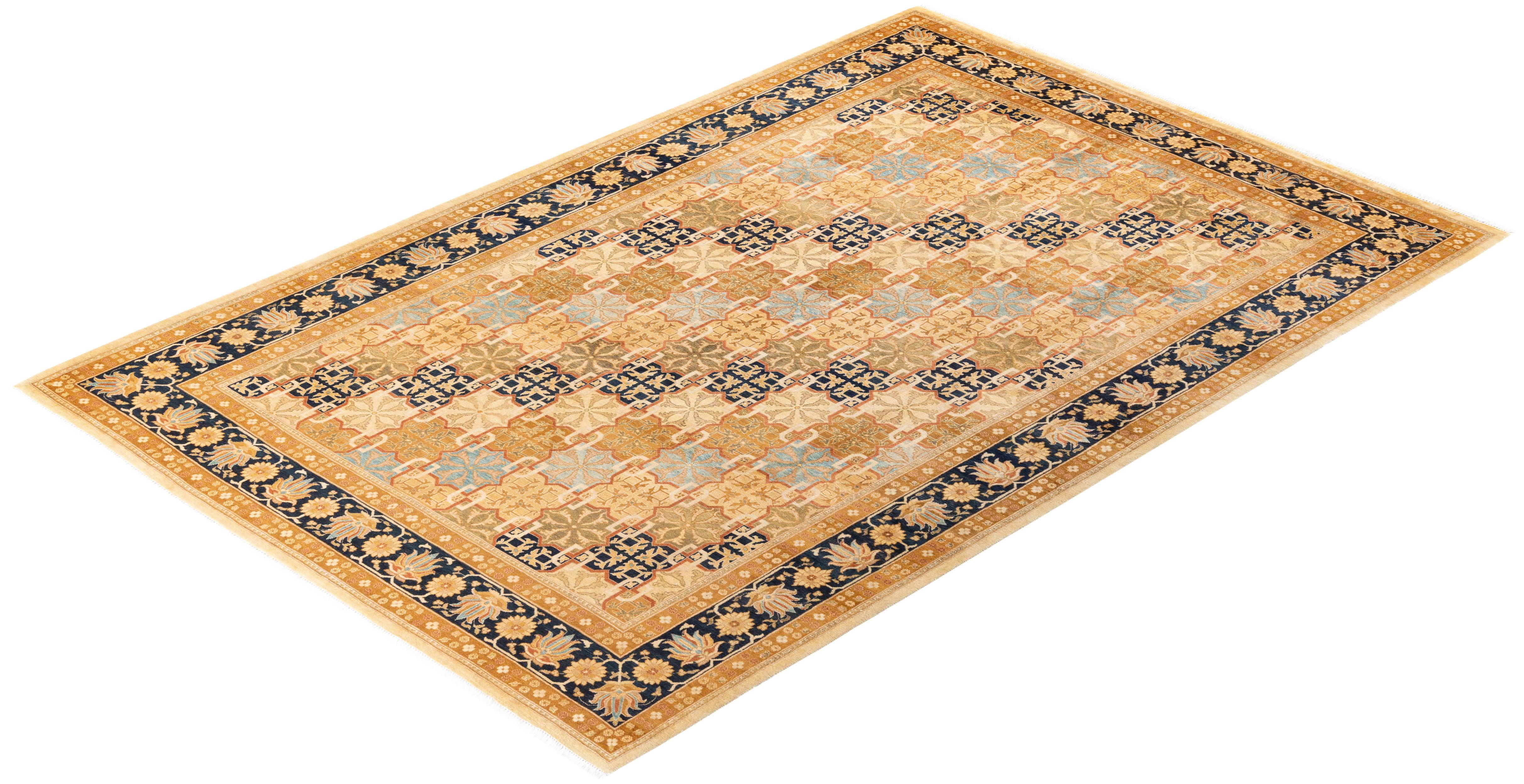 Traditional Hand Knotted Mogul Floral Ivory Area Rug 6' 0" x 9' 0"