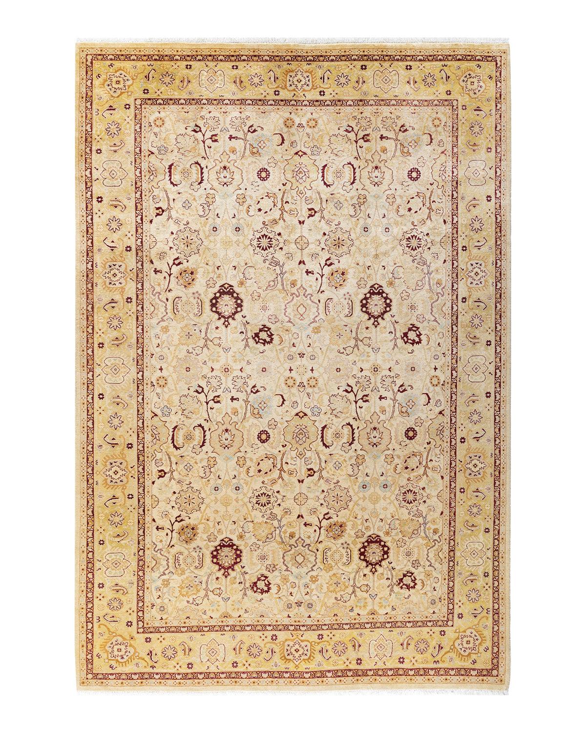 Traditional Hand Knotted Mogul Floral Ivory Area Rug 6' 2" x 9' 2"