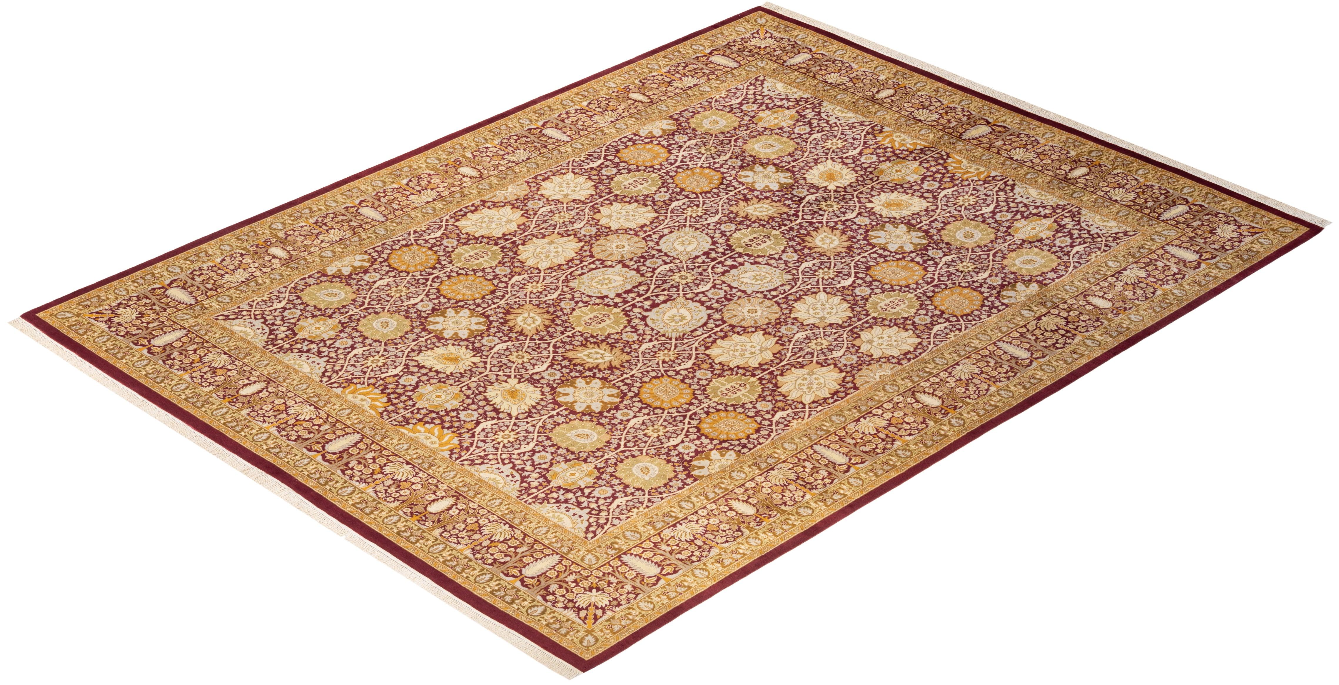 Traditional Hand Knotted Mogul Floral Purple Area Rug 7' 10" x 10' 5"