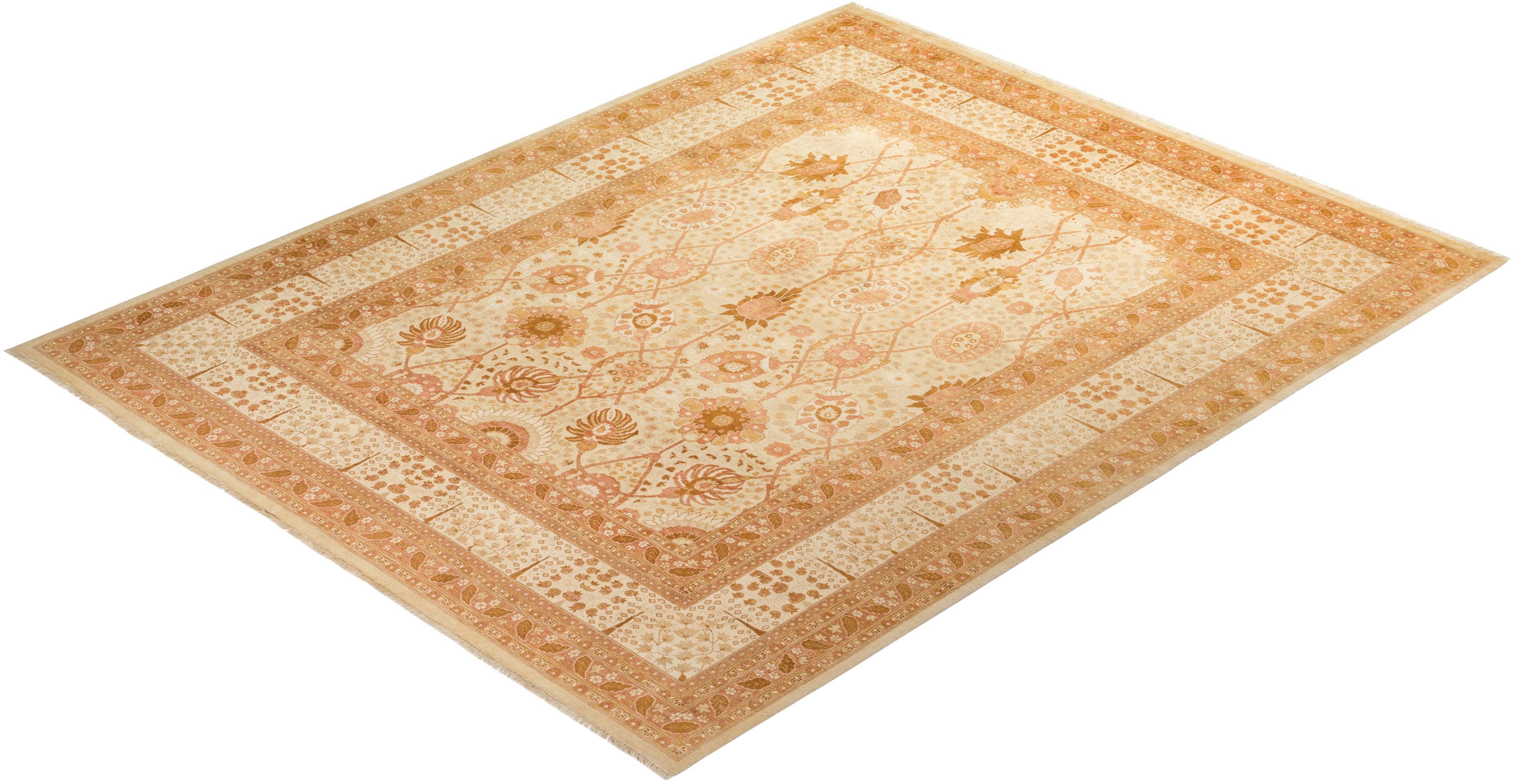 Traditional Hand Knotted Mogul Floral Ivory Area Rug 8' 3" x 10' 5"