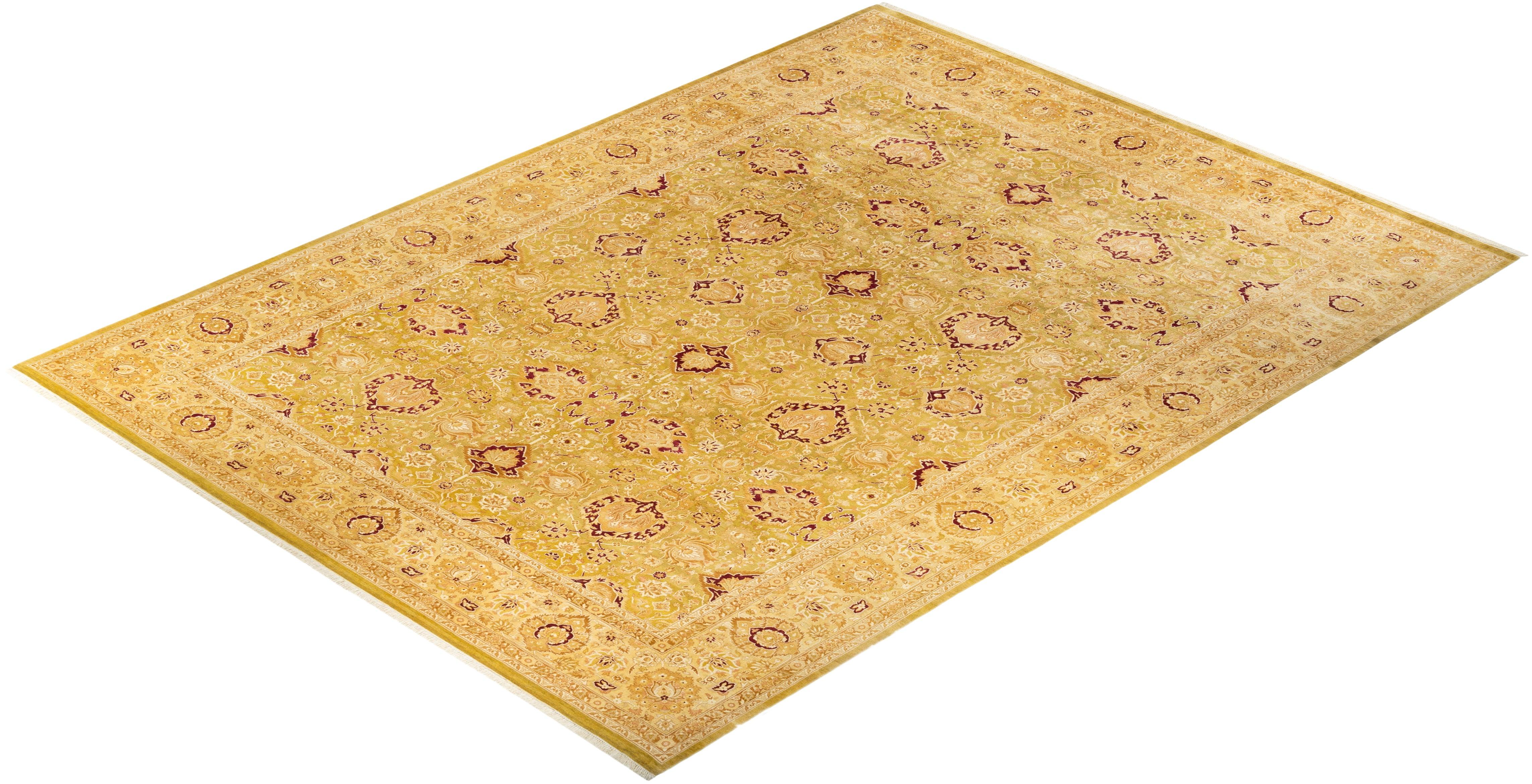 Traditional Hand Knotted Mogul Oriental Green Area Rug 10' 2" x 13' 10"