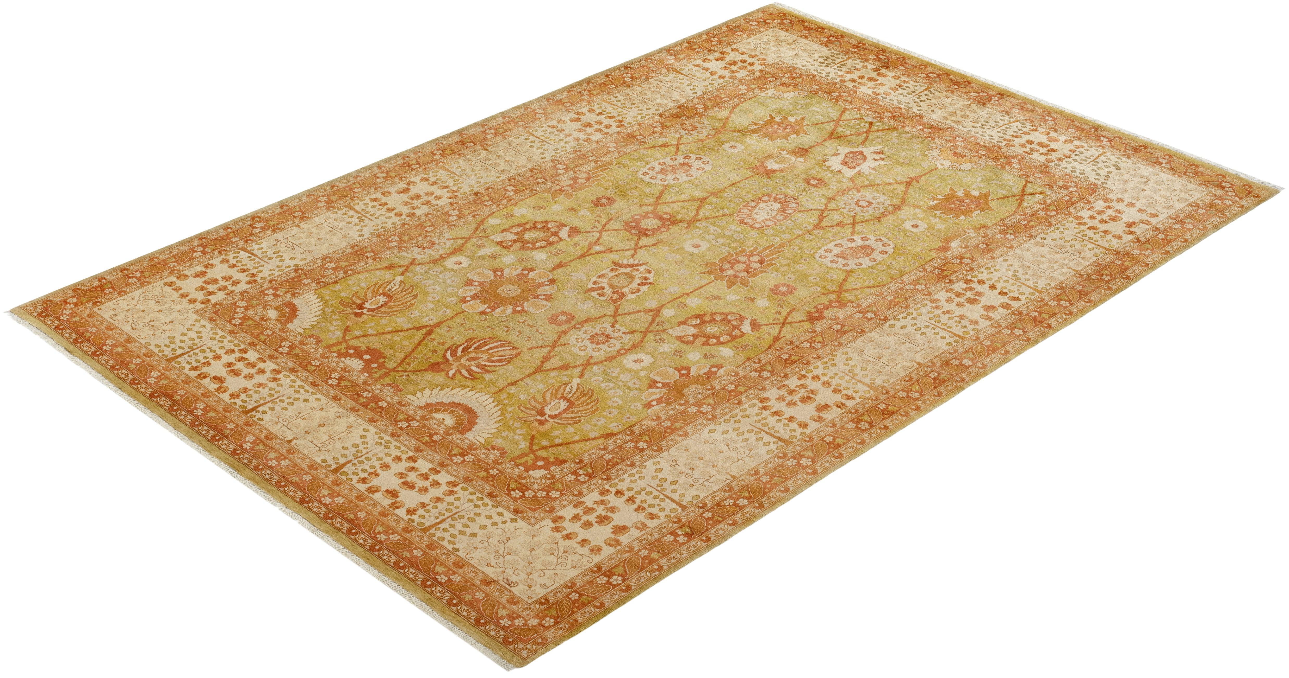 Traditional Hand Knotted Mogul Floral Green Area Rug 6' 3" x 9' 4"