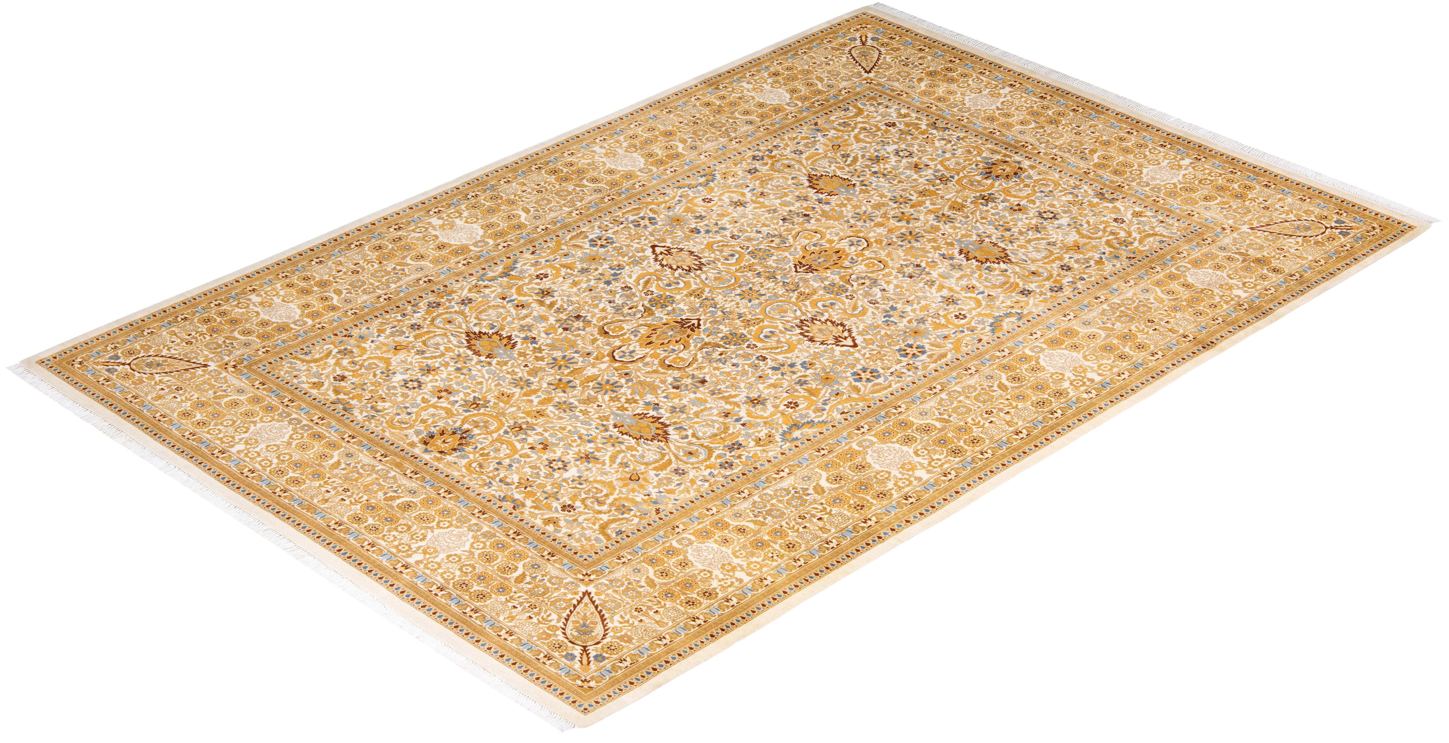 Traditional Hand Knotted Mogul Ivory Area Rug 6' 2" x 9' 2"