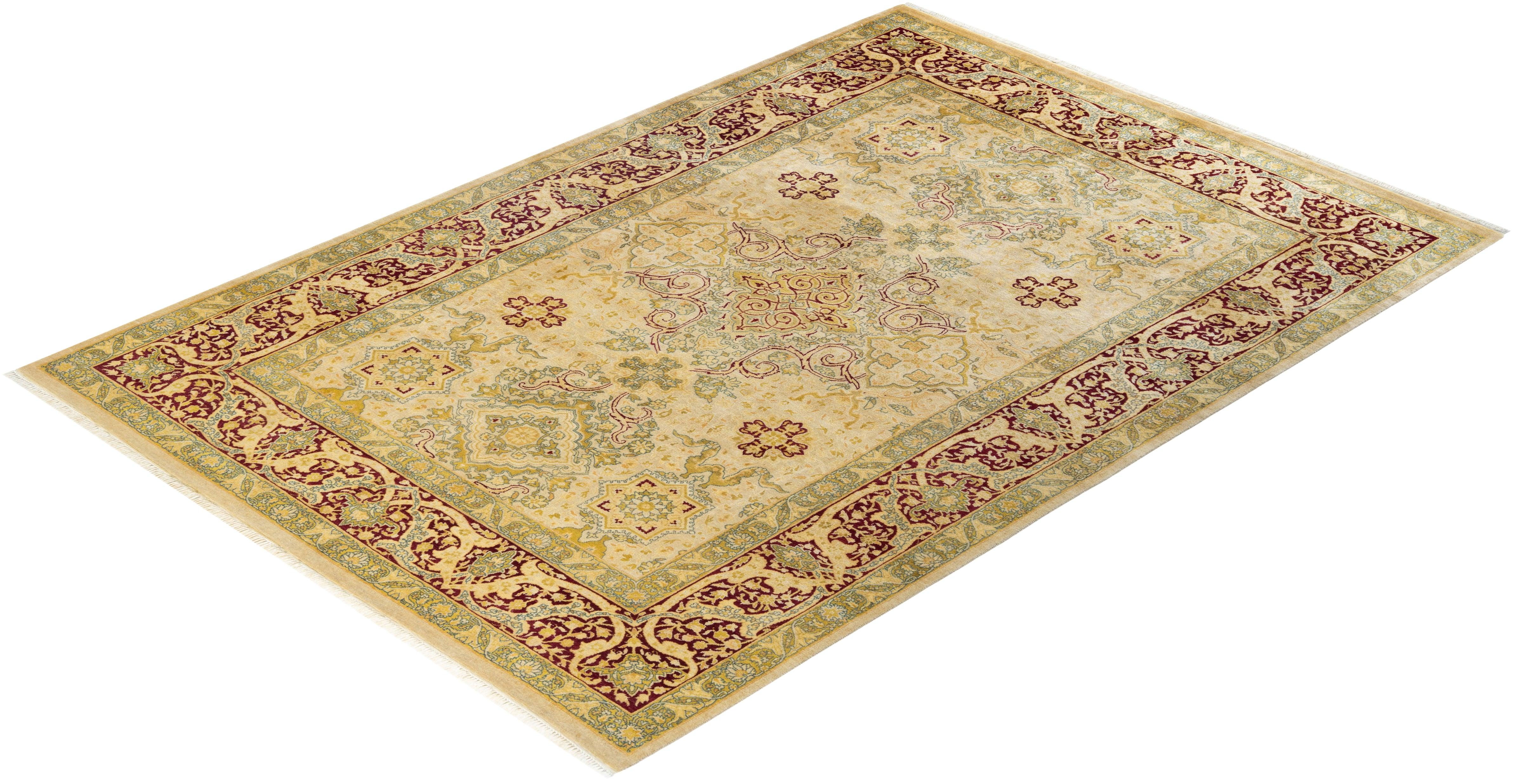Traditional Hand Knotted Mogul Oriental Ivory Area Rug 6' 3" x 8' 10"