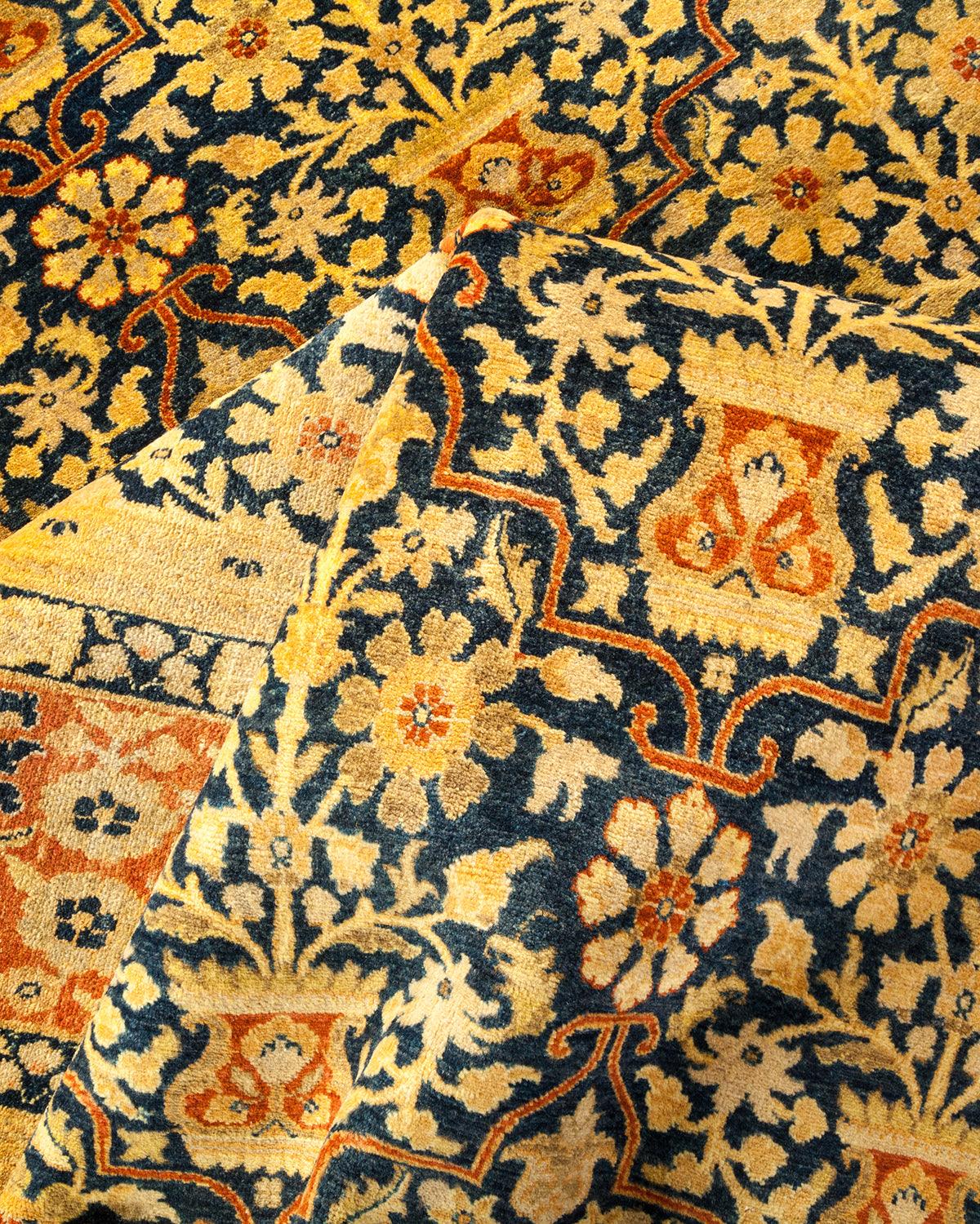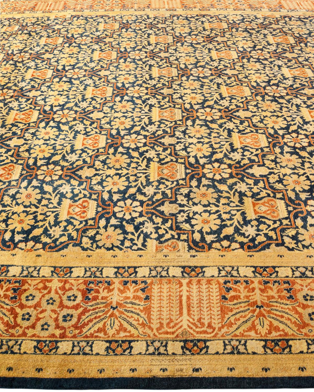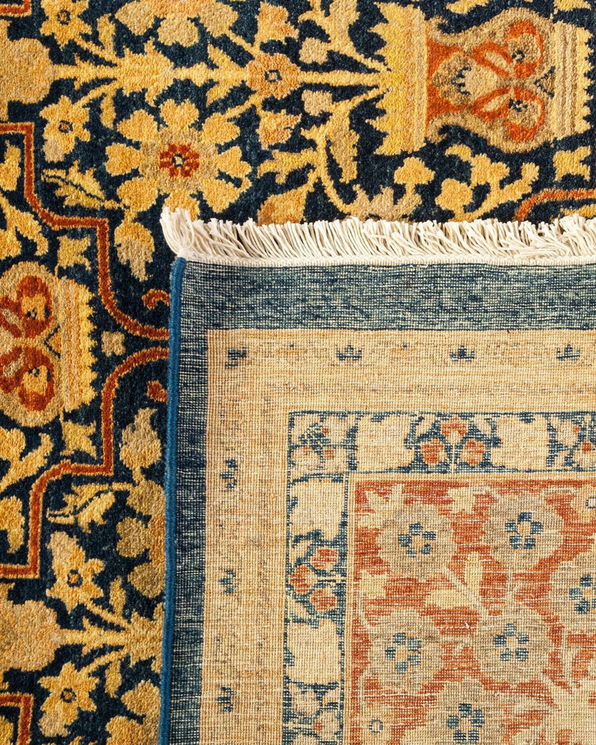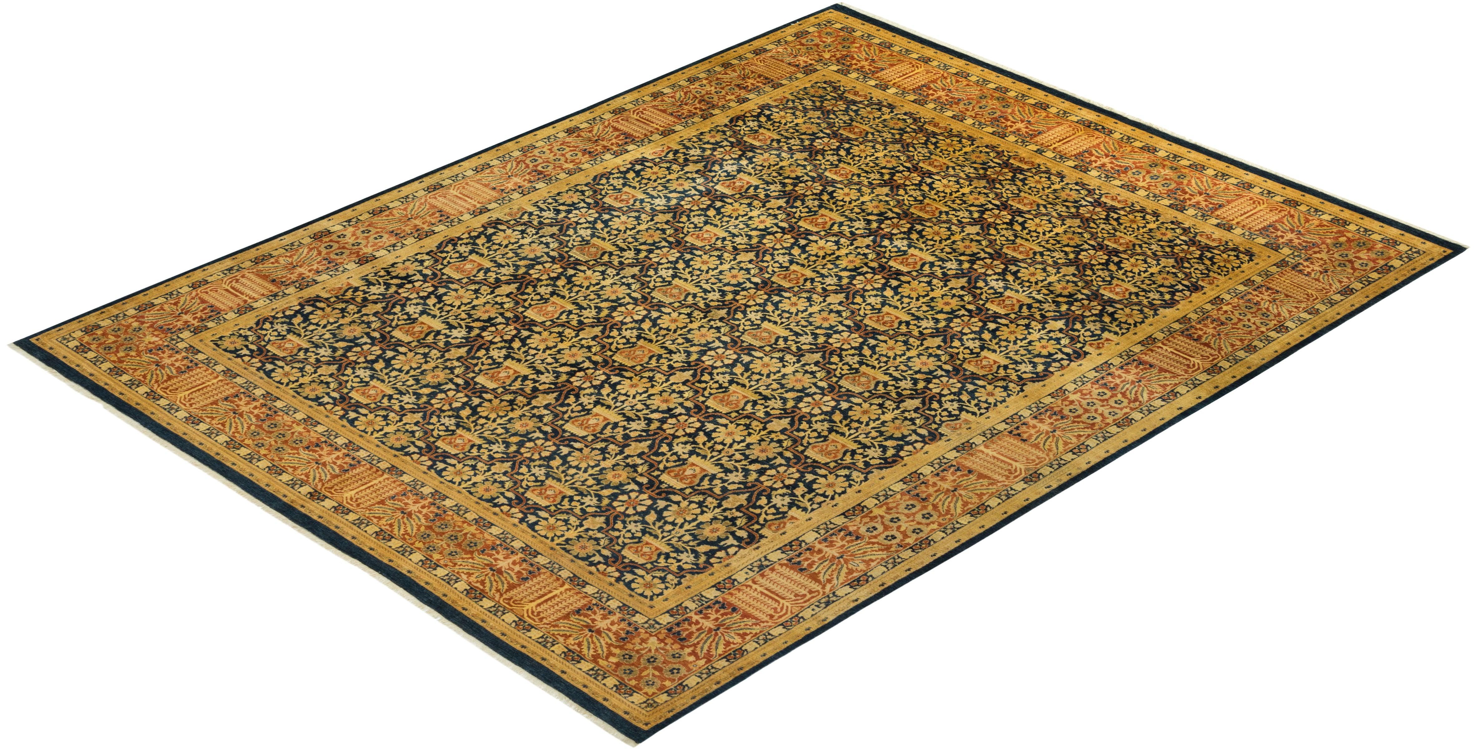 Traditional Hand Knotted Mogul Floral Blue Area Rug 8' 1" x 10' 5"