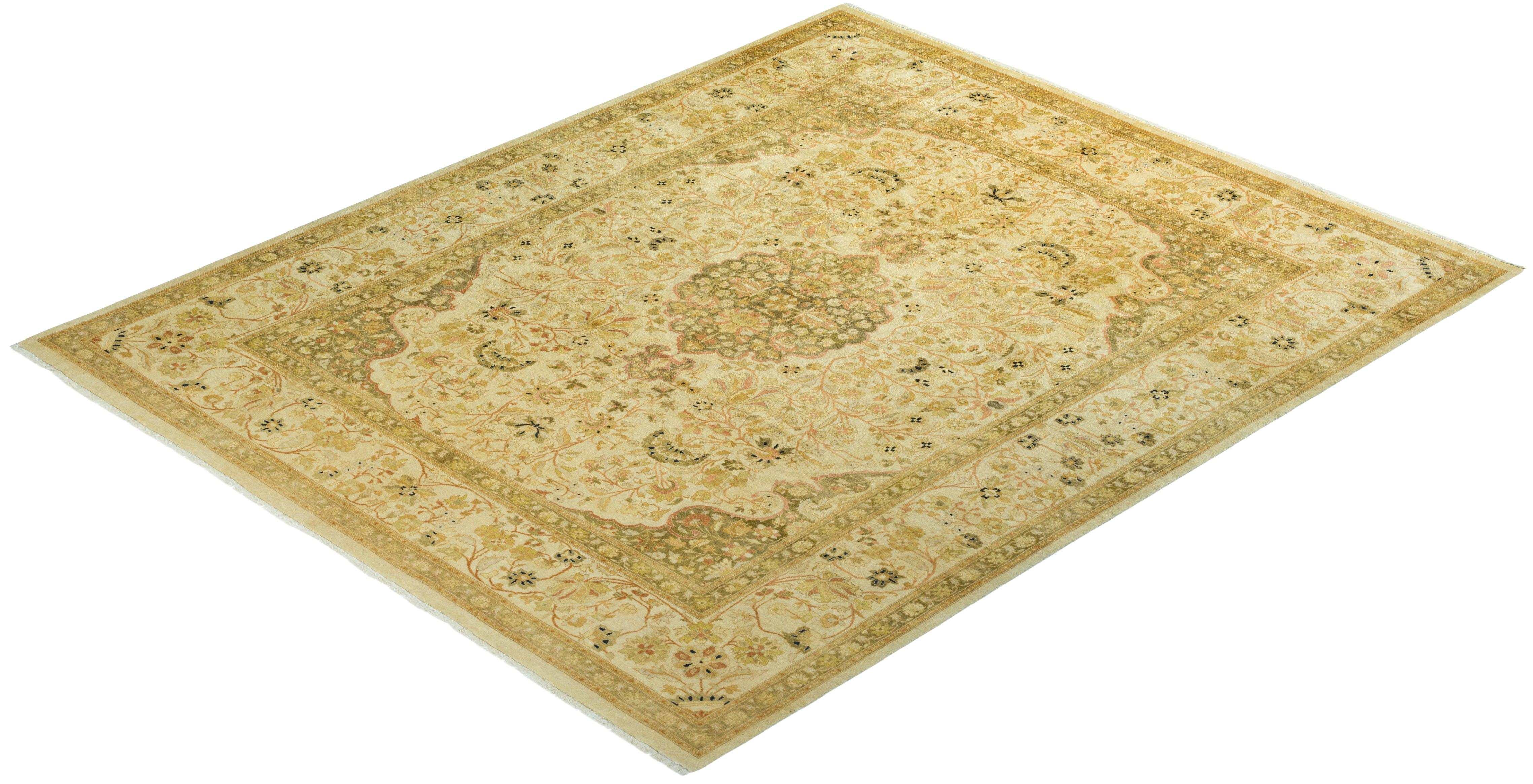 Traditional Hand Knotted Mogul Floral Ivory Area Rug 8' 1" x 9' 10"