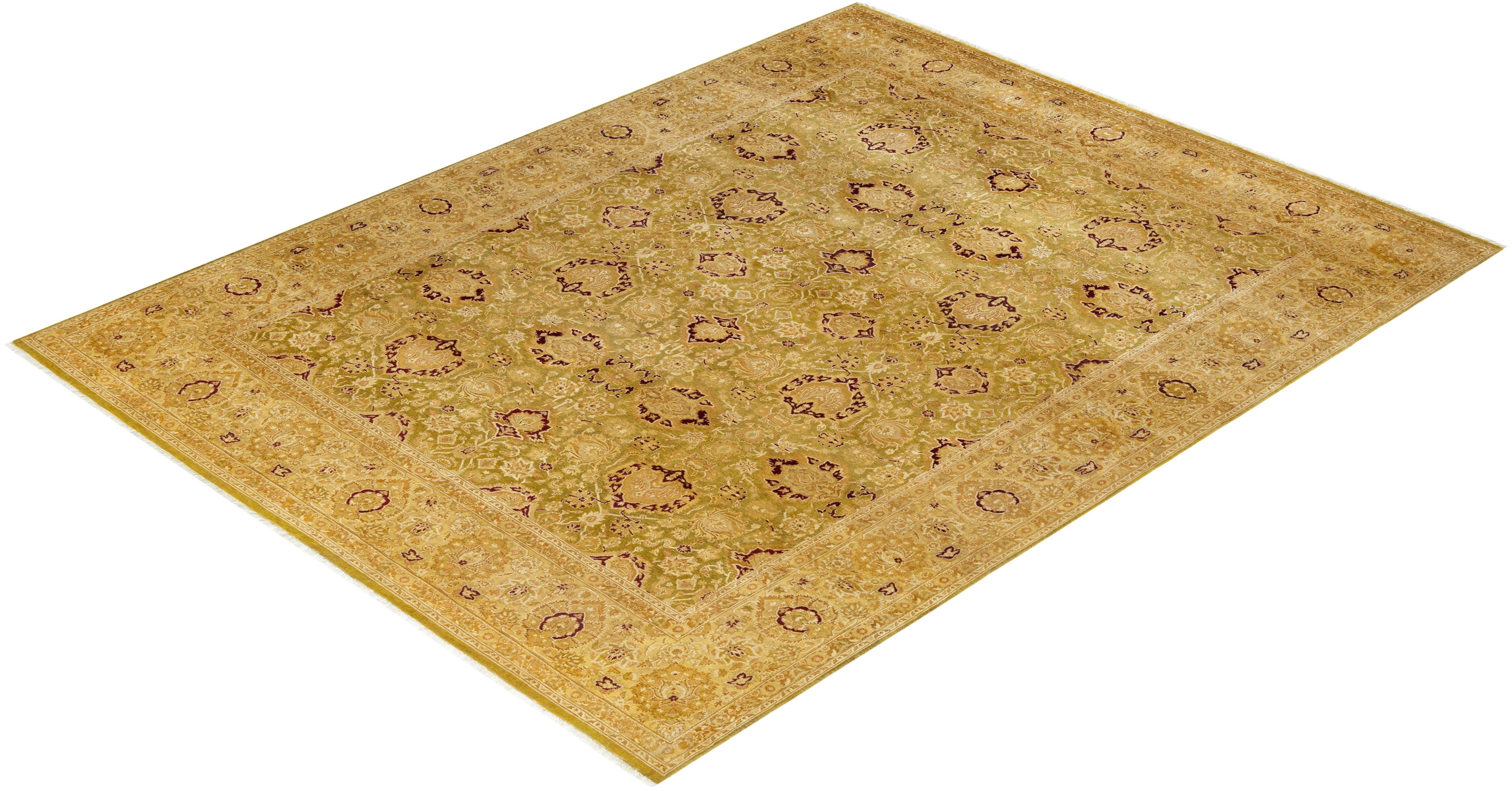 Traditional Hand Knotted Mogul Floral Green Area Rug 8' 1" x 10' 7"