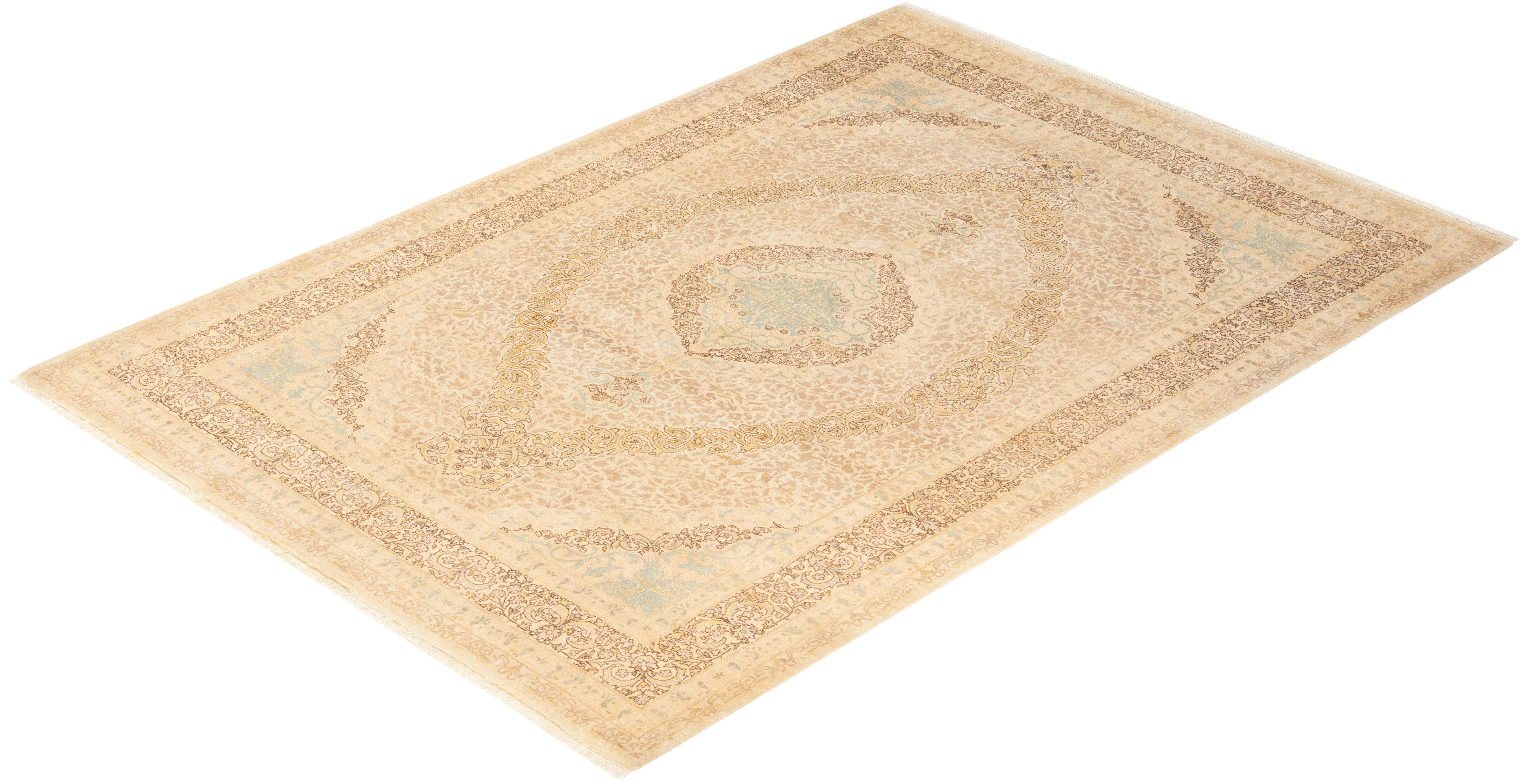 Traditional Hand Knotted Mogul Oriental Ivory Area Rug 6' 3" x 8' 10"