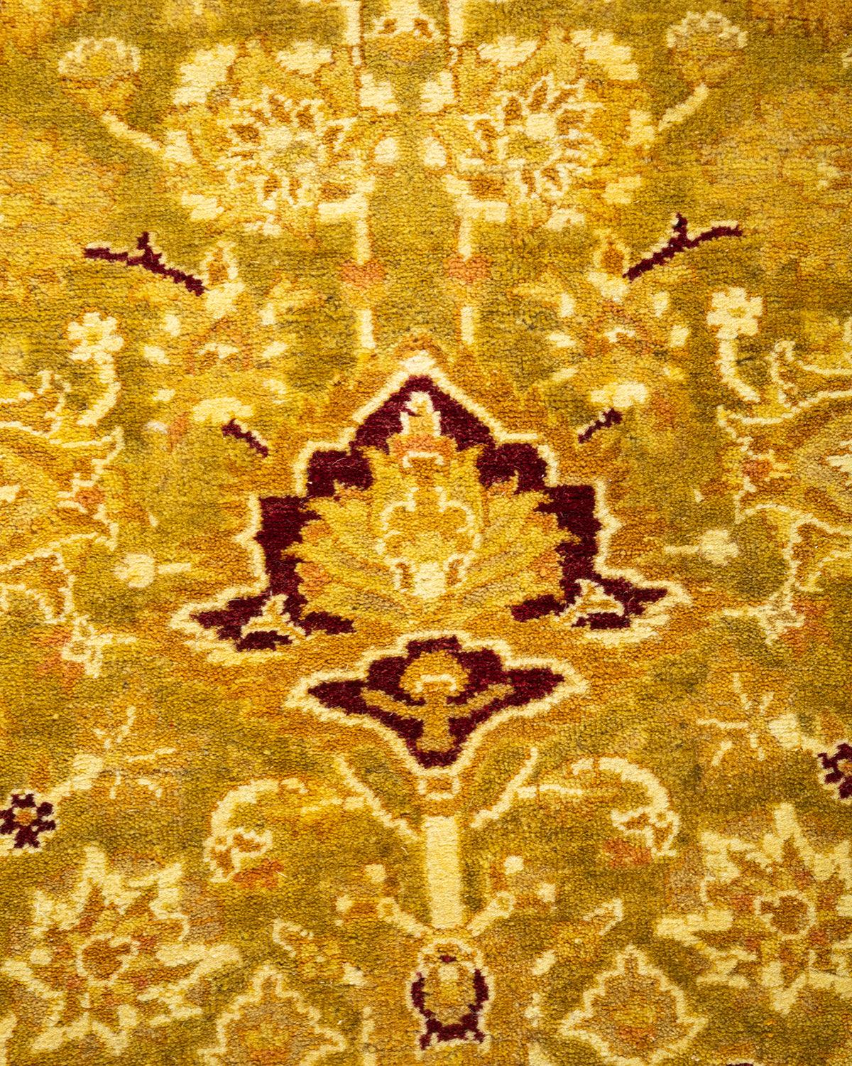 Traditional Hand Knotted Mogul Floral Green Area Rug 6' 3" x 9' 1"