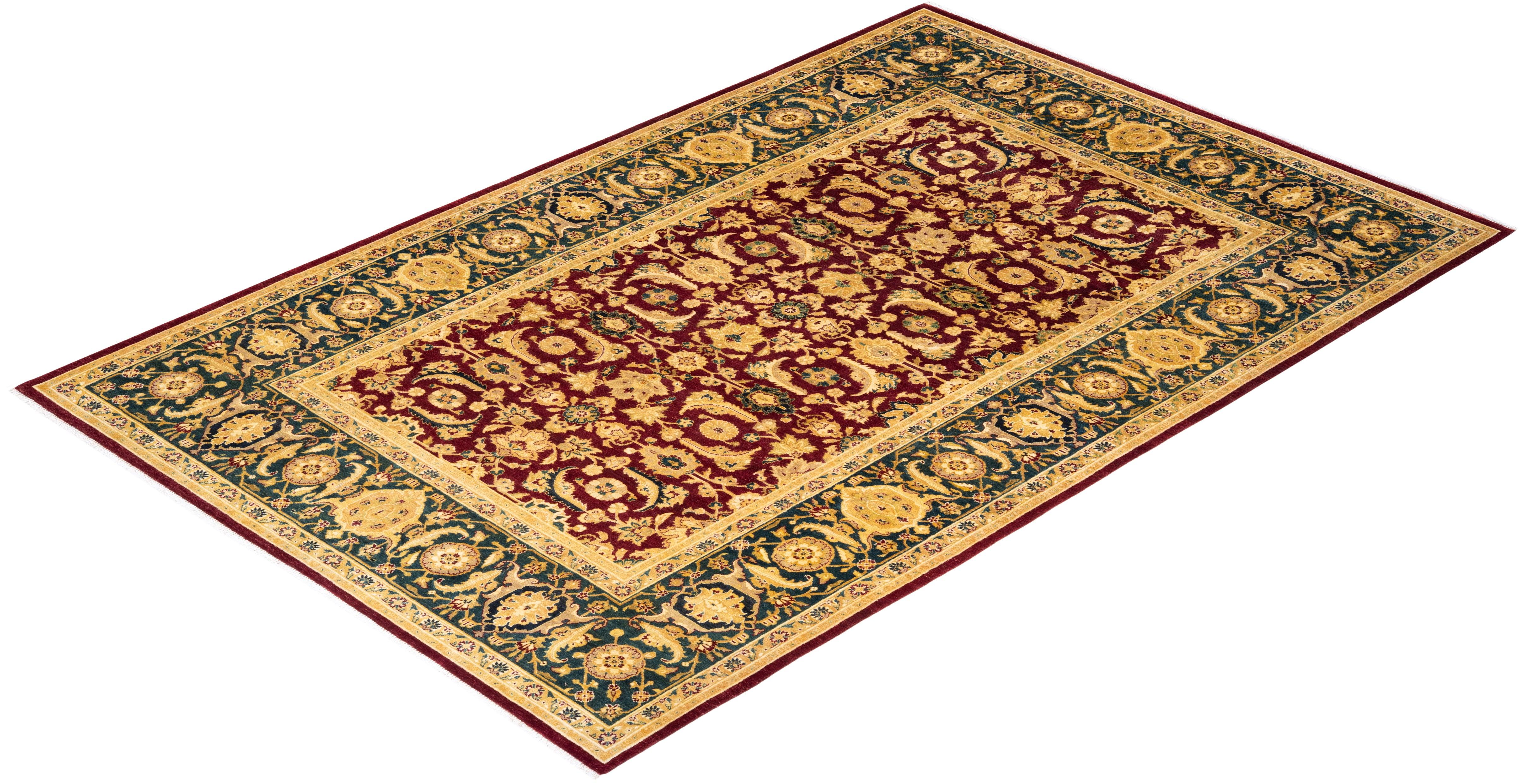Traditional Hand Knotted Mogul Oriental Red Area Rug 6' 1" x 9' 4"