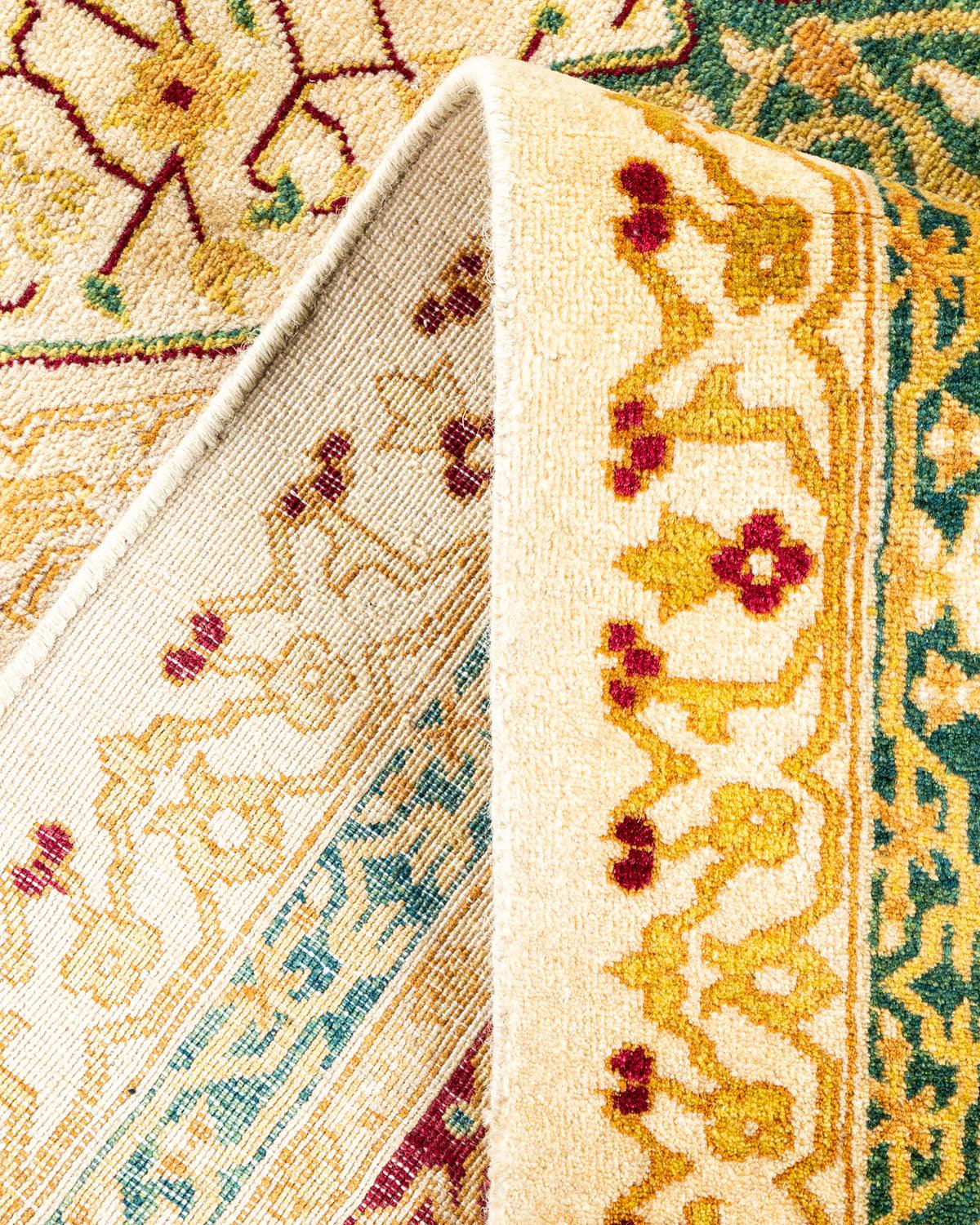 Traditional Hand Knotted Mogul Geometric Ivory Area Rug 6' 2" x 9' 3"