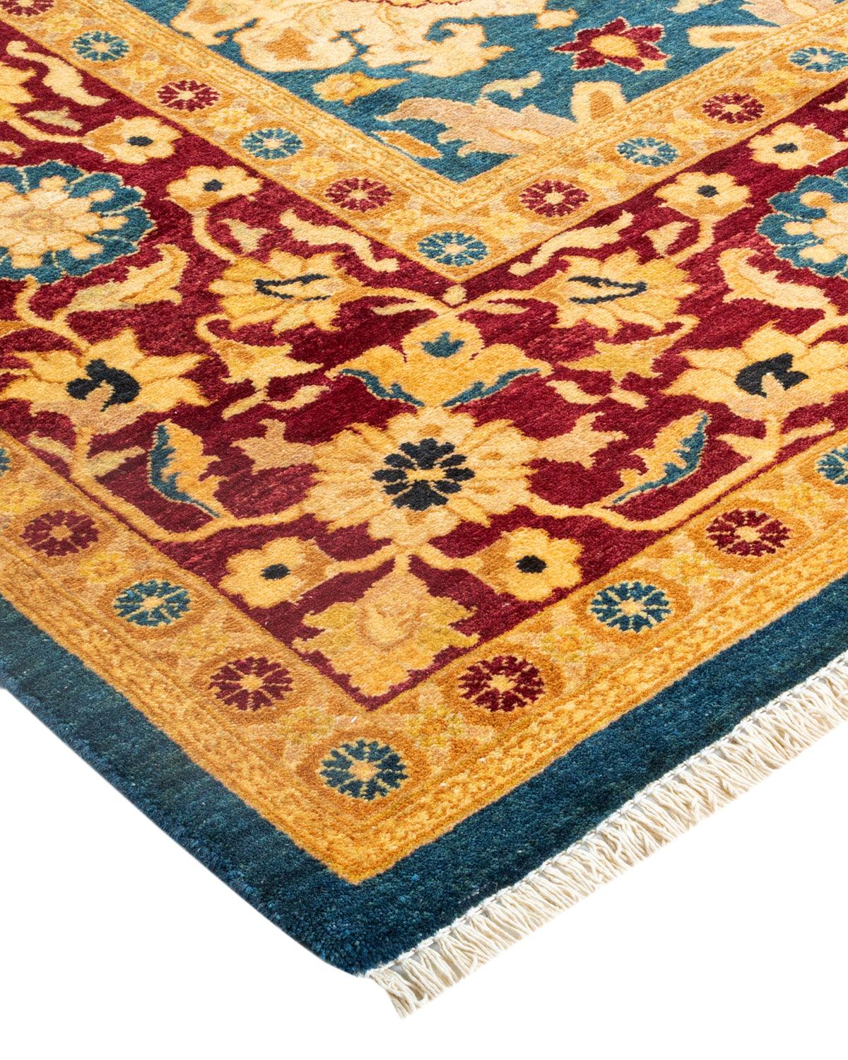 Traditional Hand Knotted Mogul Oriental Blue Area Rug 6' 1" x 9' 1"