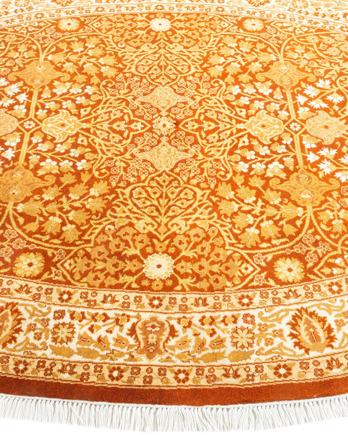 Traditional Hand Knotted Mogul Oriental Orange Round Area Rug 4' 1" x 6' 1"