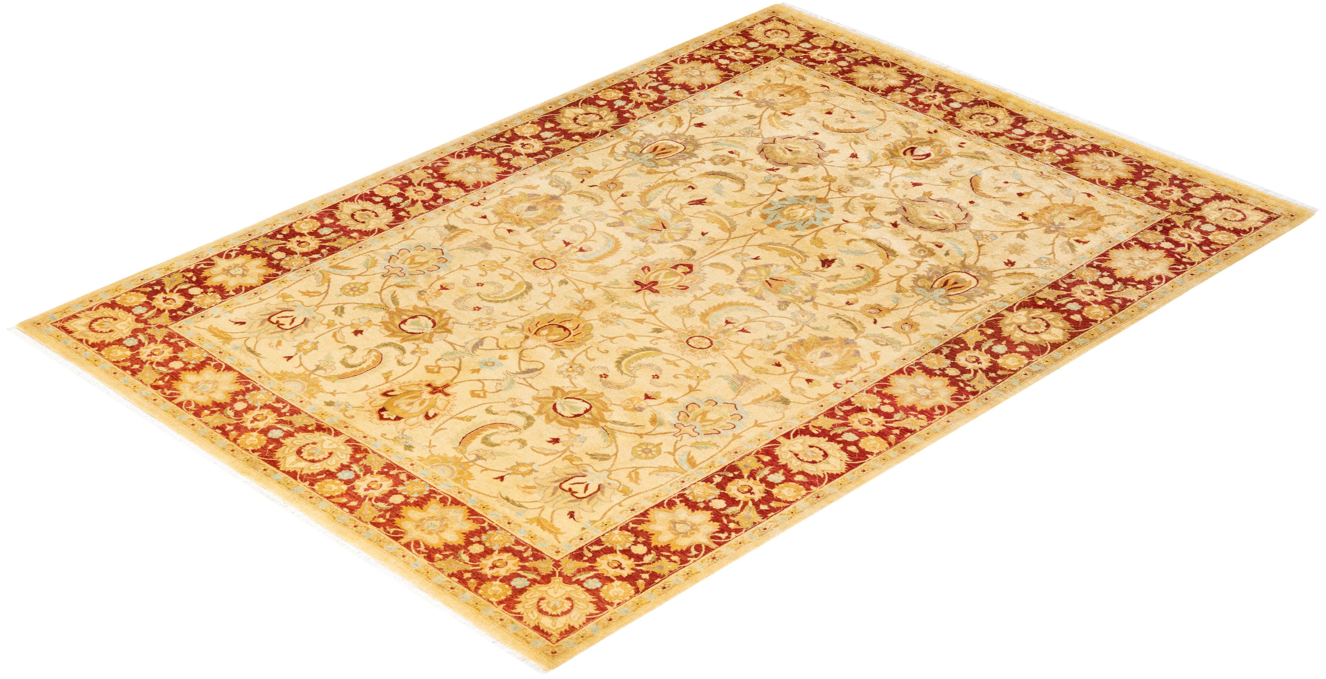 Traditional Hand Knotted Mogul Oriental Ivory Area Rug 6' 2" x 8' 10"