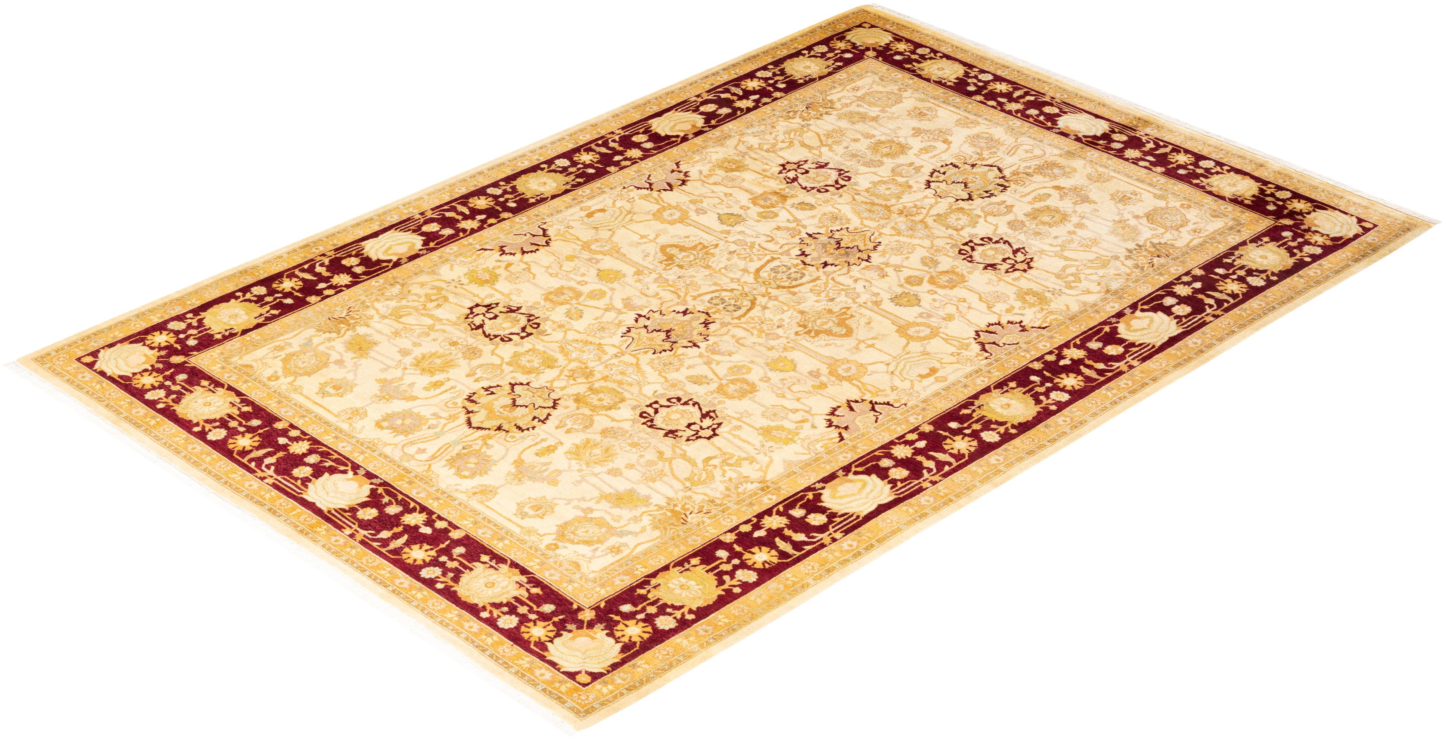 Traditional Hand Knotted Mogul Oriental Ivory Area Rug 6' 2" x 9' 1"