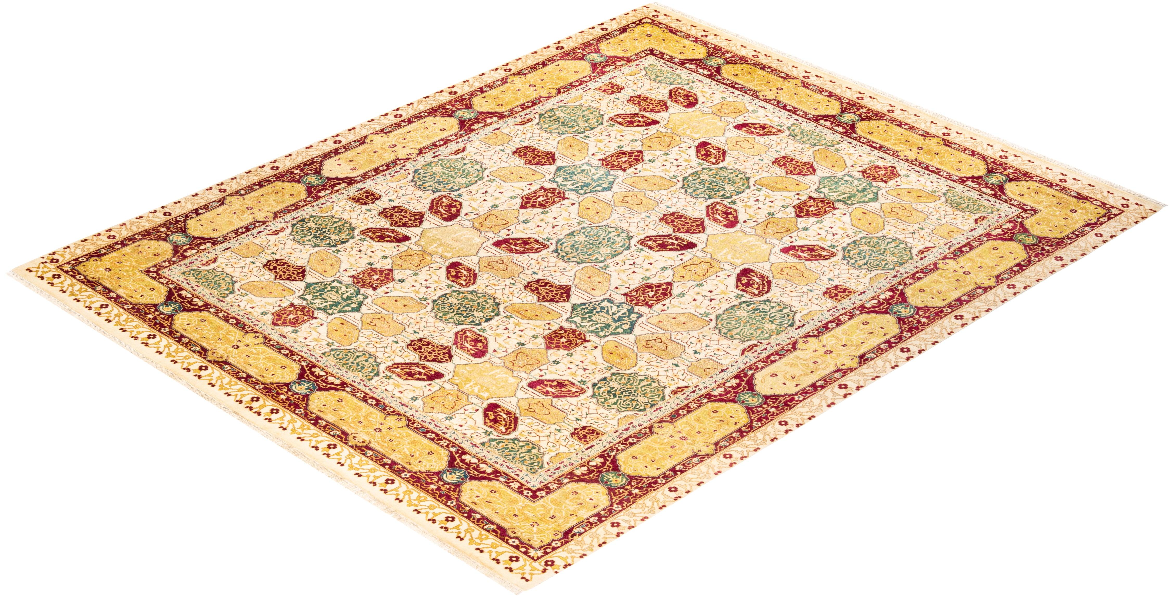Traditional Hand Knotted Mogul Ivory Area Rug 8' 3" x 10' 3"