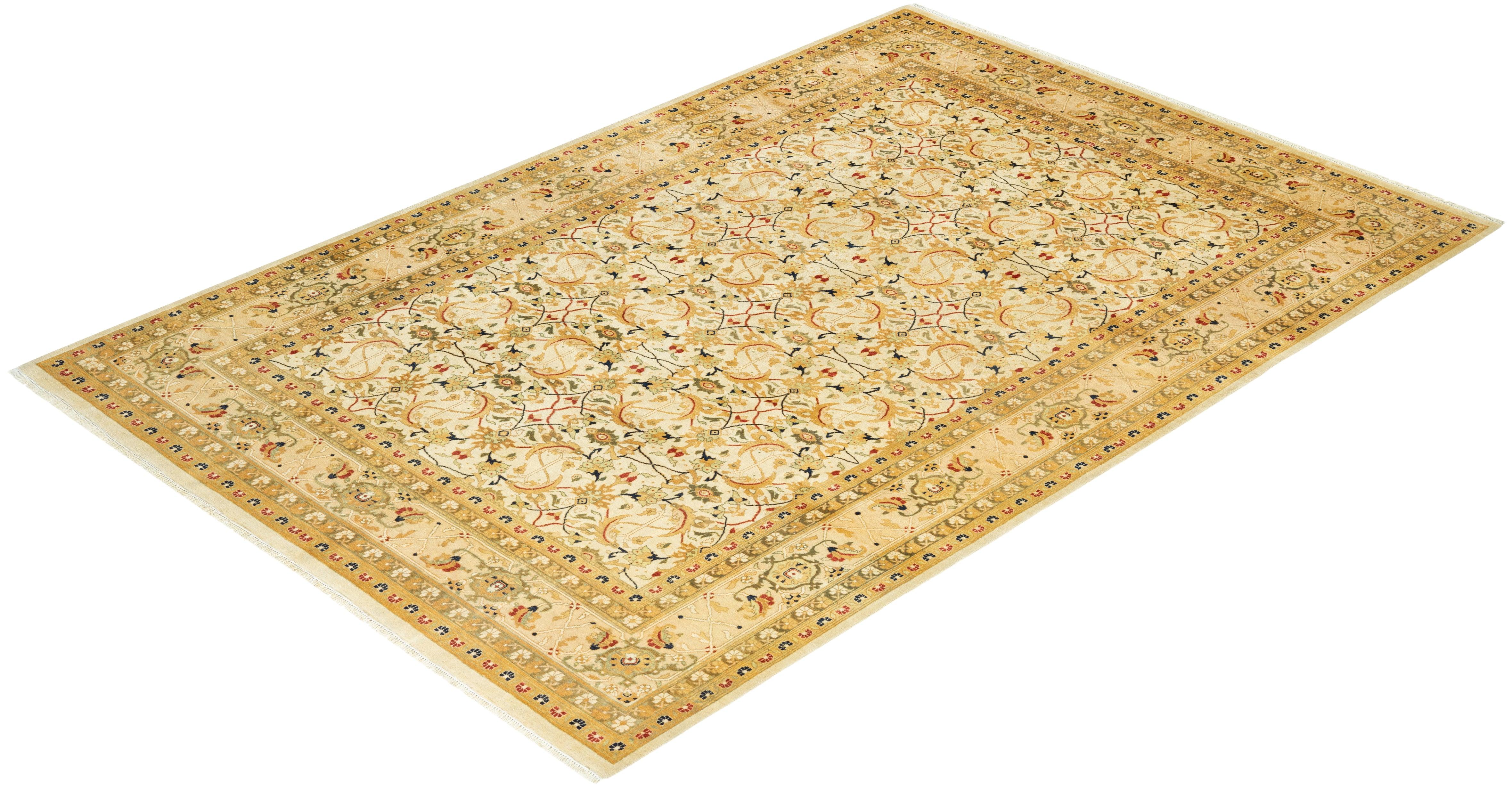 Traditional Hand Knotted Mogul Floral Ivory Area Rug 6' 2" x 9' 1"