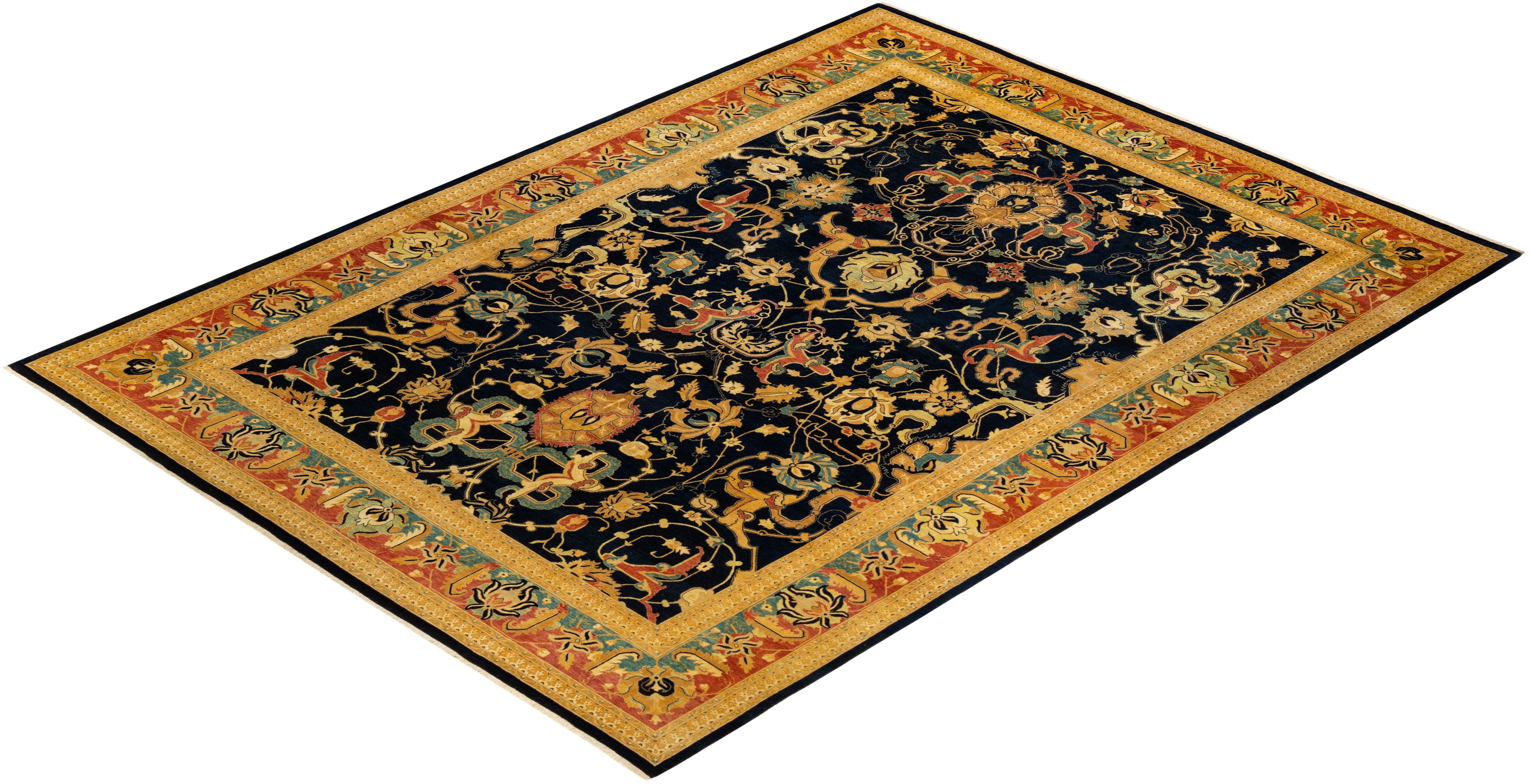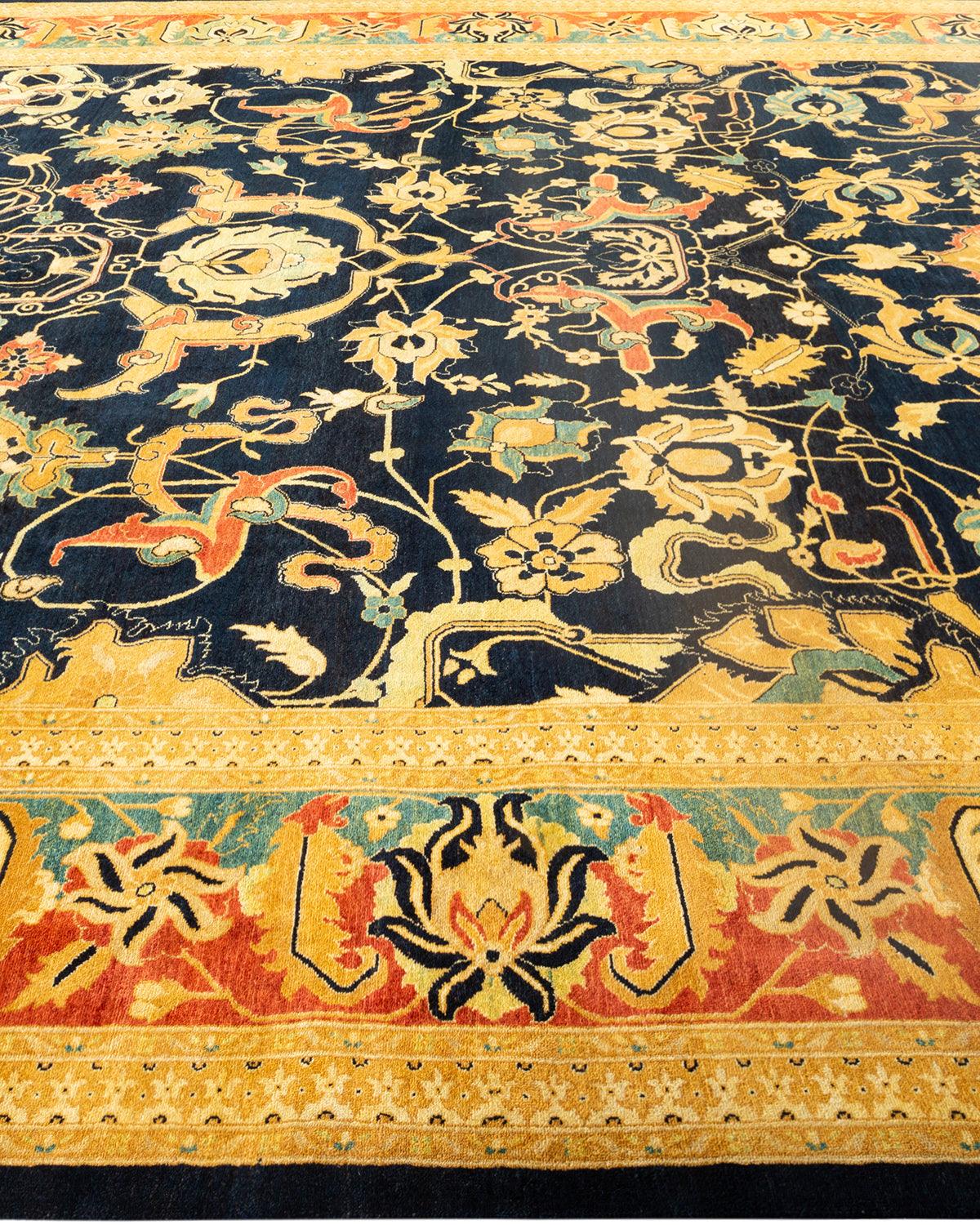 Traditional Hand Knotted Mogul Floral Blue Area Rug 10' 1" x 13' 10"