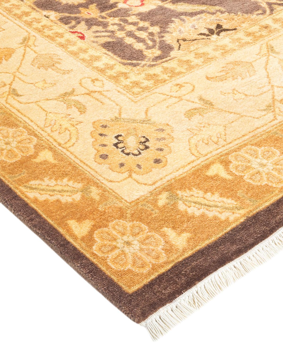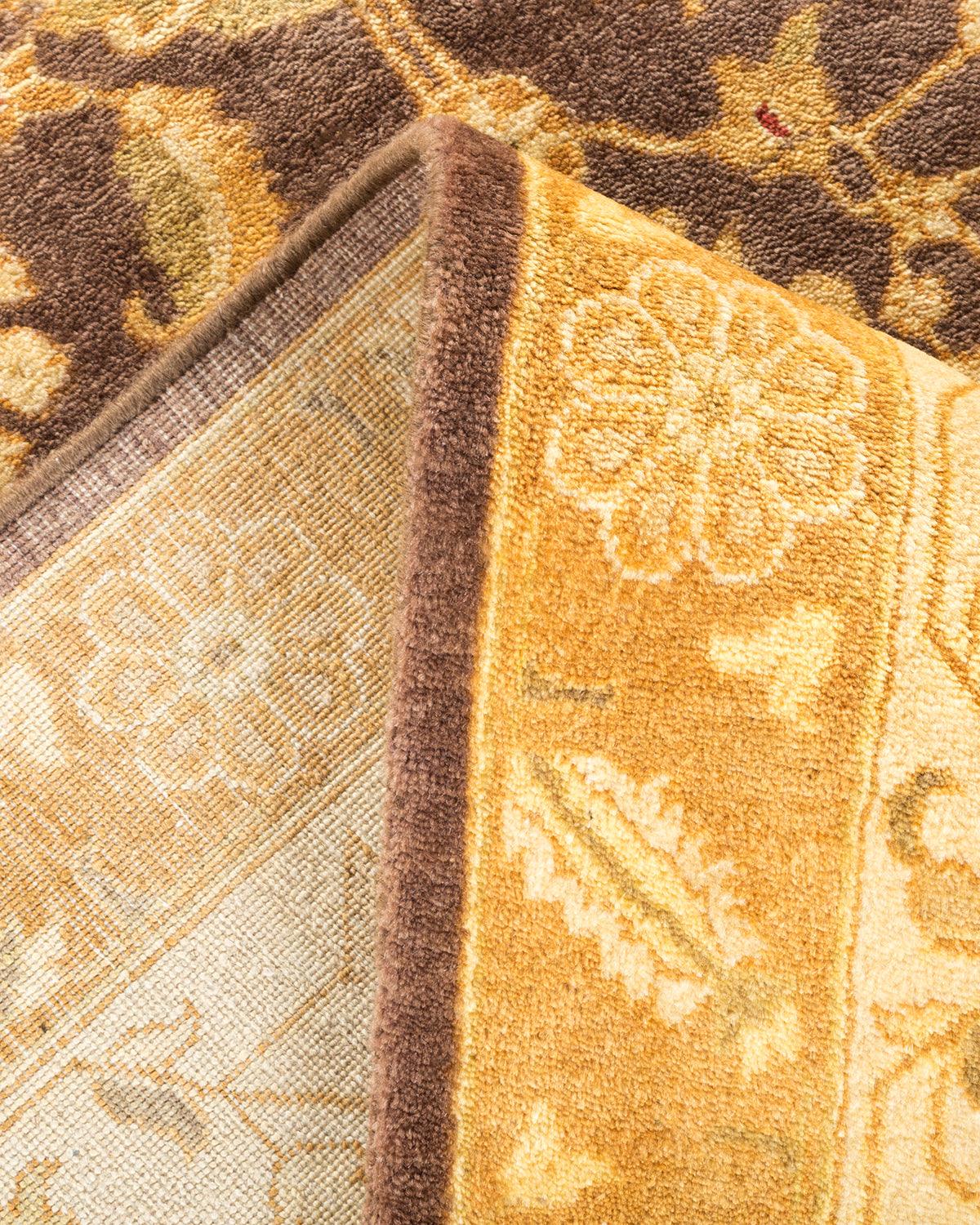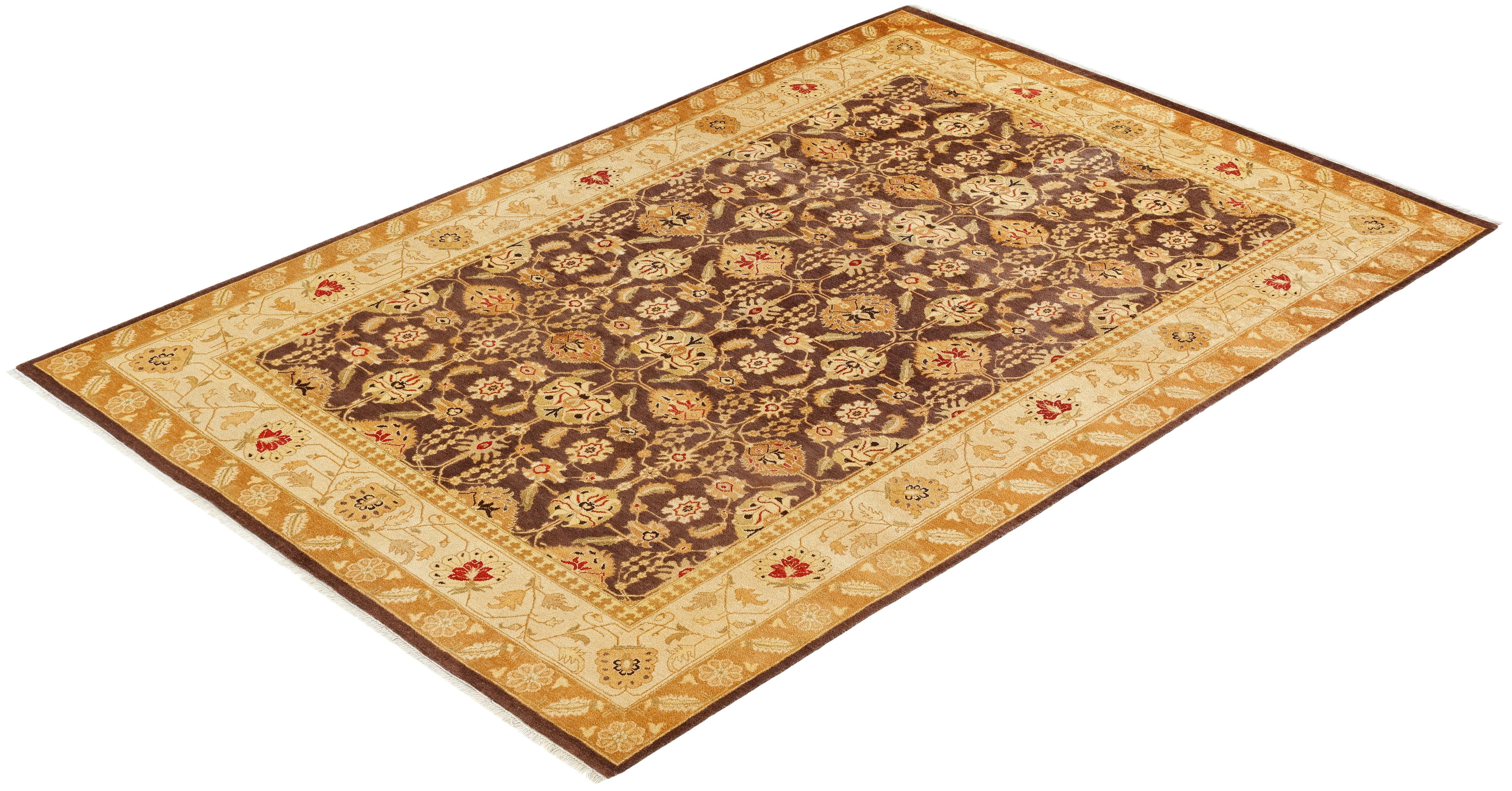 Traditional Hand Knotted Mogul Floral Brown Area Rug 6' 1" x 9' 1"