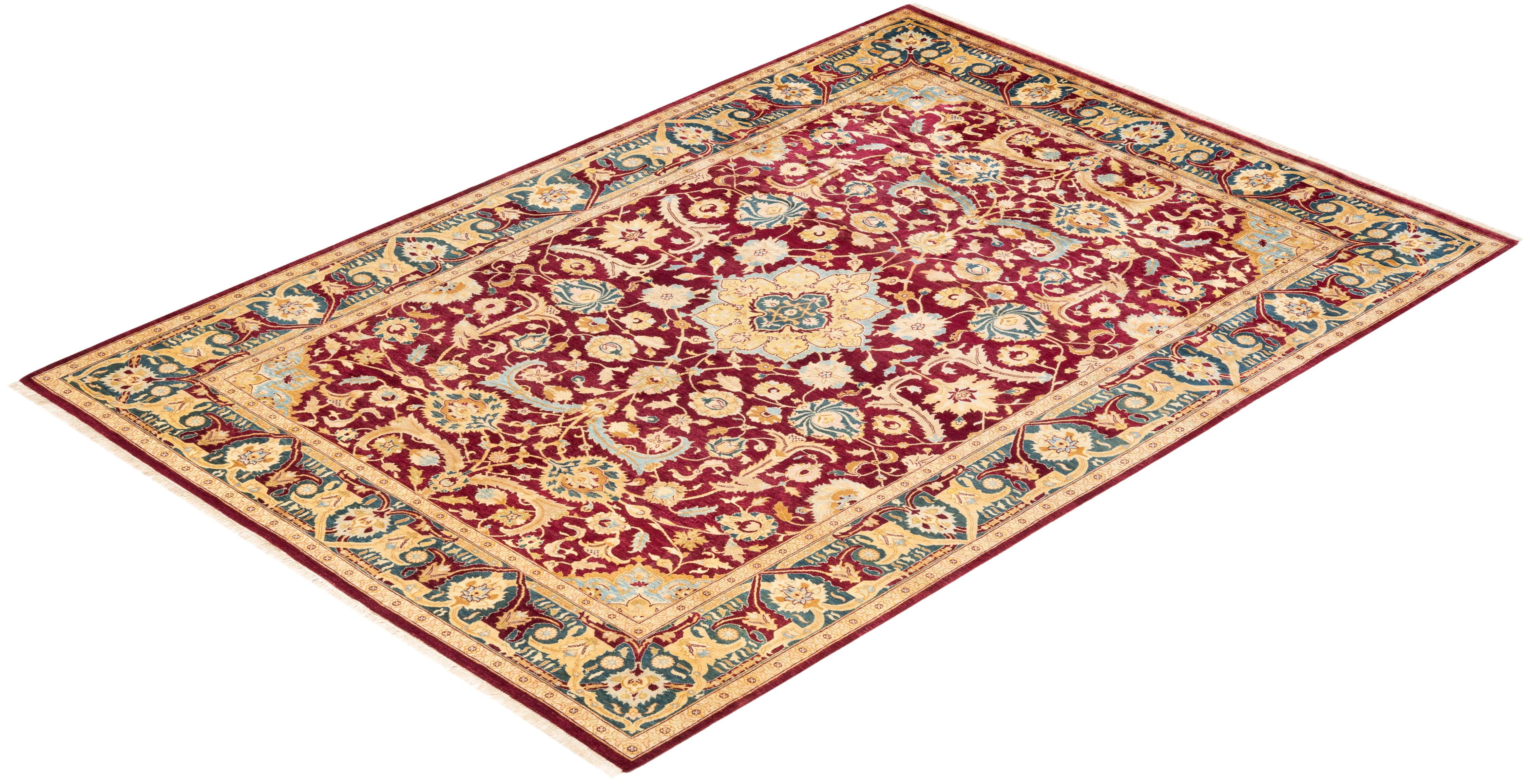 Traditional Hand Knotted Mogul Oriental Red Area Rug 6' 2" x 8' 10"